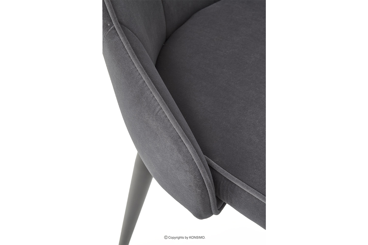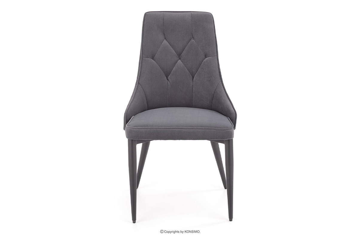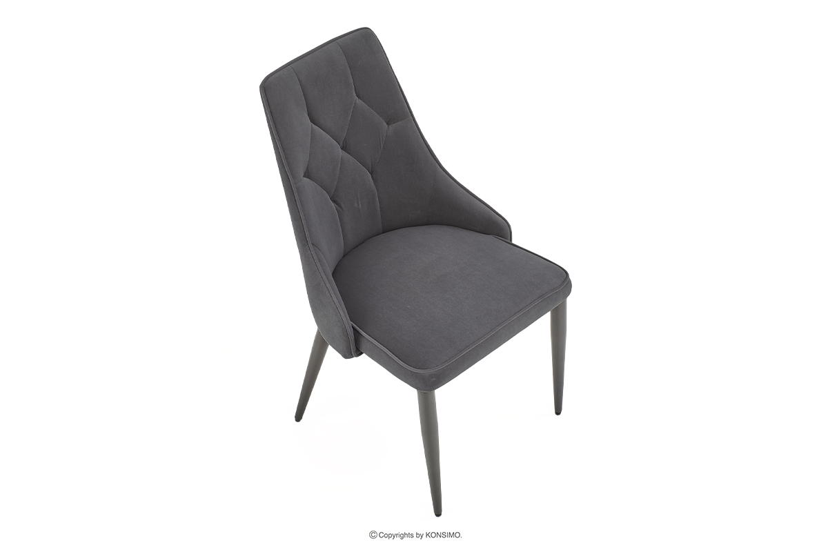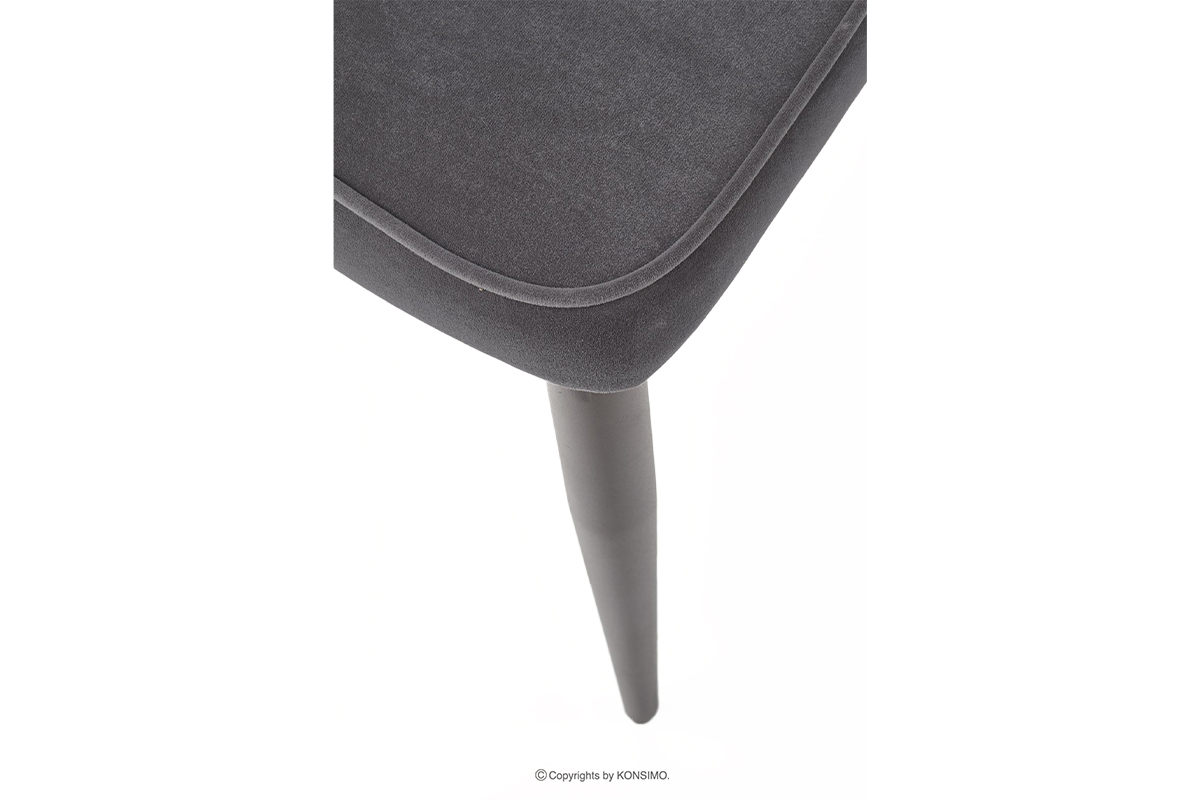 Ein eleganter Stuhl für Esszimmer und Wohnzimmer mit raffiniertem Design, der jedes Interieur verschönert. Die stabile Konstruktion basiert auf schlanken Beinen aus pulverbeschichtetem Stahl, der Langlebigkeit mit modernem Design verbindet. Der Bezug aus Velours ist angenehm anzufassen und verleiht dem Möbelstück einen exklusiven Charakter. Die sorgfältige Steppung verleiht dem Stuhl ein elegantes Aussehen und zeugt von Liebe zum Detail.
