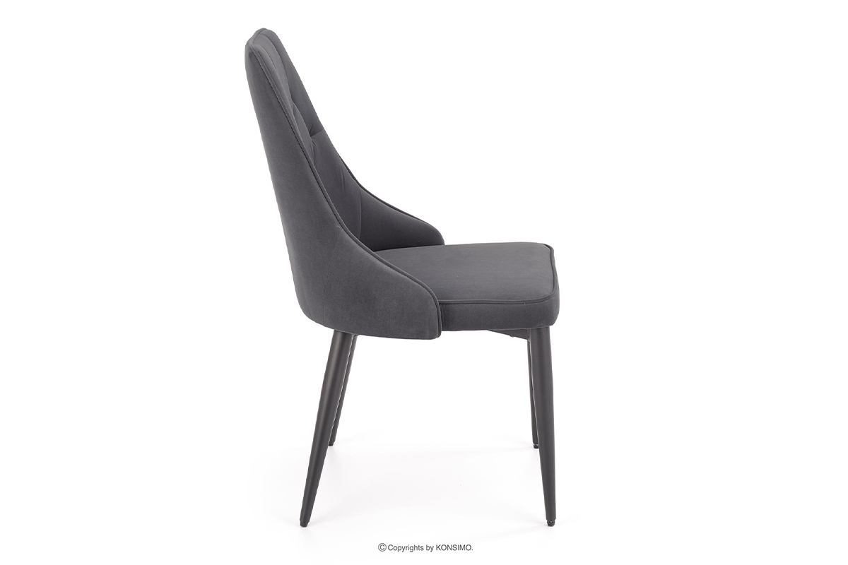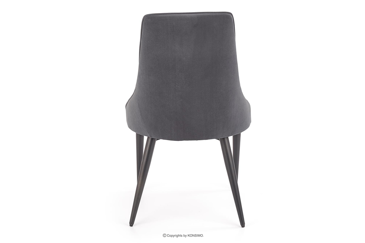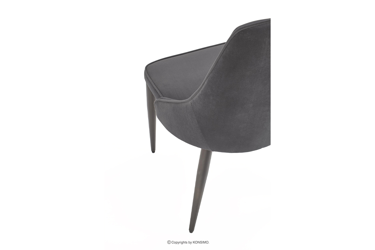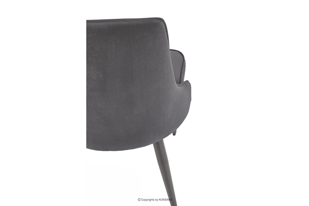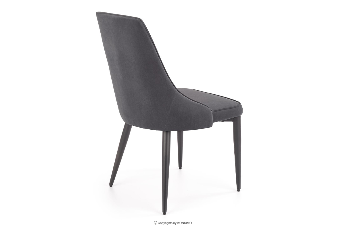 Ein eleganter Stuhl für Esszimmer und Wohnzimmer mit raffiniertem Design, der jedes Interieur verschönert. Die stabile Konstruktion basiert auf schlanken Beinen aus pulverbeschichtetem Stahl, der Langlebigkeit mit modernem Design verbindet. Der Bezug aus Velours ist angenehm anzufassen und verleiht dem Möbelstück einen exklusiven Charakter. Die sorgfältige Steppung verleiht dem Stuhl ein elegantes Aussehen und zeugt von Liebe zum Detail.