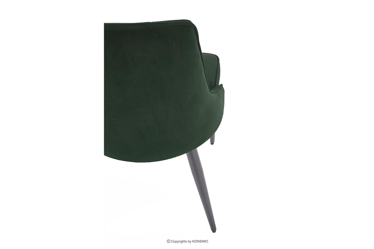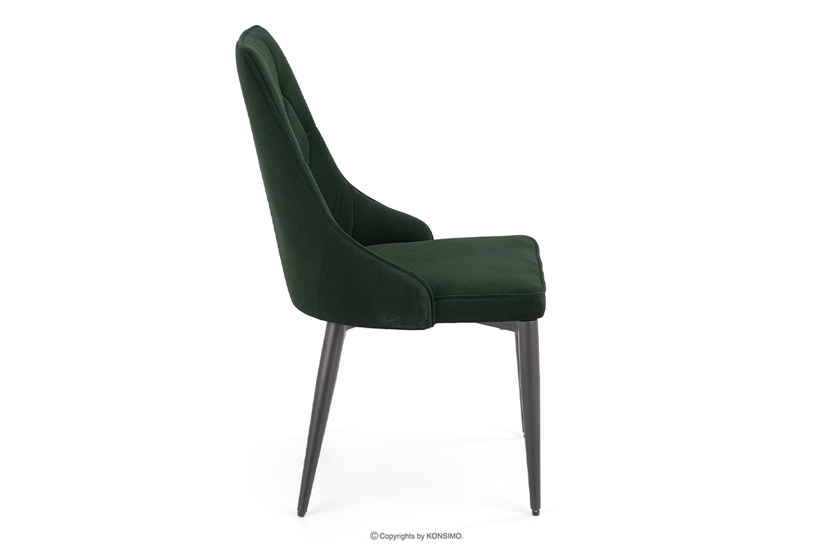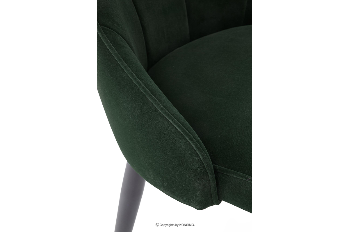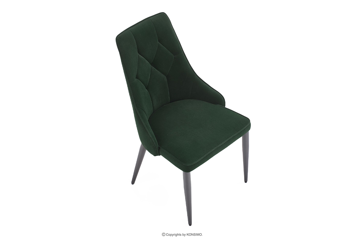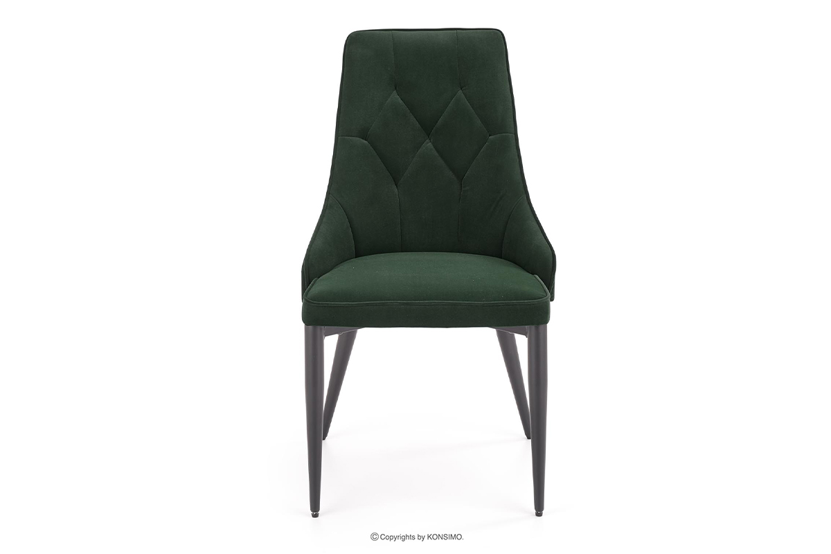 Ein eleganter Stuhl für das Esszimmer und den Wohnbereich mit raffiniertem Design, der jedes Interieur verschönert. Die stabile Konstruktion basiert auf schlanken Beinen aus pulverbeschichtetem Stahl, die Langlebigkeit mit modernem Design verbinden. Der Bezug aus Velours ist angenehm anzufassen und verleiht dem Möbelstück einen exklusiven Charakter. Die sorgfältige Steppung verleiht dem Stuhl ein elegantes Aussehen und zeugt von Liebe zum Detail.
