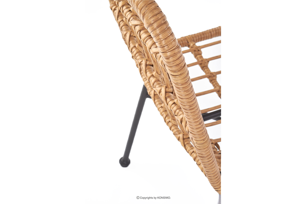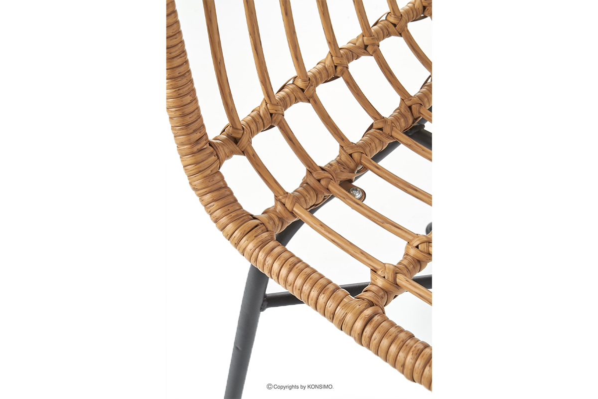 Ein stilvoller Rattanstuhl, der natürliche Ästhetik mit Langlebigkeit und Funktionalität verbindet. Er besticht durch sein authentisches Aussehen und die einzigartige Struktur, die für natürliche Materialien charakteristisch ist. Die leichte und dennoch robuste Konstruktion ermöglicht ein einfaches Transportieren, wodurch der Stuhl sowohl für die Terrasse als auch für zu Hause ideal ist.