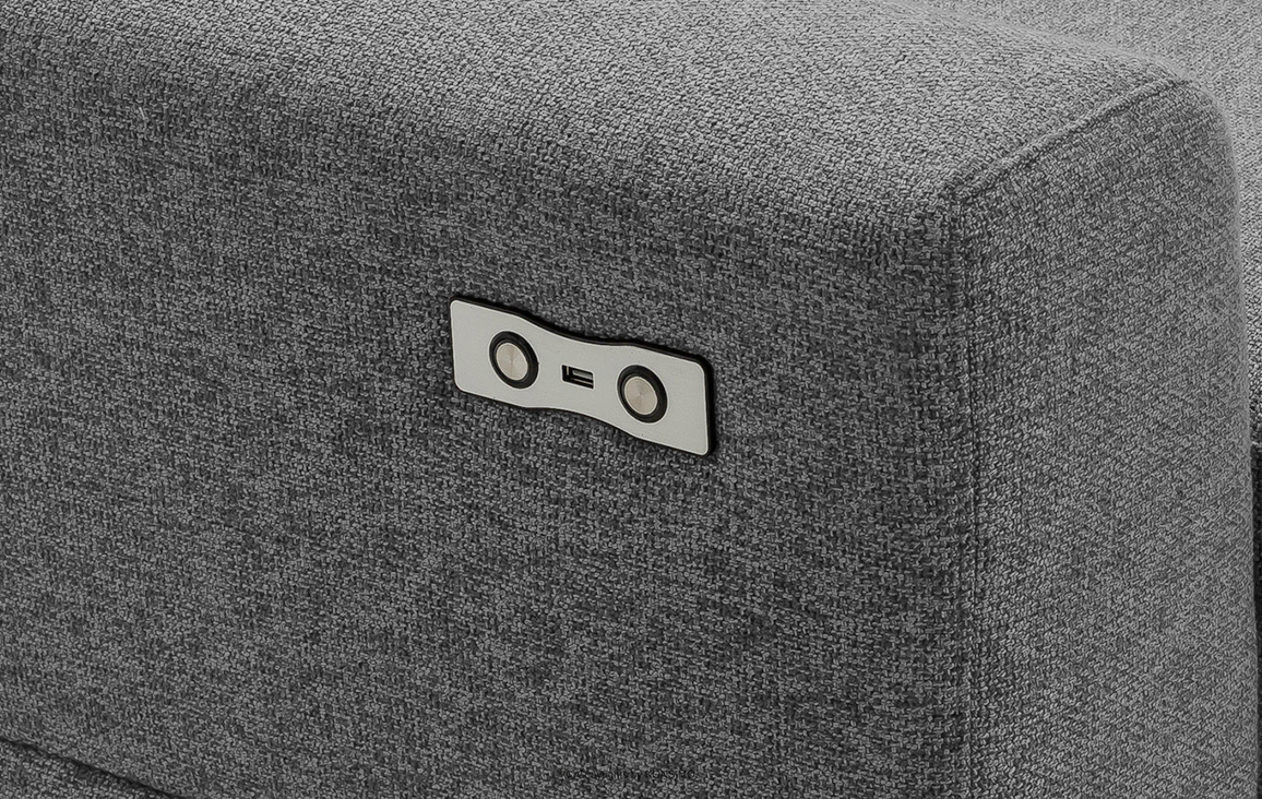 Das graue Ecksofa mit Relax-Funktion links ist die ideale Lösung für große Wohnzimmer. Es ist mit hochwertigem geflochtenem Stoff bezogen, der sich durch leichte Pflege auszeichnet. Das gesamte Sofa steht auf hohen, modernen Metallbeinen, die schwarz lackiert sind. Sie betonen die Modernität des Sofas perfekt. Zusätzlich verfügt es über eine Relax-Funktion, die eine elektrische Verstellung der Kopfstützen in fünf Positionen sowie der Sitzfläche ermöglicht.