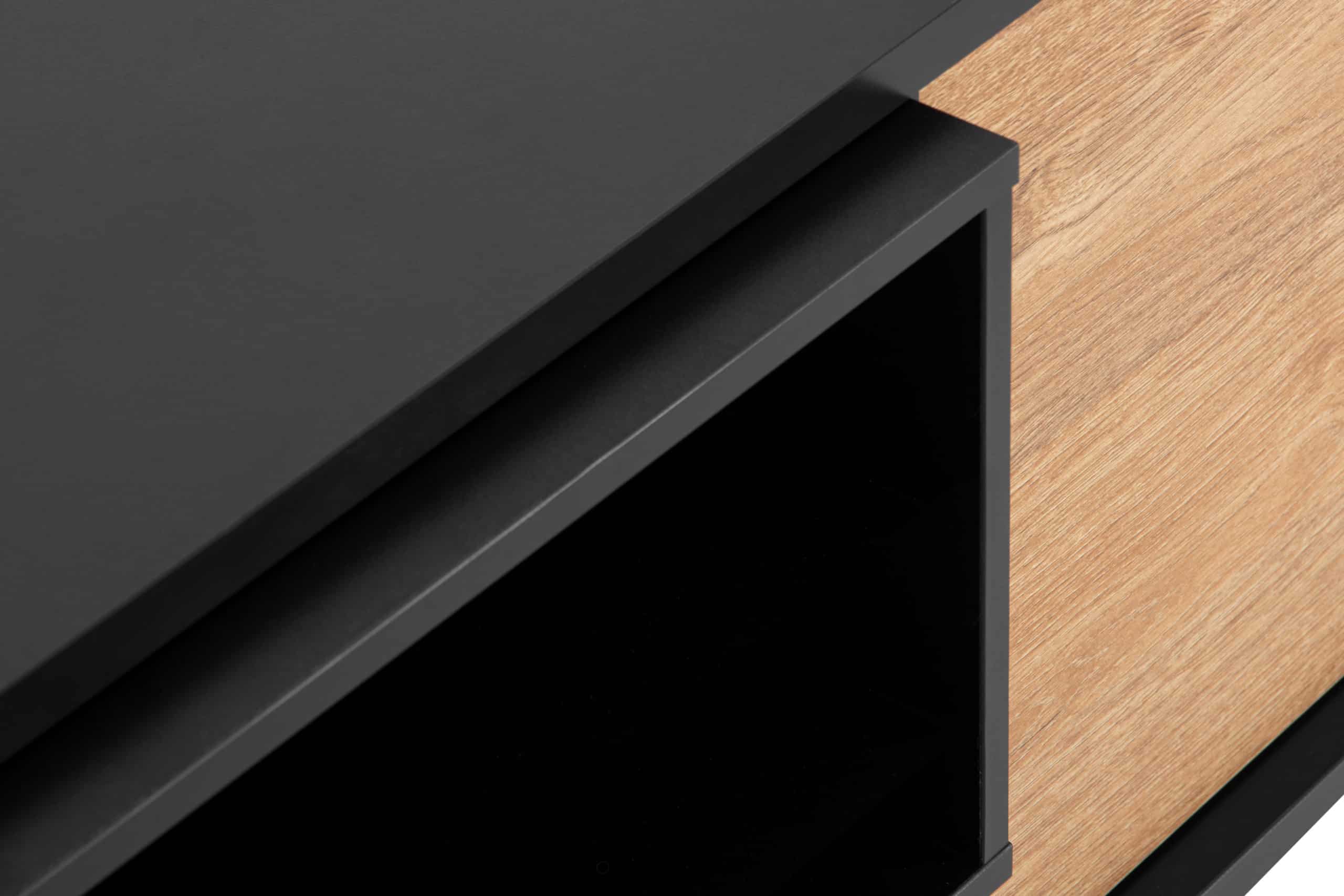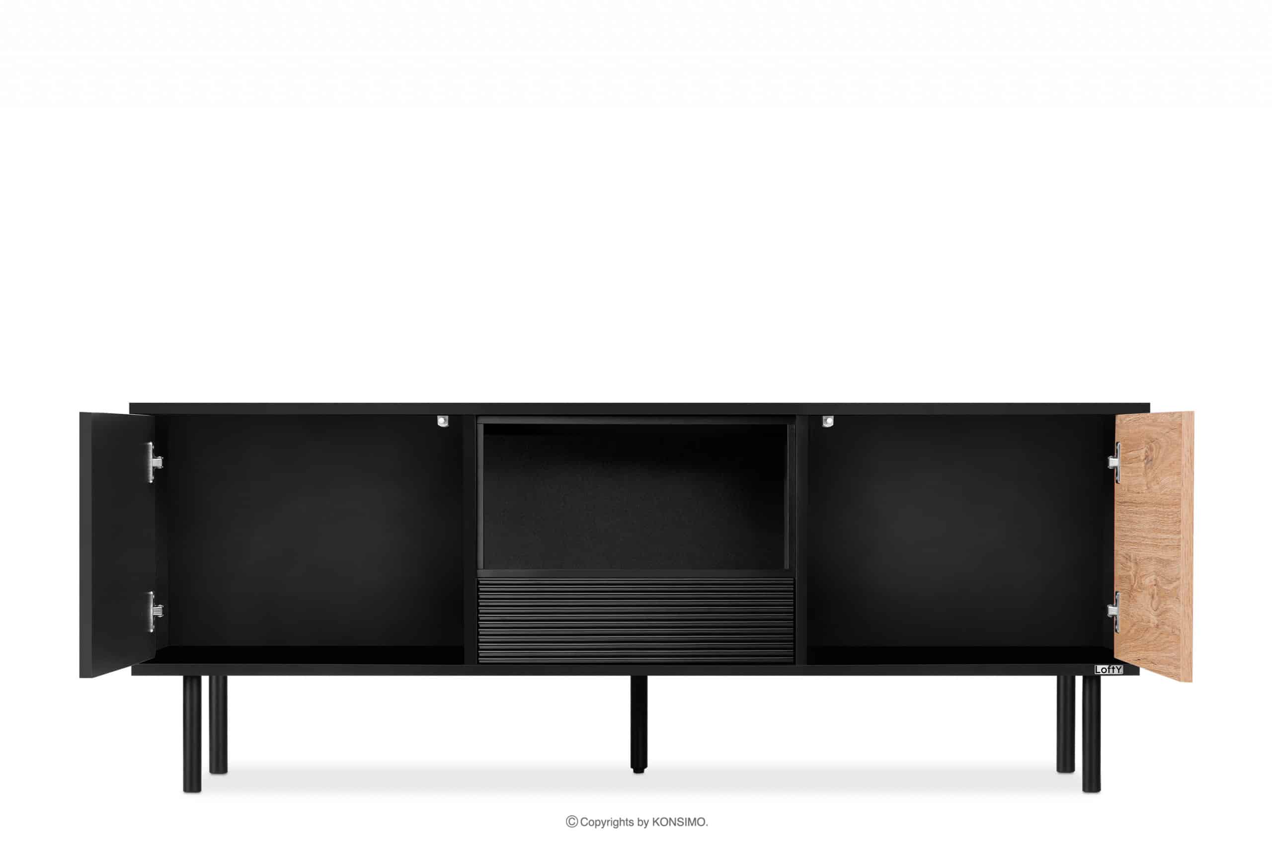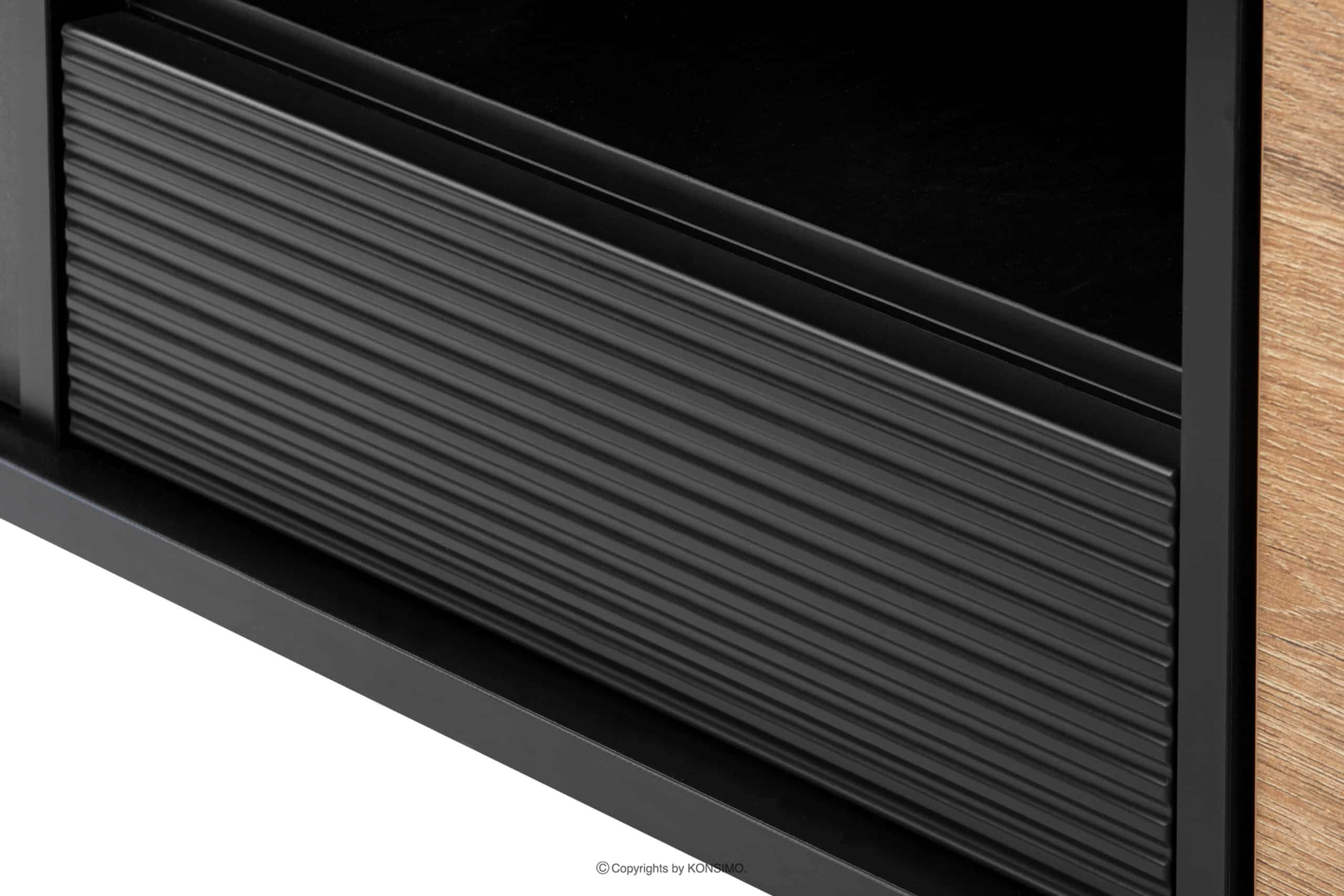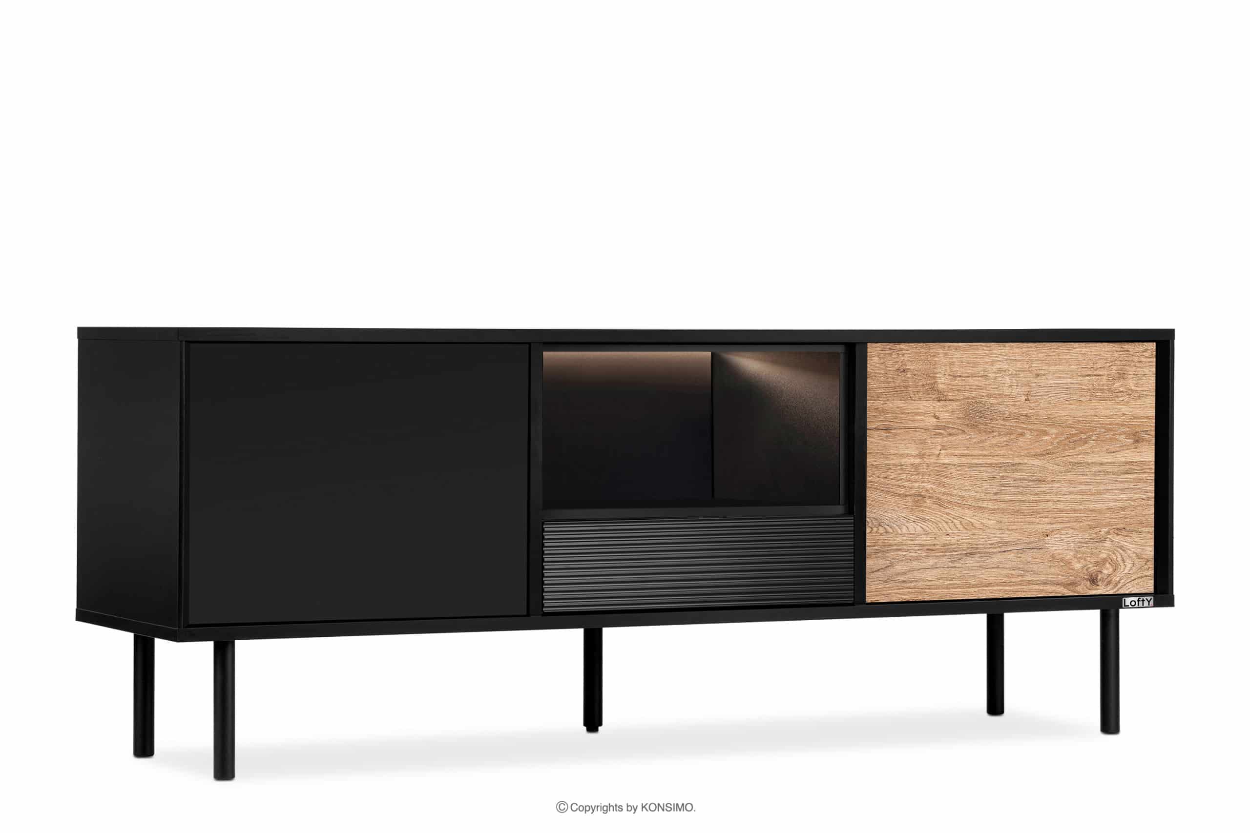 LOFTY Mehr aus der Kollektion Schwarzer TV-Schrank im Loft-Stil mit Rillenmuster- Farbe eiche schwarz/natürlich