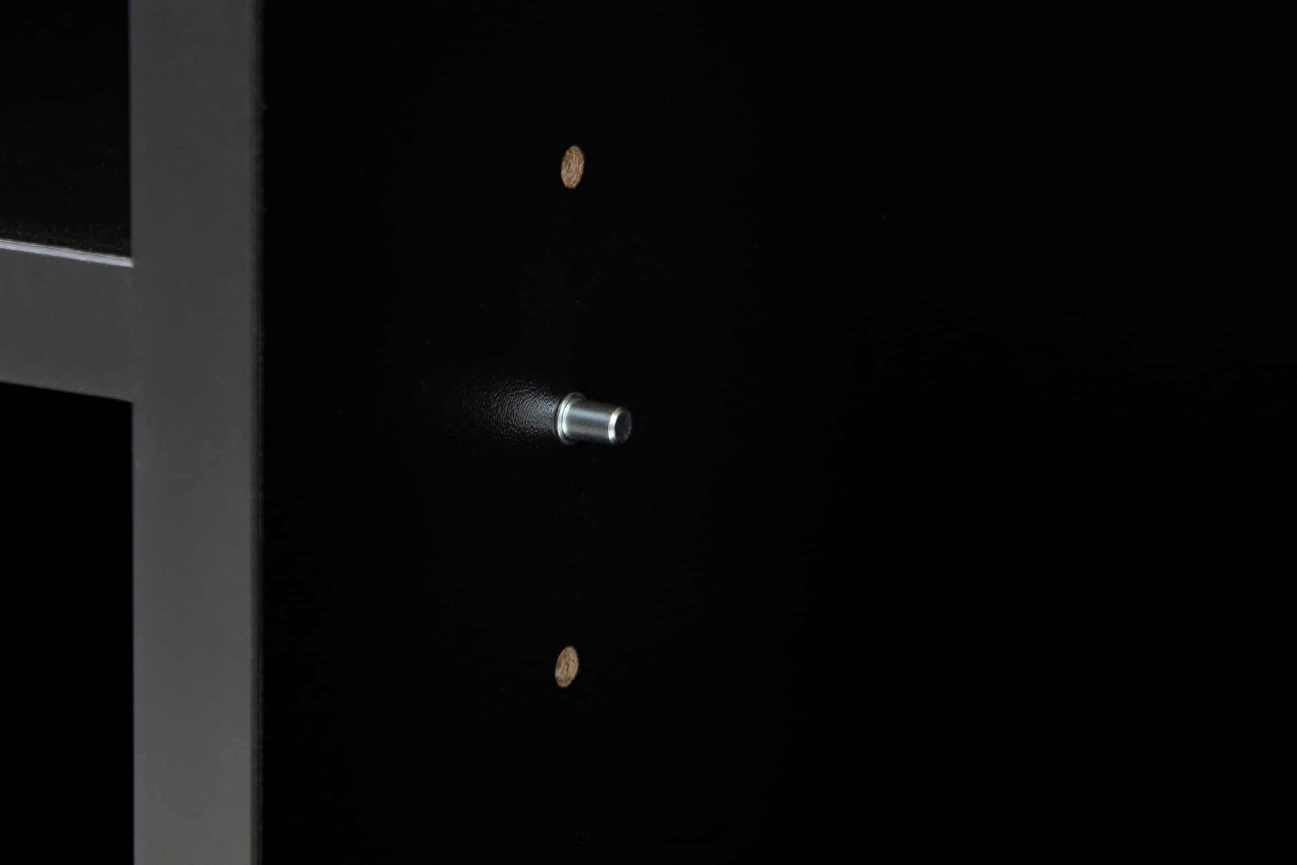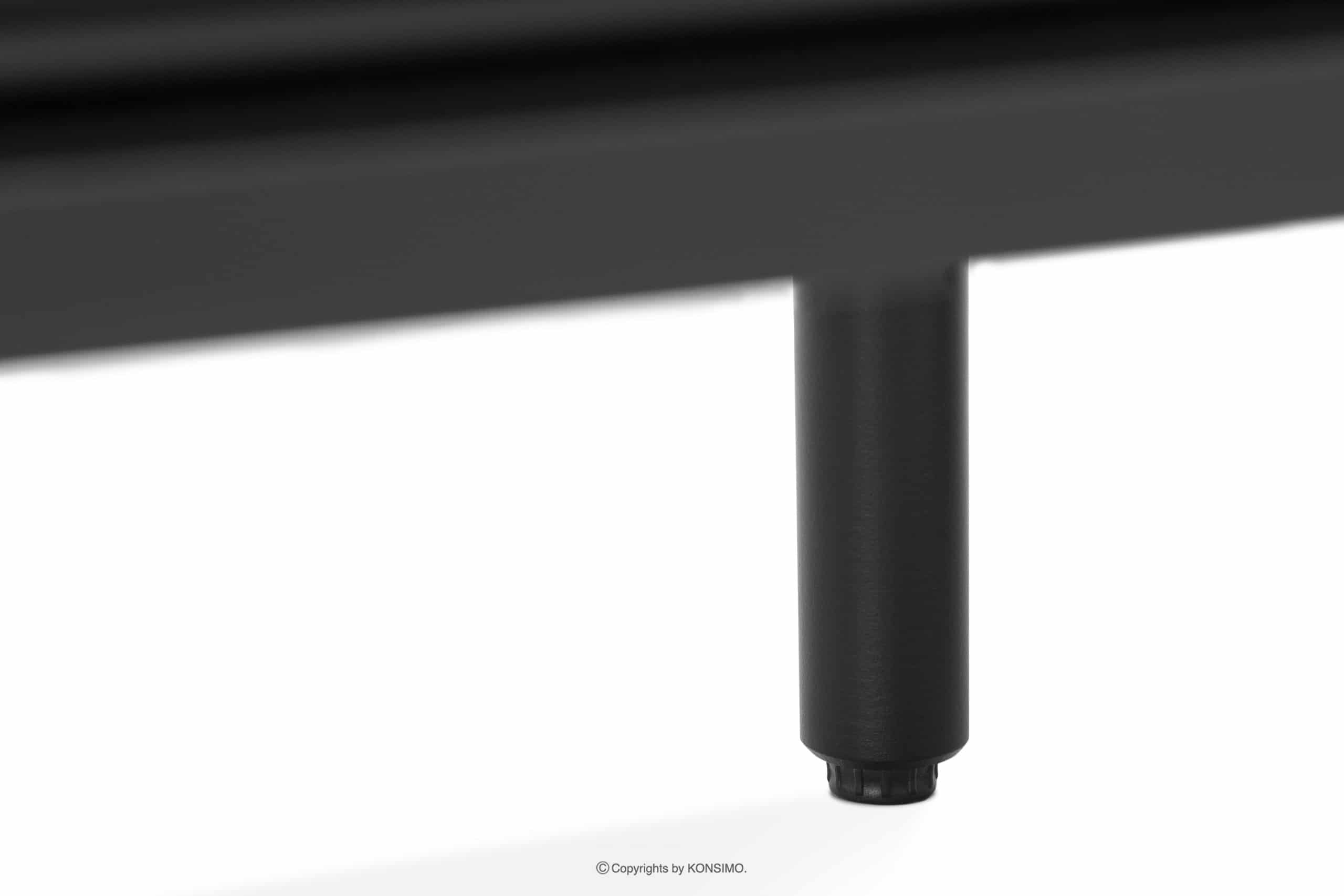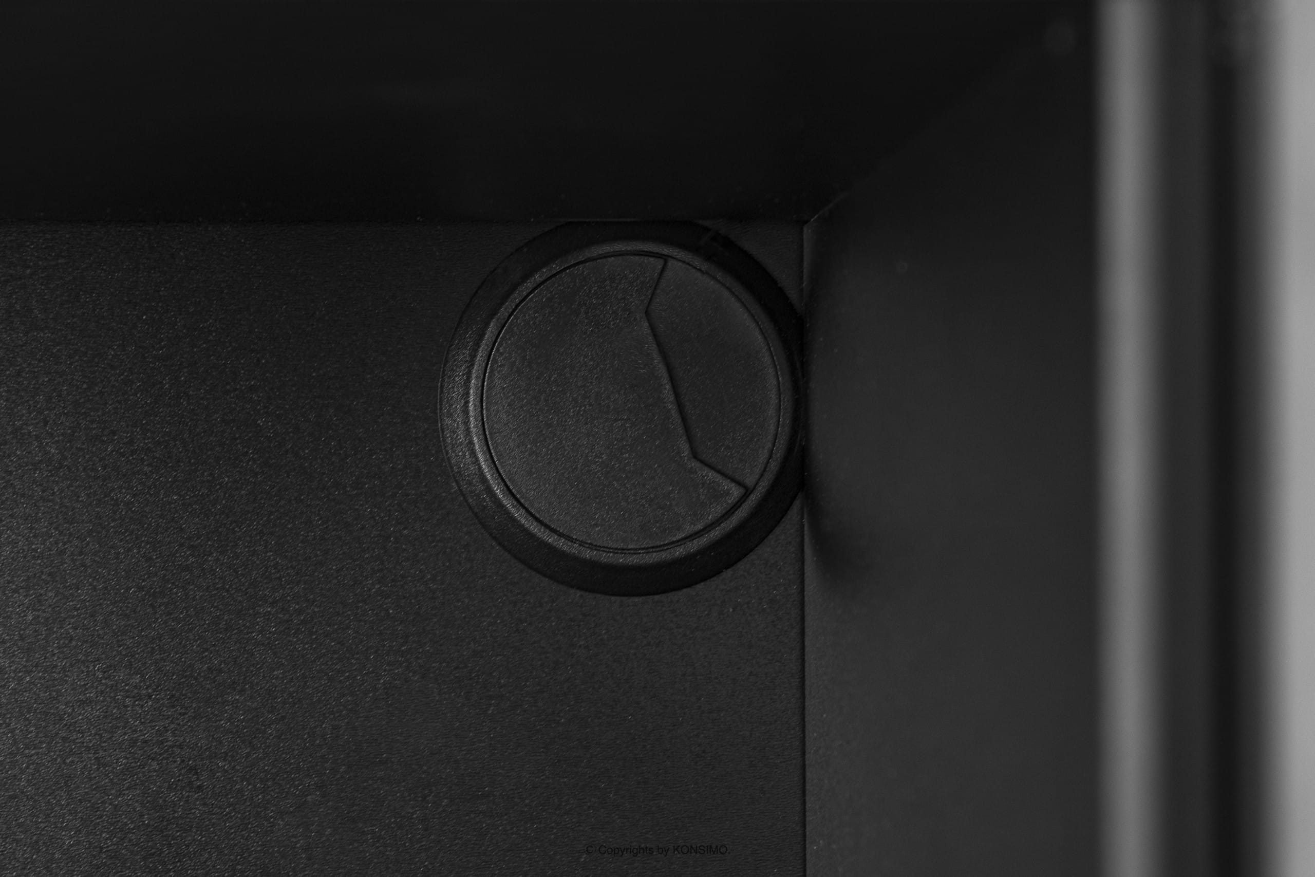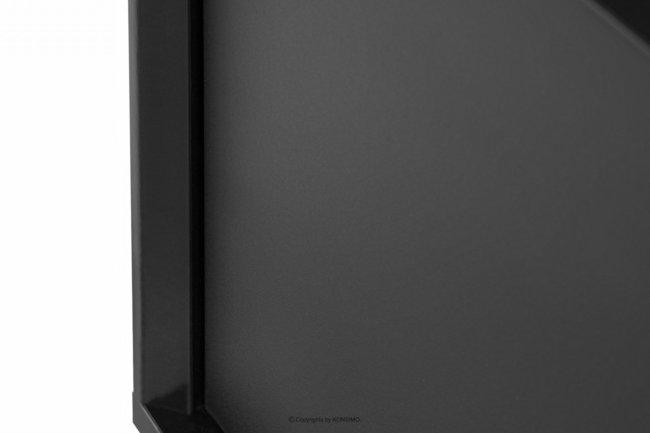 Der schwarze Loft-Style TV-Schrank mit Riffelung ist ein Möbelstück, das mit größter Sorgfalt und ausgewählten Materialien gefertigt wurde, um dem Benutzer Stabilität und Langlebigkeit über viele Jahre hinweg zu gewährleisten. Dank seiner Abmessungen bietet er viel Platz für kleine Gegenstände. Er verfügt über eine Schublade, ein Regal und zwei verschließbare Schränke.