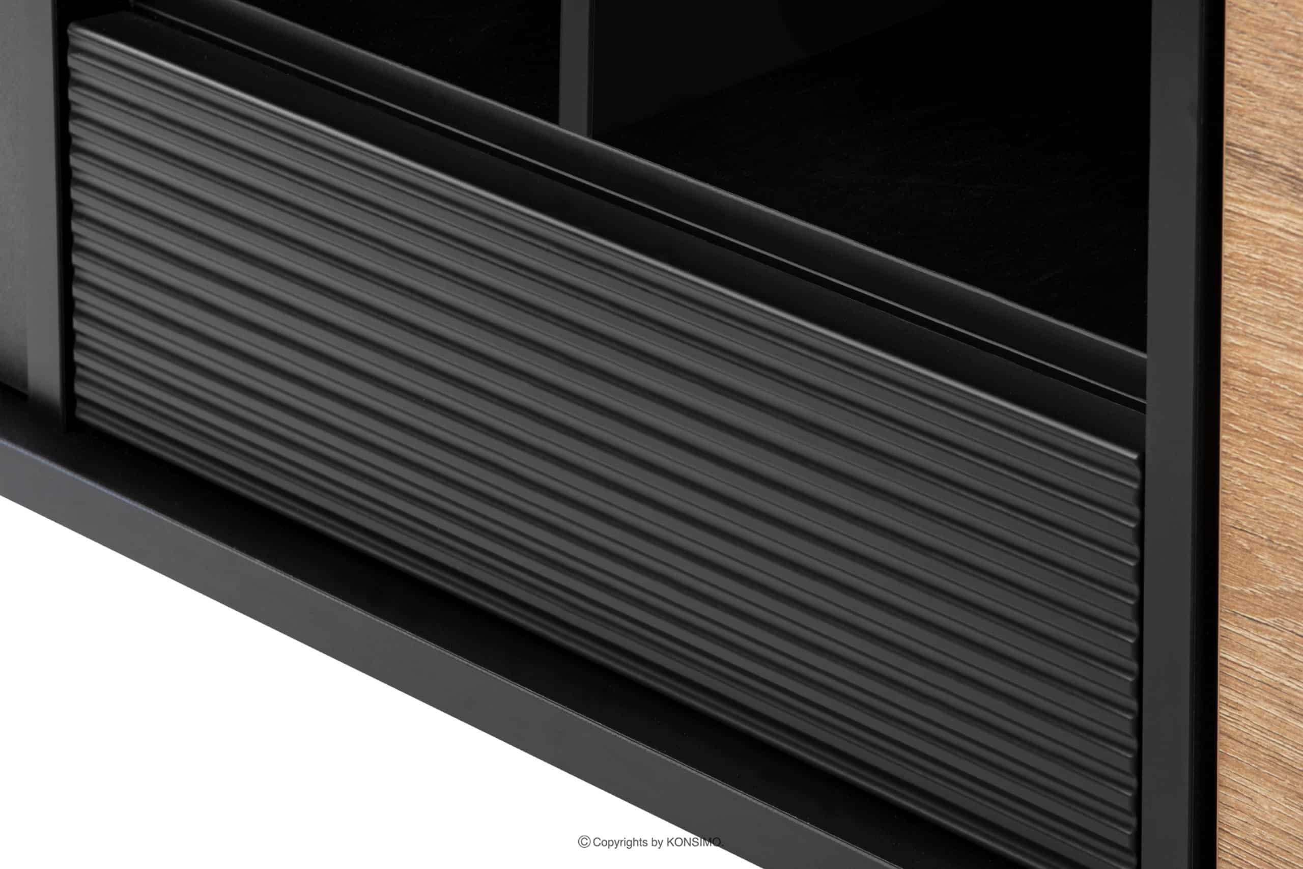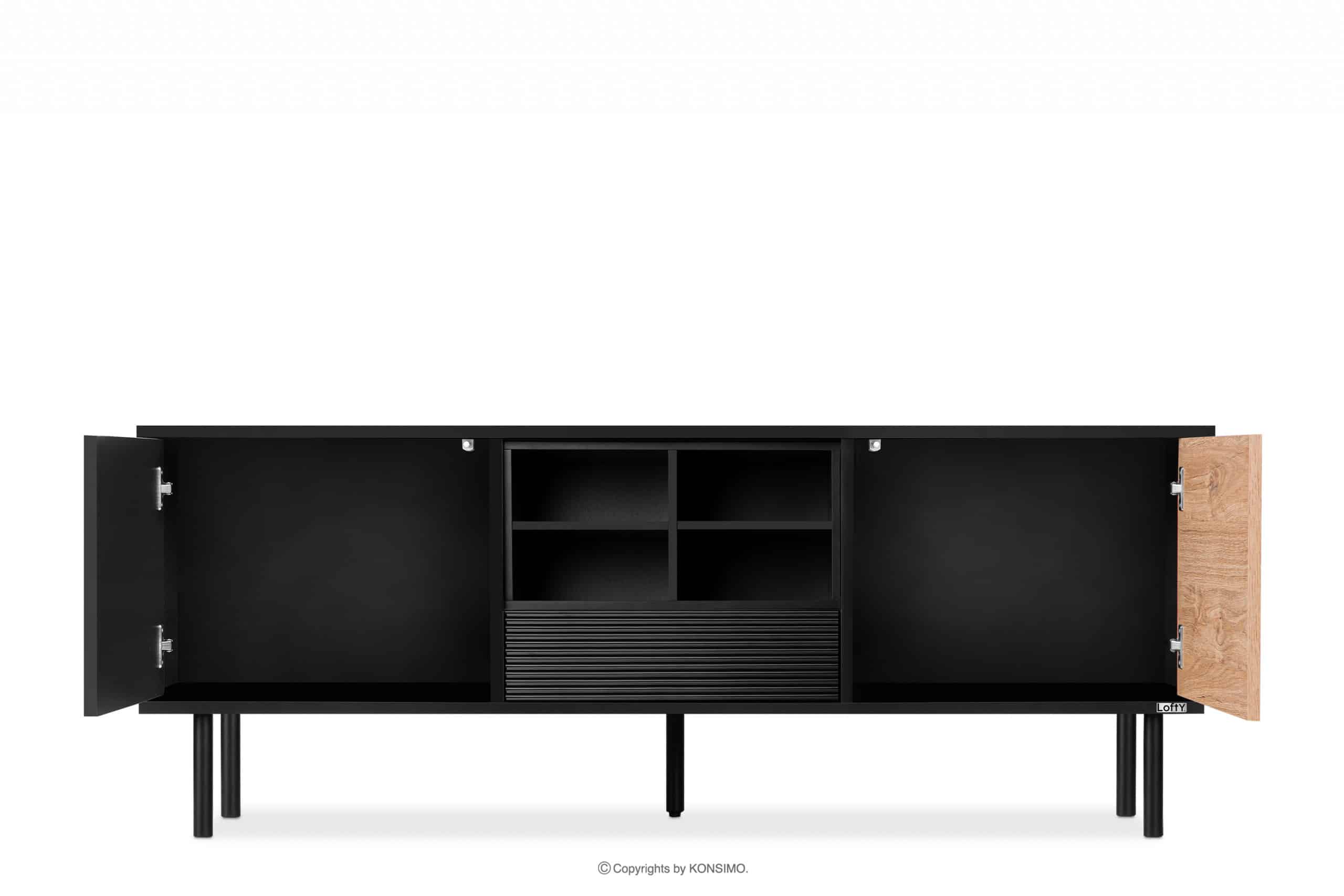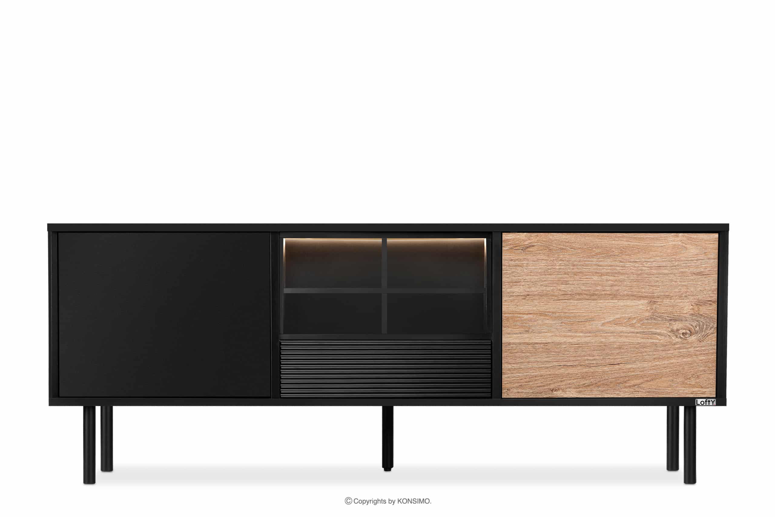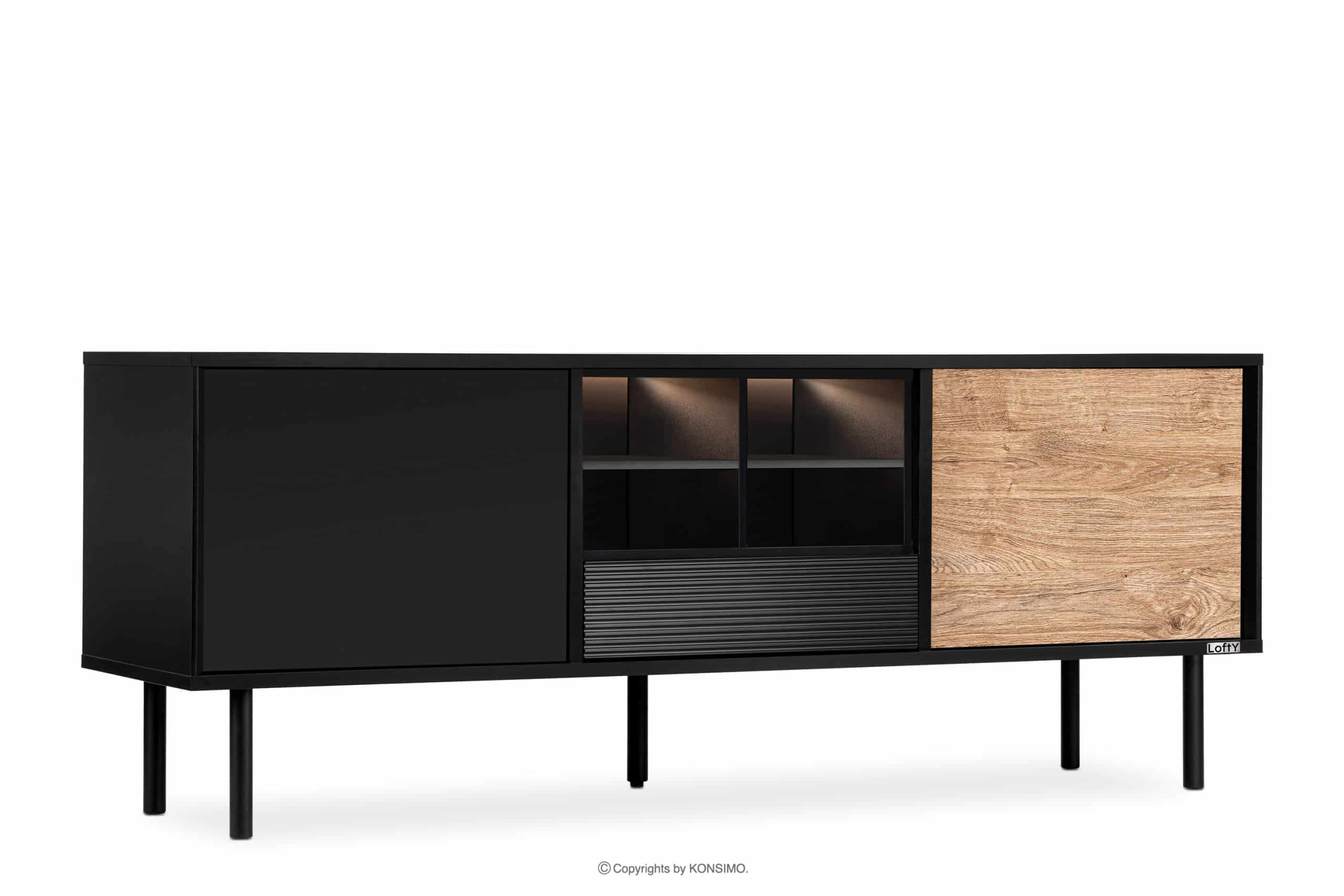 LOFTY Mehr aus der Kollektion Breiter schwarzer TV-Schrank im Loft-Stil mit Einlegeböden- Farbe eiche schwarz/natürlich