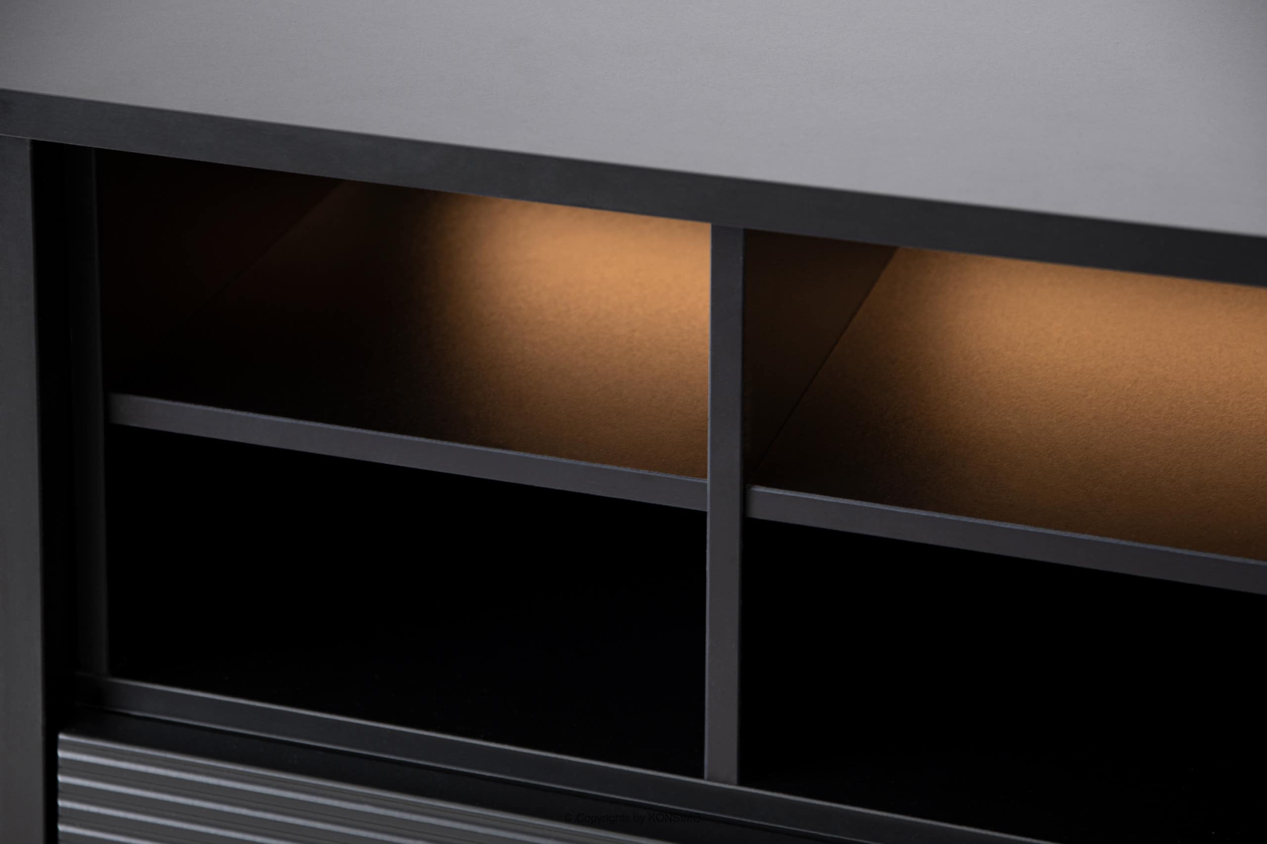 Das Möbelstück passt gut in moderne Loft-Innenräume und seine neutrale Farbgebung passt zu vielen Wand- und Bodenfarben. Der Raum, in dem sich der TV-Schrank LOFTY befindet, muss nicht roh sein, er wurde so gestaltet, dass er etwas Wärme und Gemütlichkeit hinzufügt. Optional mit LED-Beleuchtung 12607.15.147.