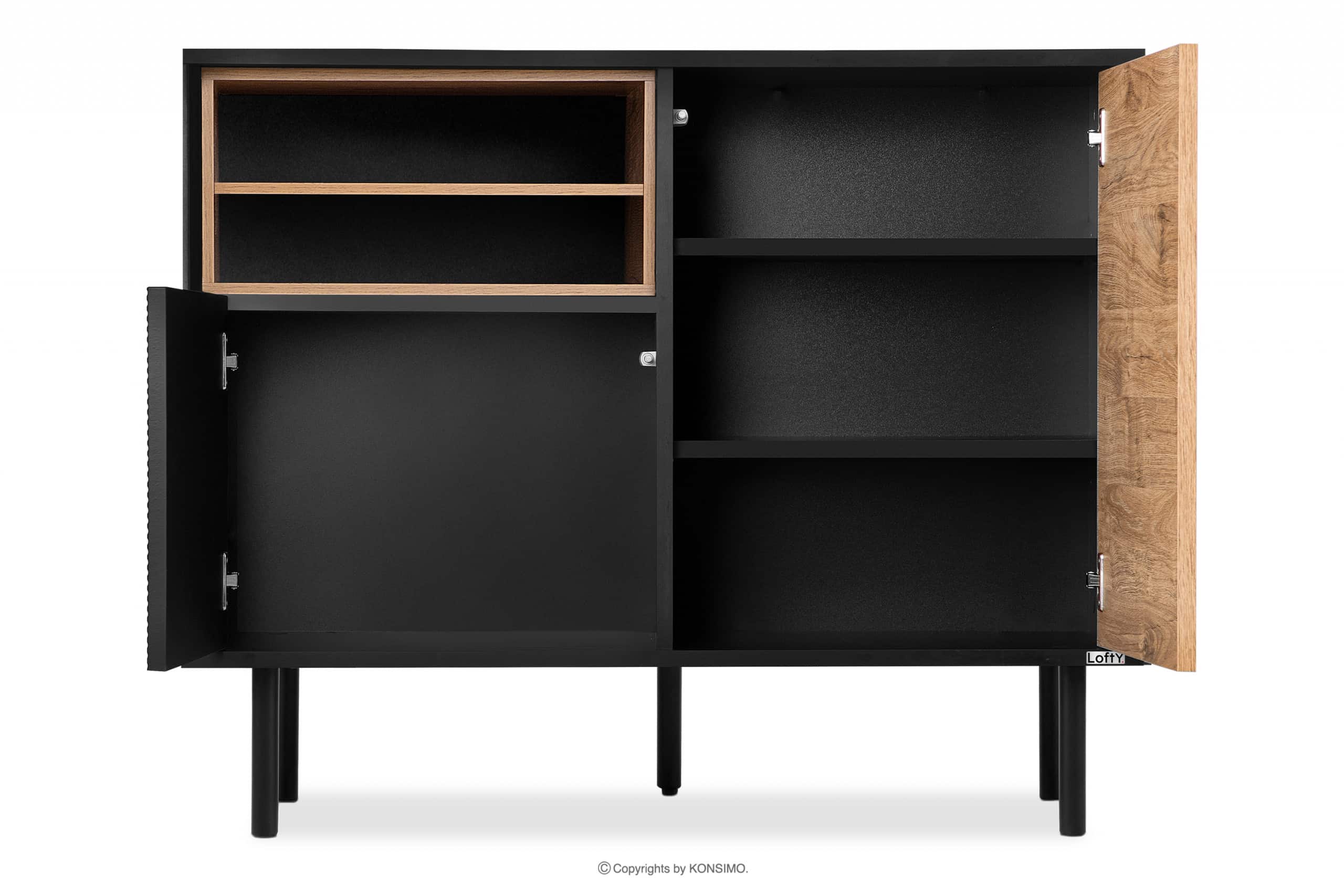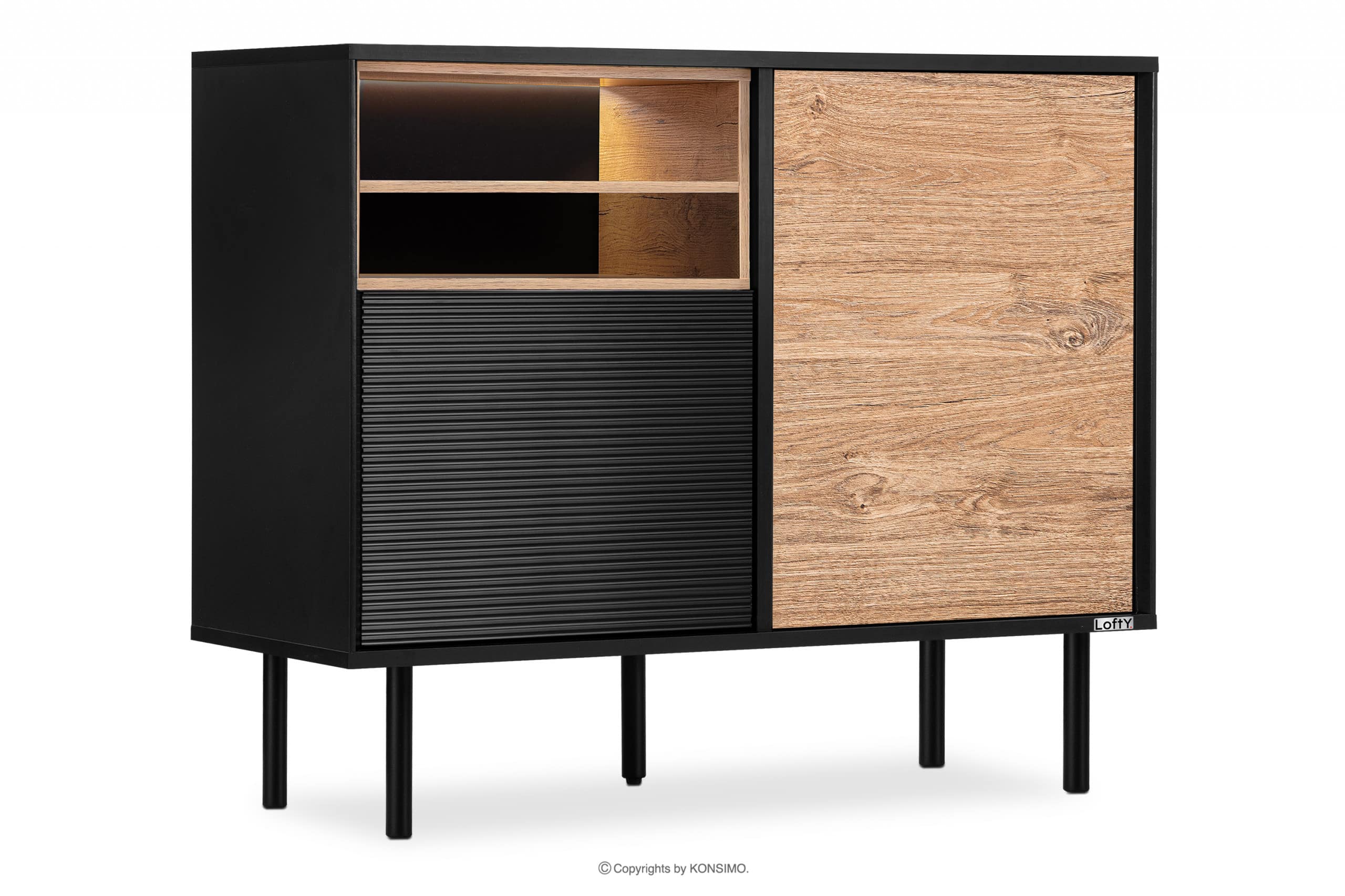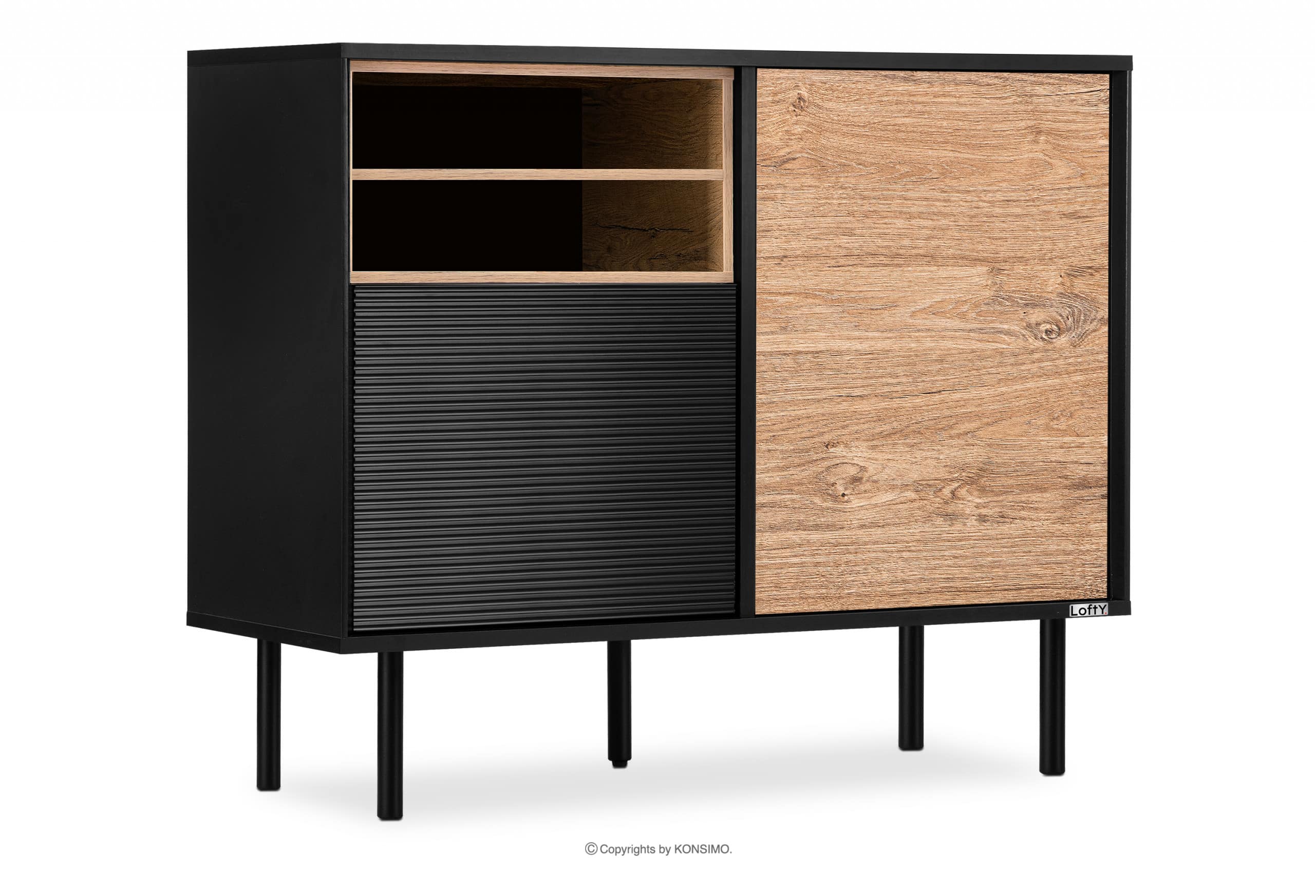 LOFTY Mehr aus der Kollektion Kommode im Loft-Stil mit Einlegeböden auf hohen Holzbeinen- Farbe eiche schwarz/natürlich