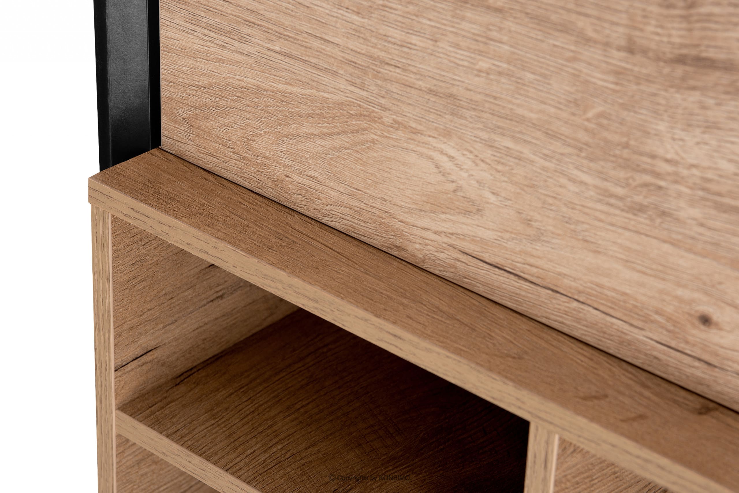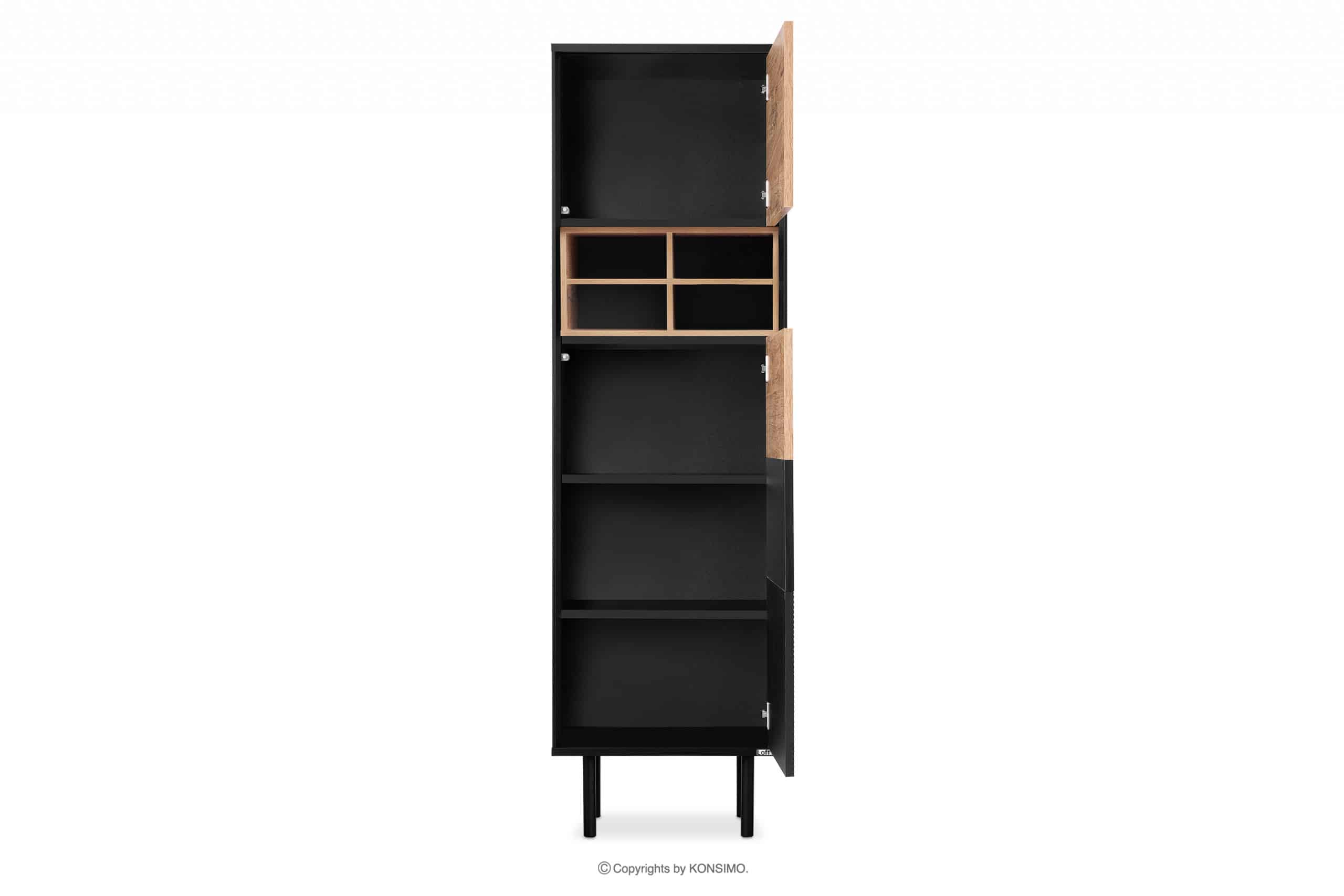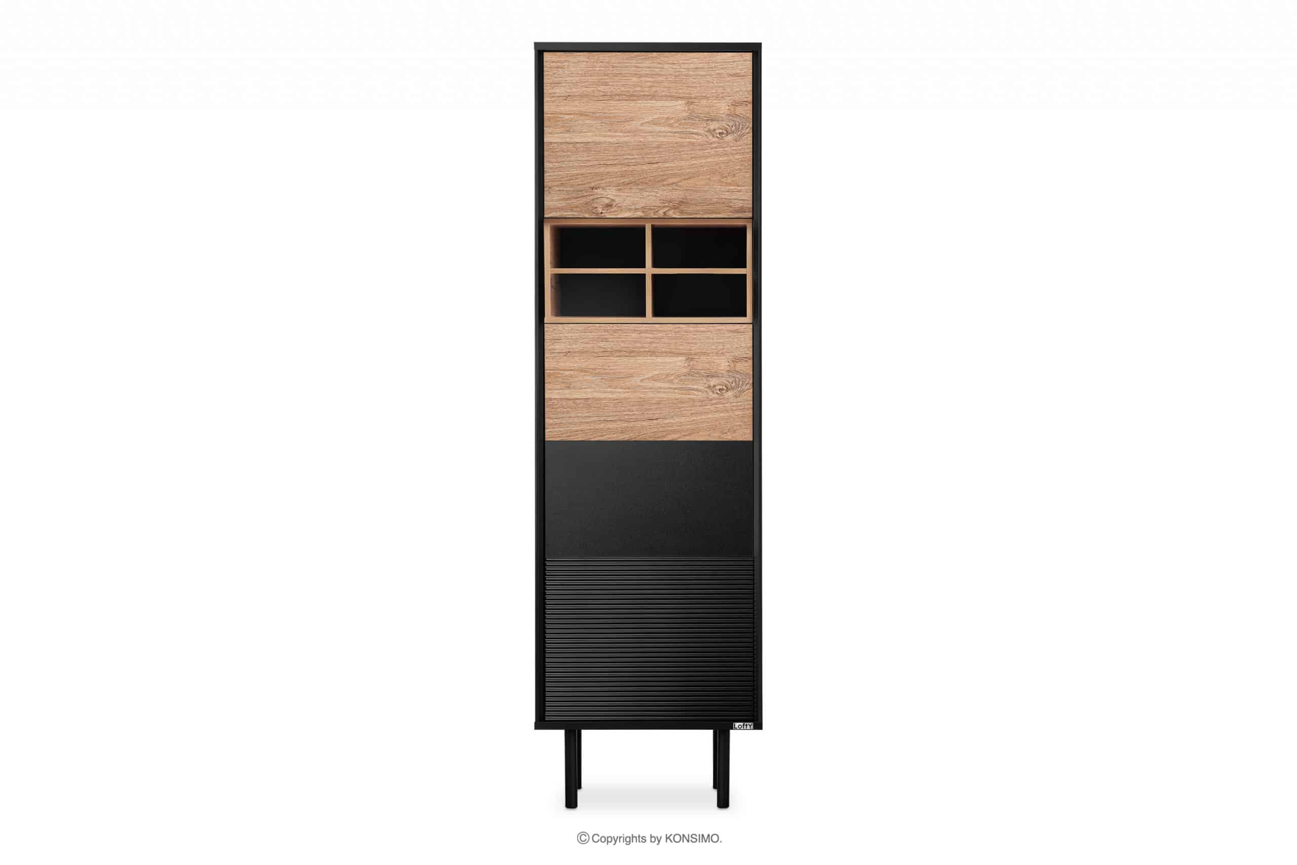 Das industrielle Loft-Regal ist ein Produkt, bei dem viel Wert auf eine hohe Haltbarkeit gelegt wurde. Es verfügt über mehrere Regale zur Aufbewahrung von Alltagsgegenständen. Die Möbel passen gut zu industriellen Innenräumen und die Farbkombinationen in Schwarz und Natur-Eiche passen zu vielen verschiedenen Farbschemata. Die Türen sind mit einem Push-to-Open-System ausgestattet, das sehr funktional ist und dem Regal überflüssigen Schmuck erspart.