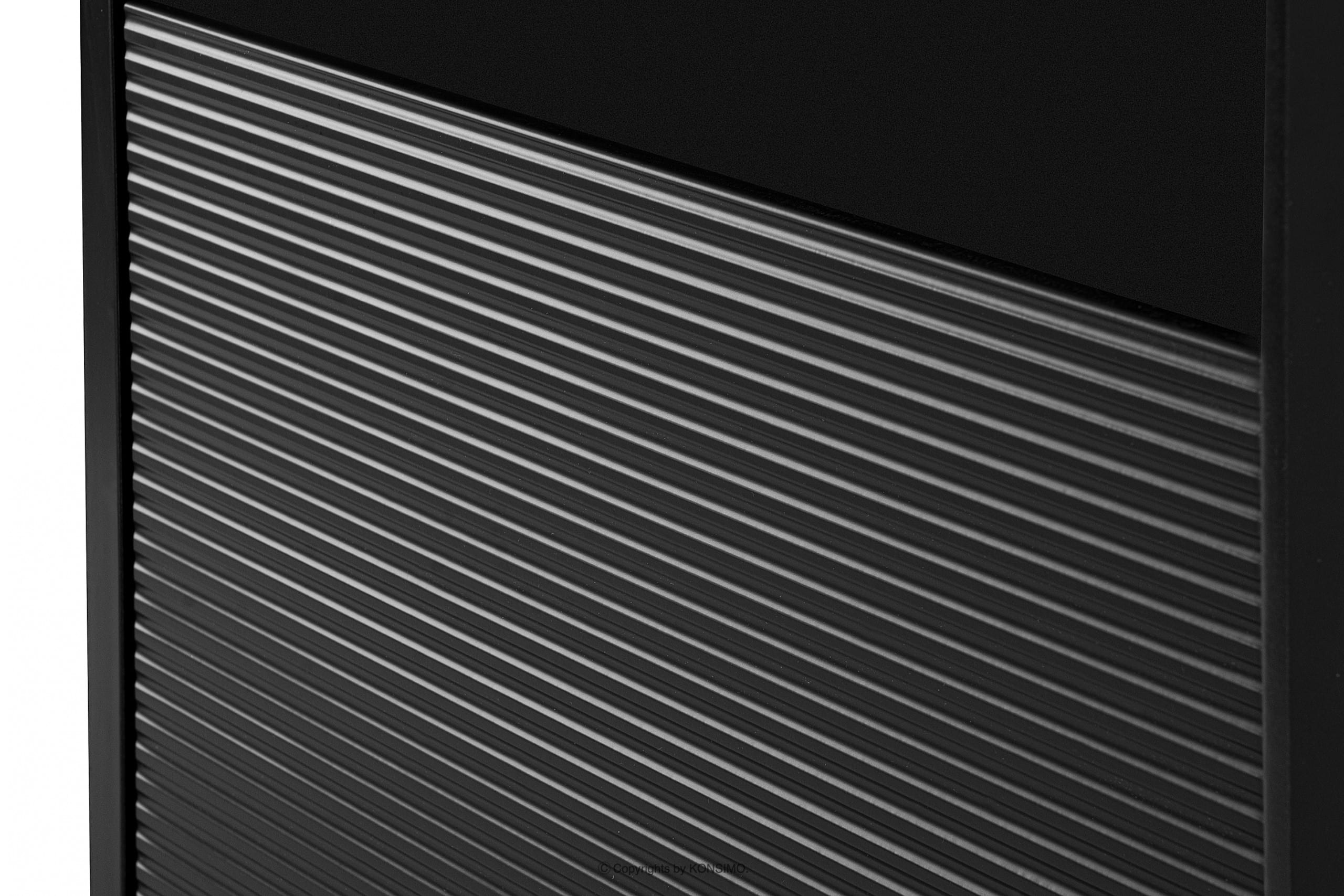- Frontenmaterial: 18mm laminierte Platte, Geriffelter Dekoreinsatz – MDF mit 18 mm PVC-Folie überzogen