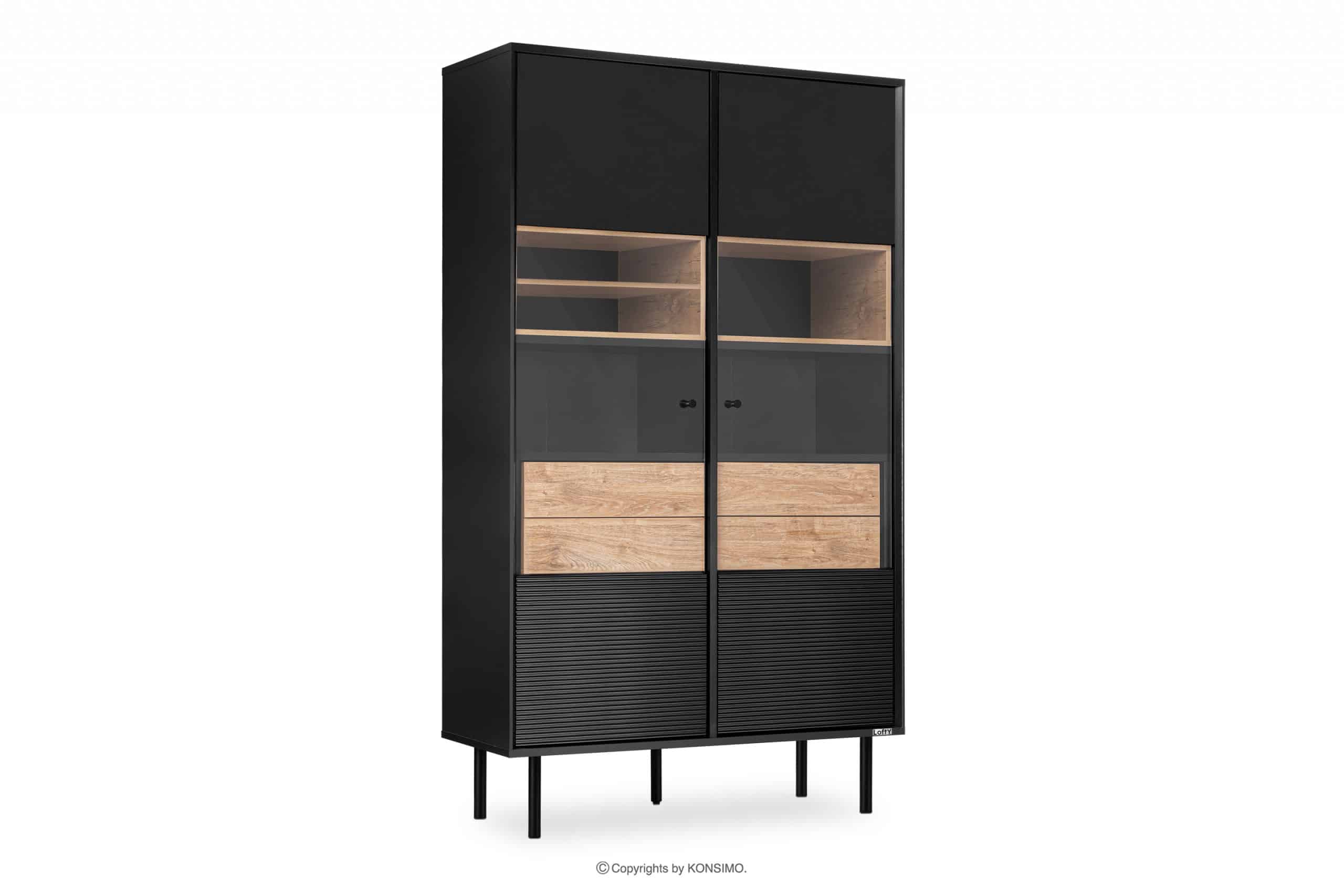 Vitrine im Loft-Stil mit Rillenfront LOFTY - Farbe eiche schwarz/natürlich