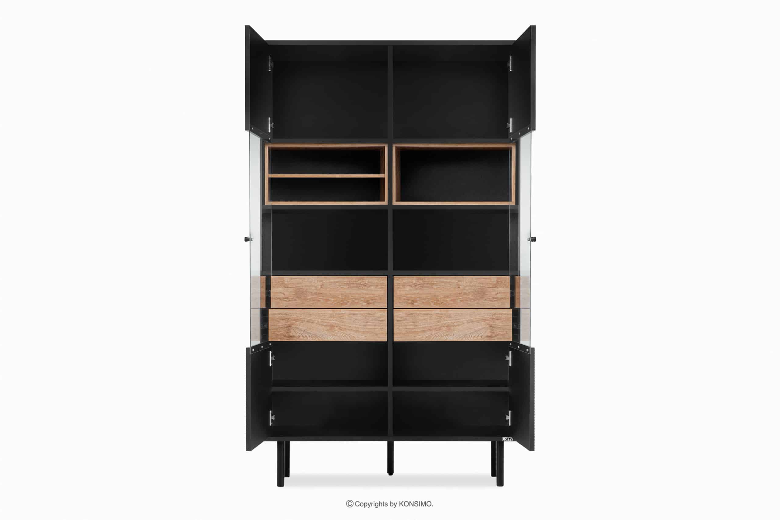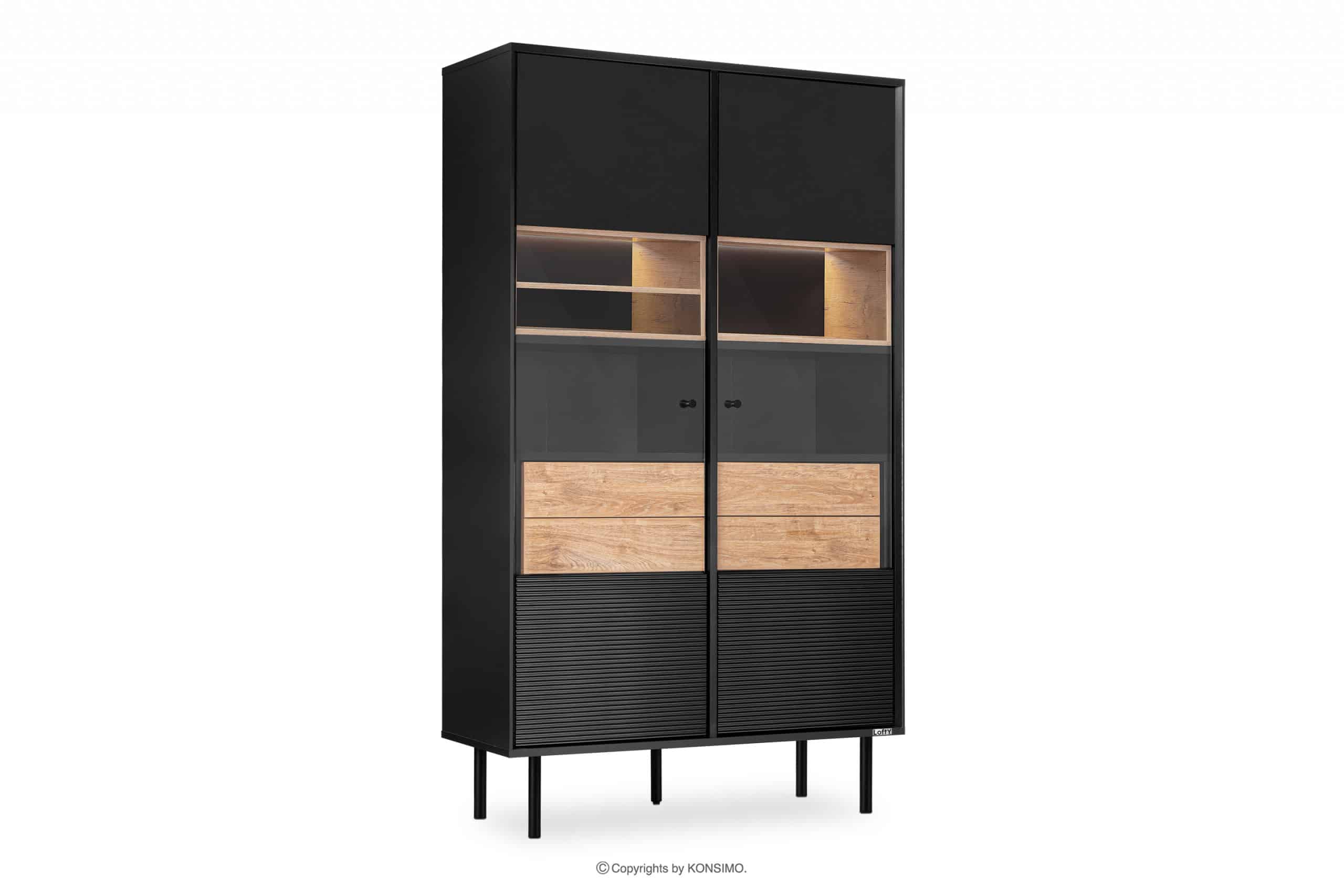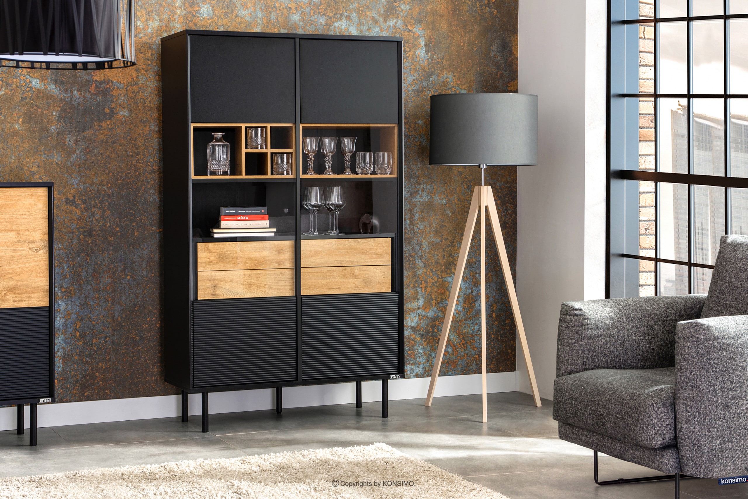LOFTY Mehr aus der Kollektion Vitrine im Loft-Stil mit Rillenfront- Farbe eiche schwarz/natürlich