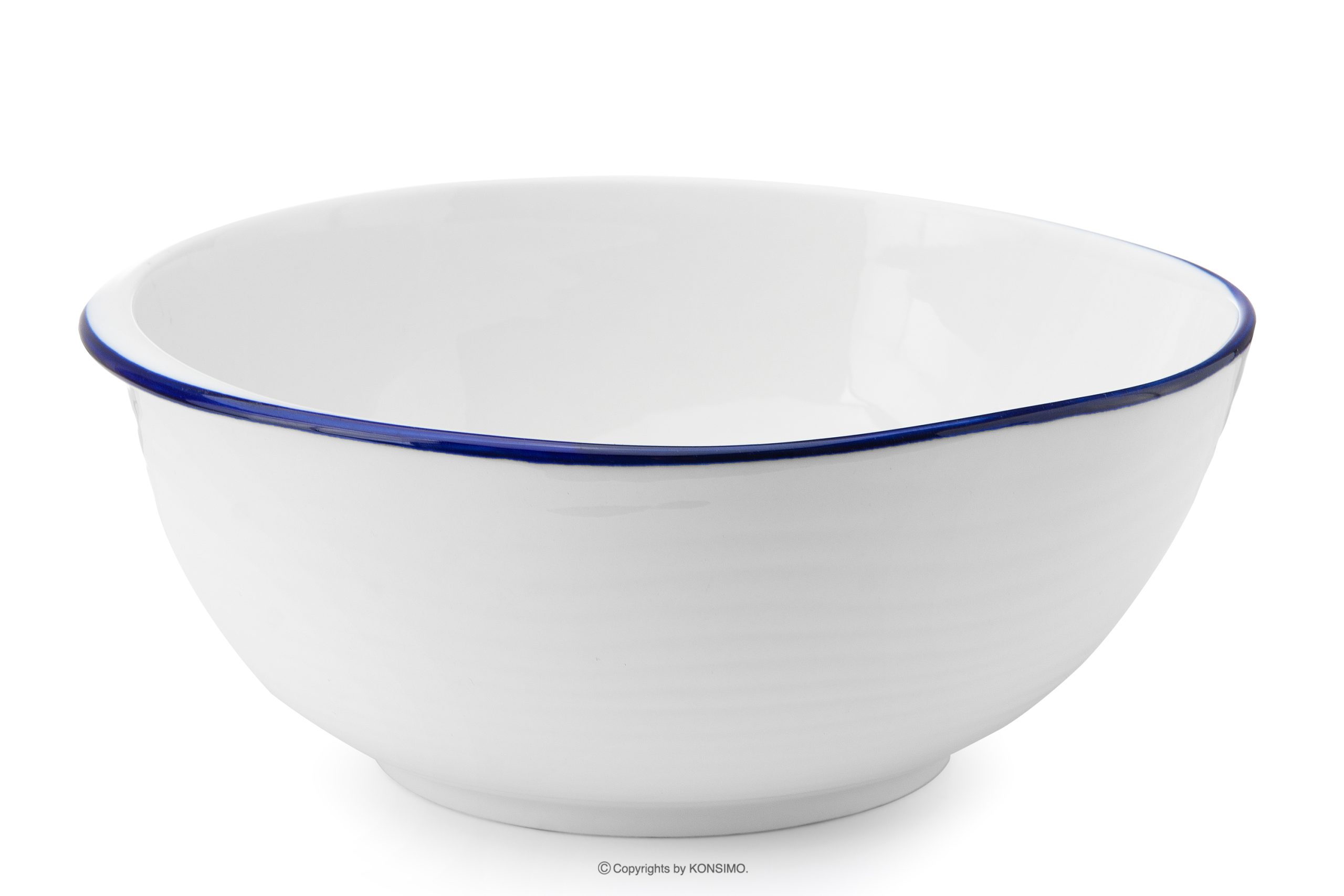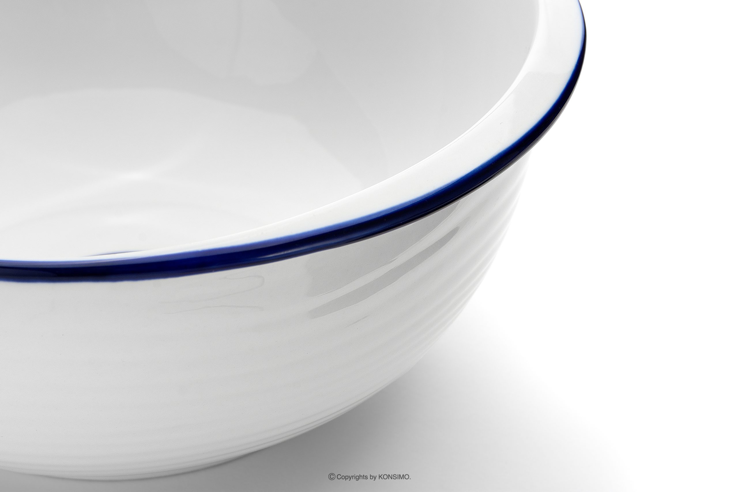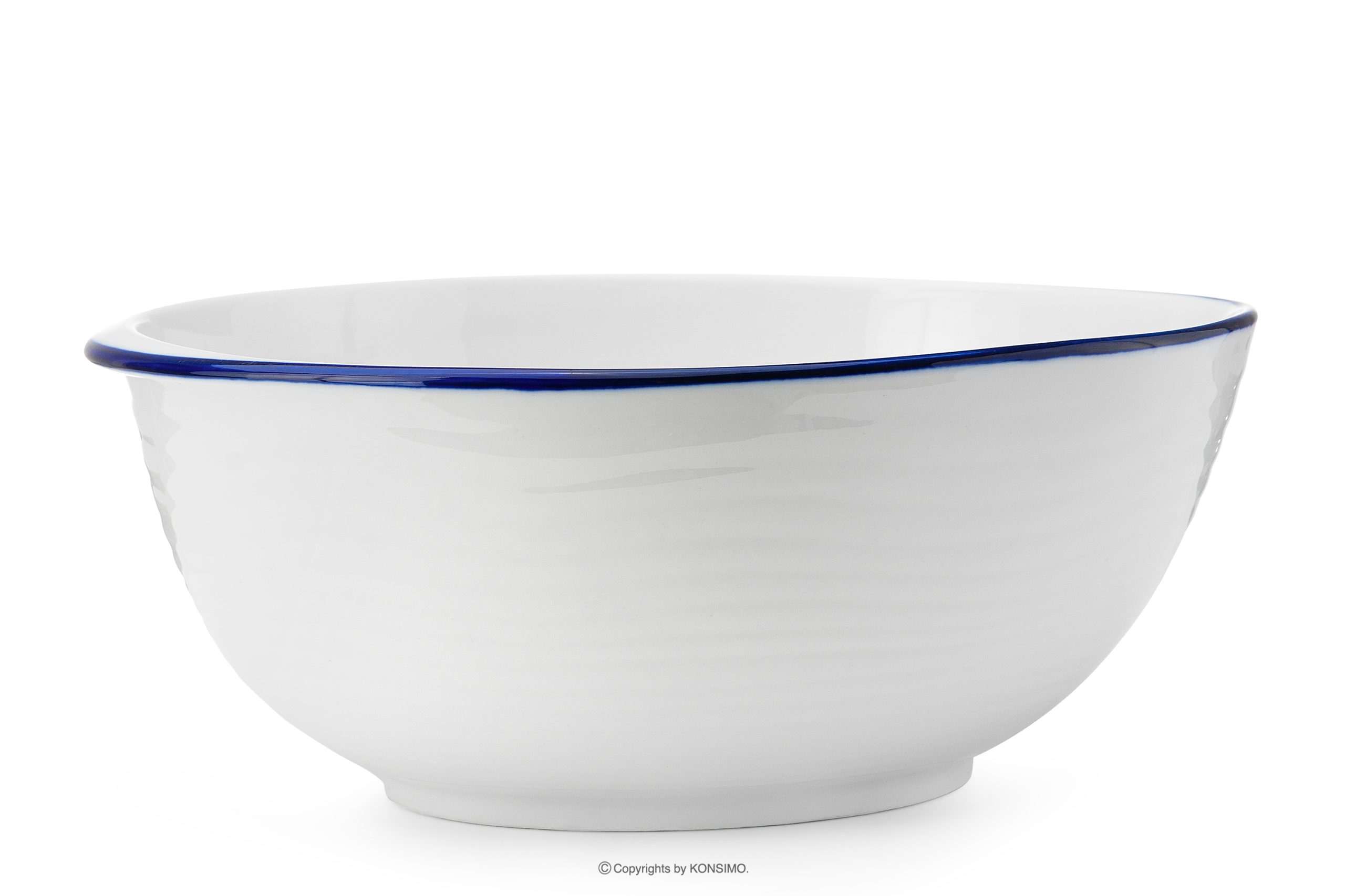 Die Produkte der Kollektion KROG in Weiß mit einem marineblauen Punkt sind die perfekte Wahl für Liebhaber von modernem Design und minimalistischen Einrichtungen. Die Schalen aus der Kollektion KROG sind nicht nur eine elegante, sondern auch eine praktische Ergänzung für Ihren Tisch. Die Schalen sind aus Porzellan gefertigt und bieten eine lange Lebensdauer und einen stilvollen Look, der zu jeder Tischdekoration passt.