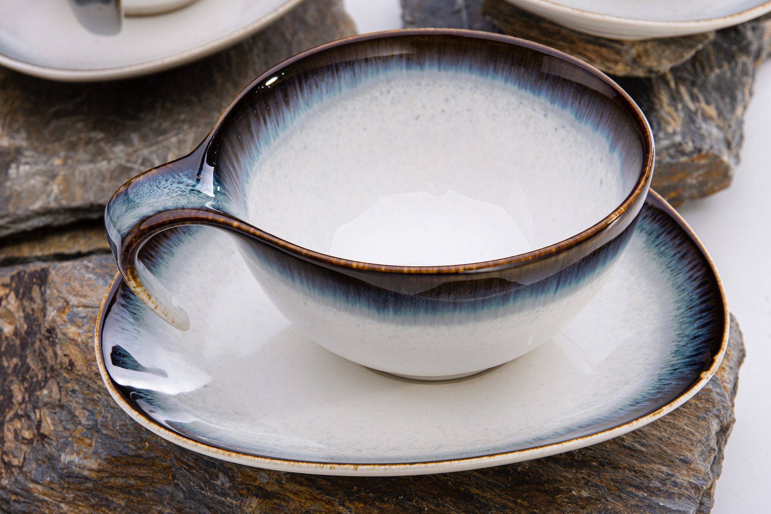 TIME DIM Mehr aus der Kollektion Teetasse mit Untertasse- Farbe weiß/braun/blau
