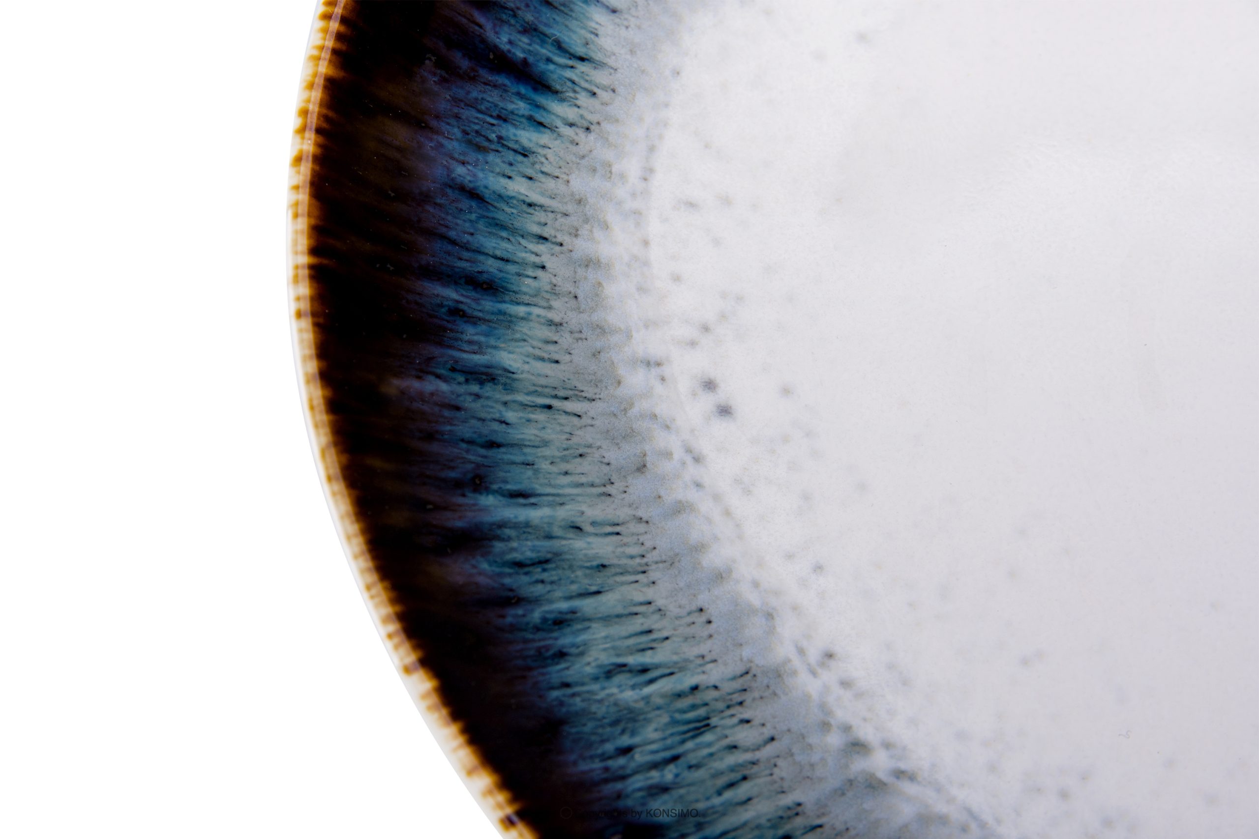 Der einzigartig gestaltete Frühstücksteller bringt Farbe auf Ihren gedeckten Tisch. Er ist aus hochwertigem Porzellan gefertigt und passt perfekt zum nautischen, maritimen und skandinavischen Thema. Eine Besonderheit ist die Technik des Auftragens des Musters mit einer reaktiven Glasur. Das macht jedes Stück zu einem Unikat und ermöglicht es, dass sich die einzelnen Stücke voneinander unterscheiden.