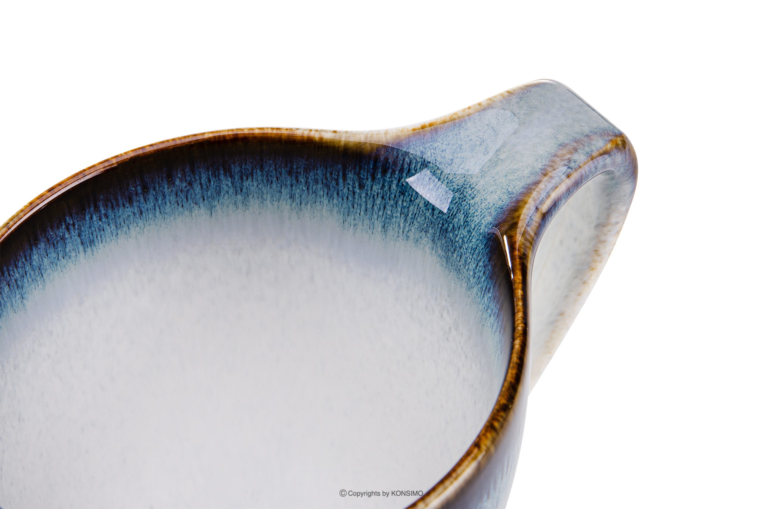 Die einzigartig gestaltete Tasse wurde geschaffen, um Farbe auf Ihren gedeckten Tisch zu bringen. Er ist aus hochwertigem Porzellan gefertigt und passt perfekt zum nautischen, maritimen und skandinavischen Thema. Eine Besonderheit ist die Technik des Auftragens des Musters mit einer reaktiven Glasur. Das macht jedes Stück zu einem Unikat und ermöglicht es, dass sich die einzelnen Stücke voneinander unterscheiden.