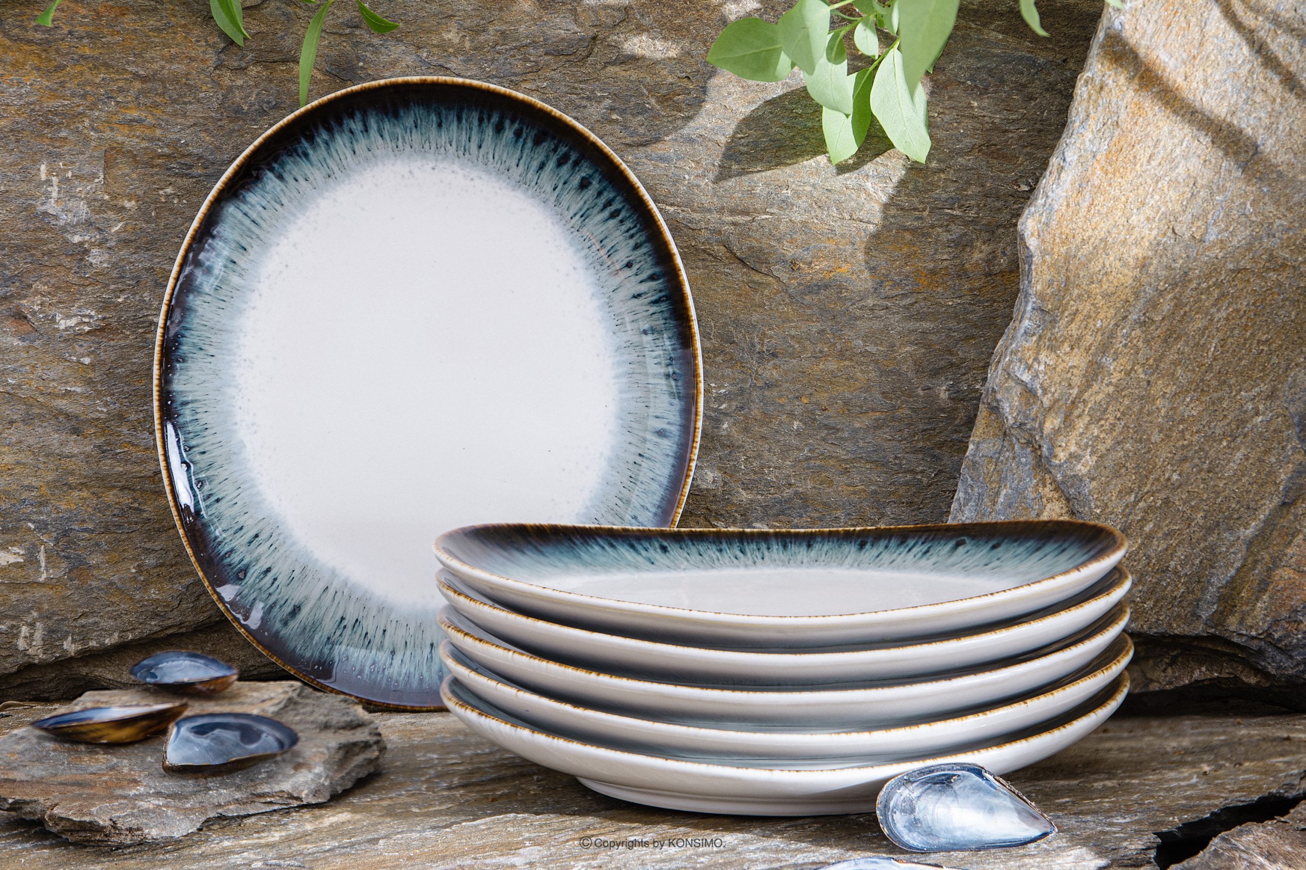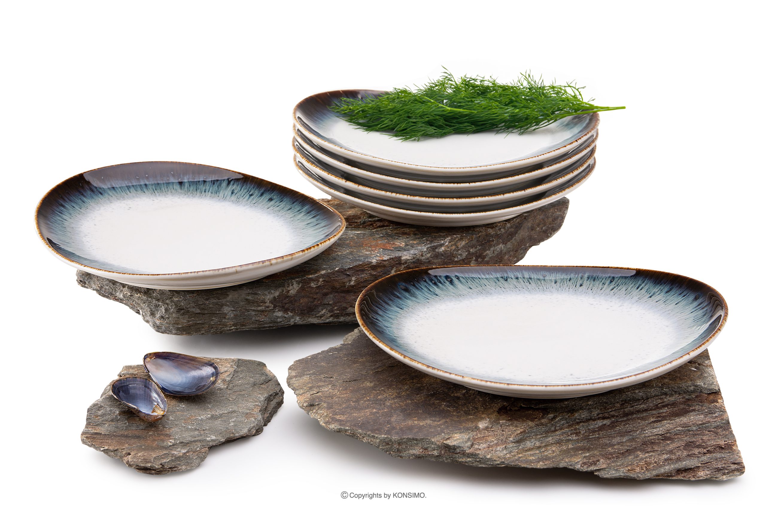 TIME DIM Mehr aus der Kollektion Frühstücksteller 6tlg.- Farbe weiß/braun/blau