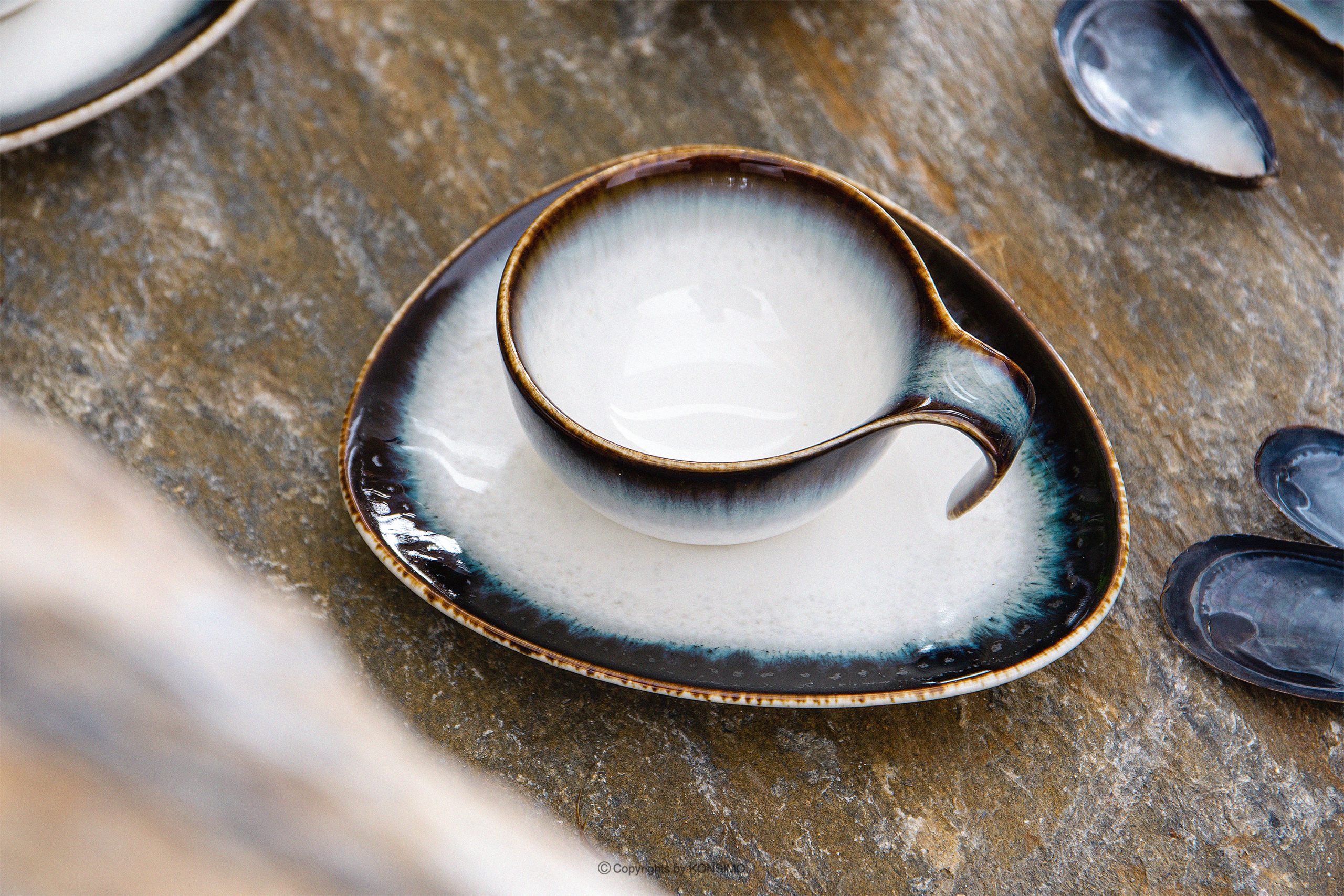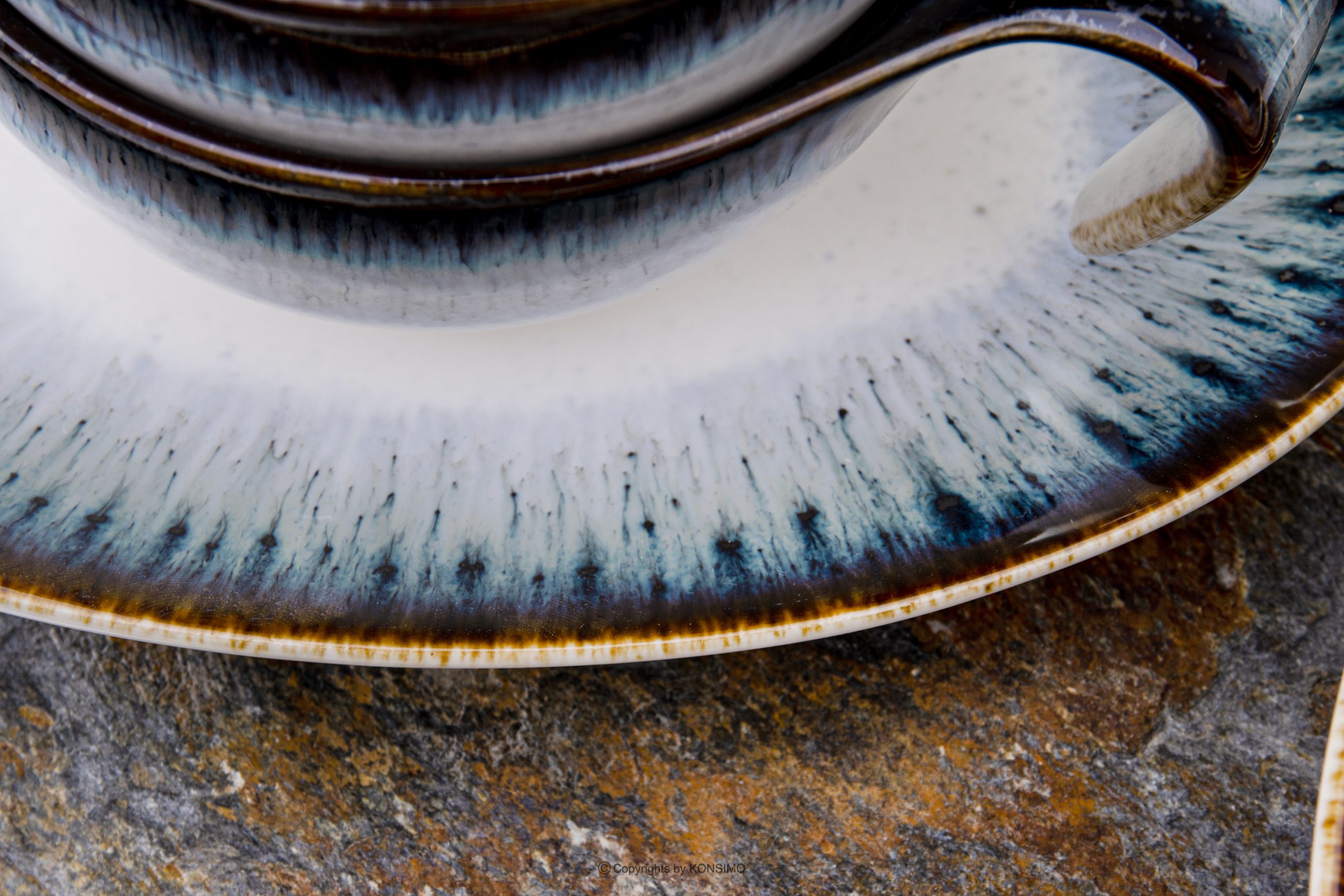 Die 6-teilige Espressotasse mit Untertasse in einzigartigem Design wurde kreiert, um Farbe auf Ihren gedeckten Tisch zu bringen. Sie ist aus hochwertigem Porzellan gefertigt und passt perfekt zum nautischen, maritimen und skandinavischen Thema. Eine Besonderheit ist die Technik des Auftragens des Musters mit einer reaktiven Glasur. Das macht jedes Stück zu einem Unikat und ermöglicht es, dass sich die einzelnen Stücke voneinander unterscheiden.