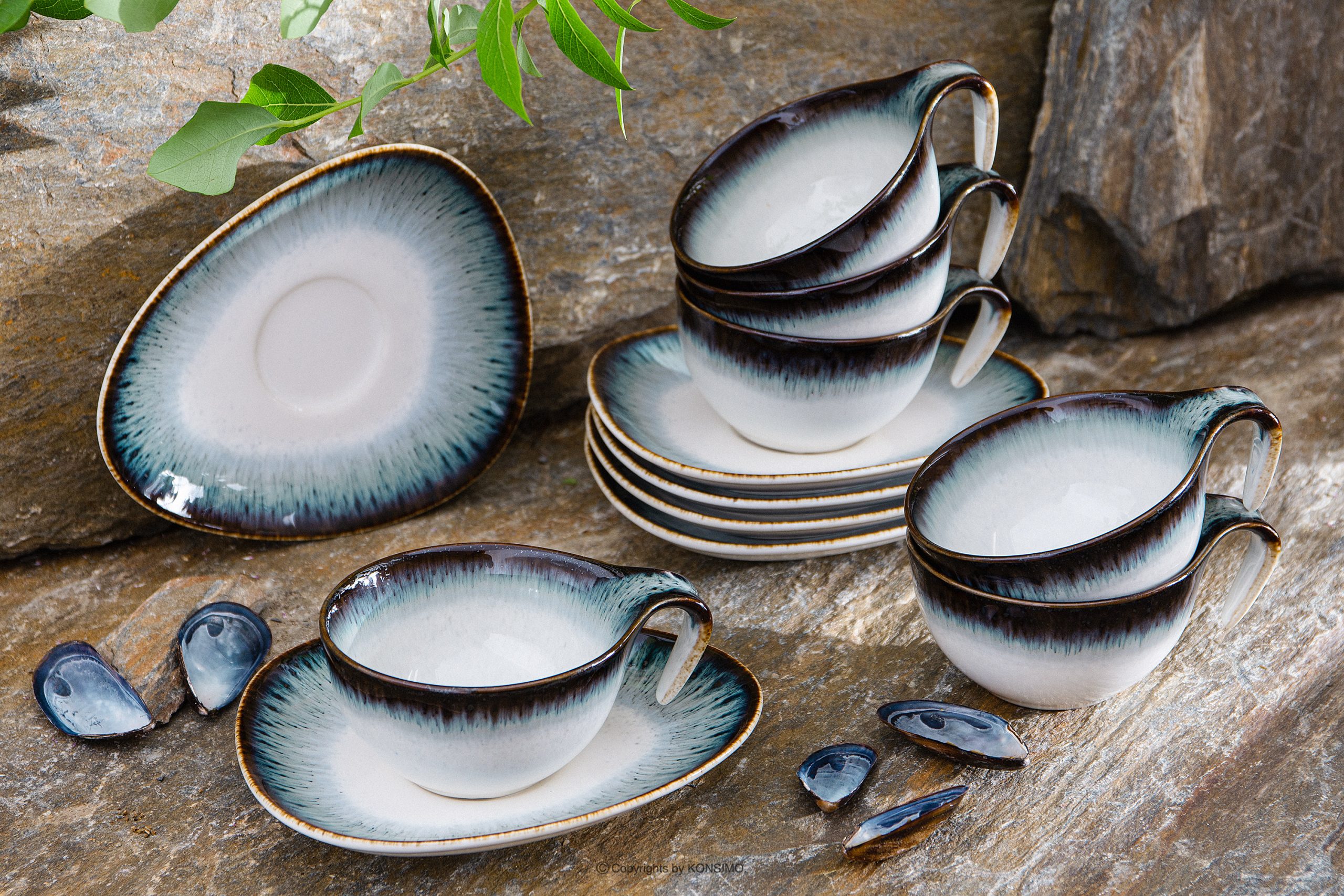 TIME DIM Mehr aus der Kollektion Tasse mit Untertasse 6tlg.- Farbe weiß/braun/blau