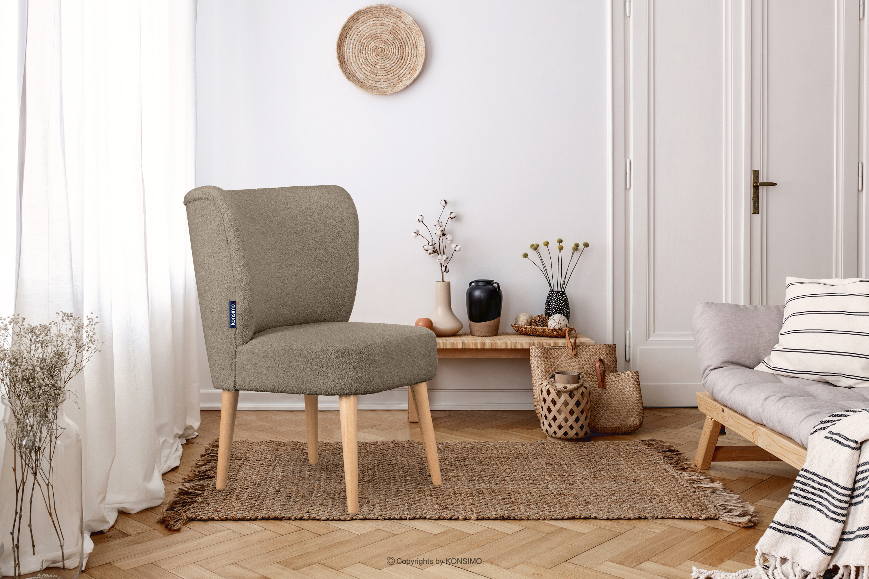 für das Produkt Hochbeiniger Sessel in Stoff dunkelbeige Bouclé