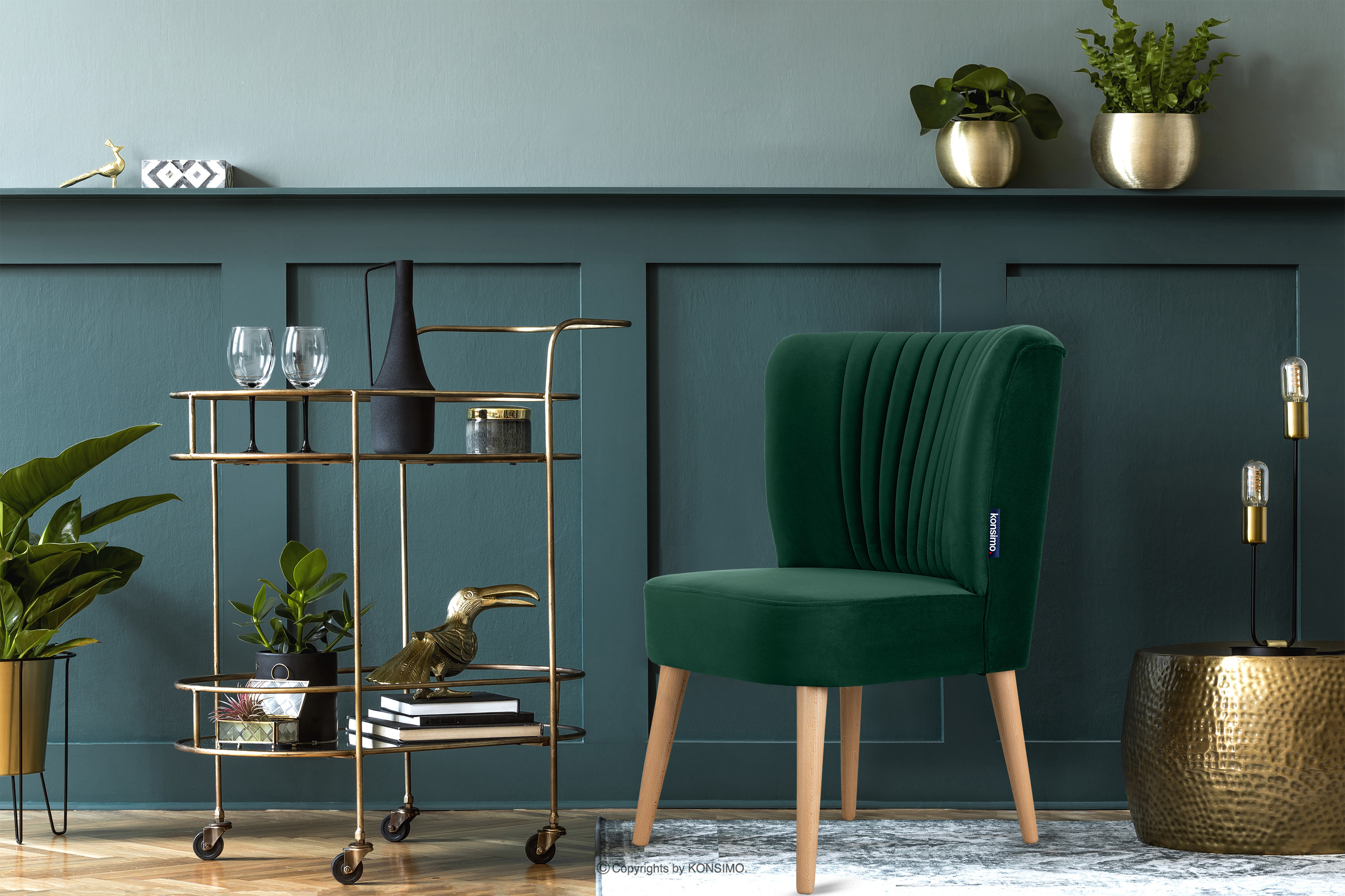 für das Produkt Sessel mit hohen Beinen aus dunkelgrünem Samtstoff