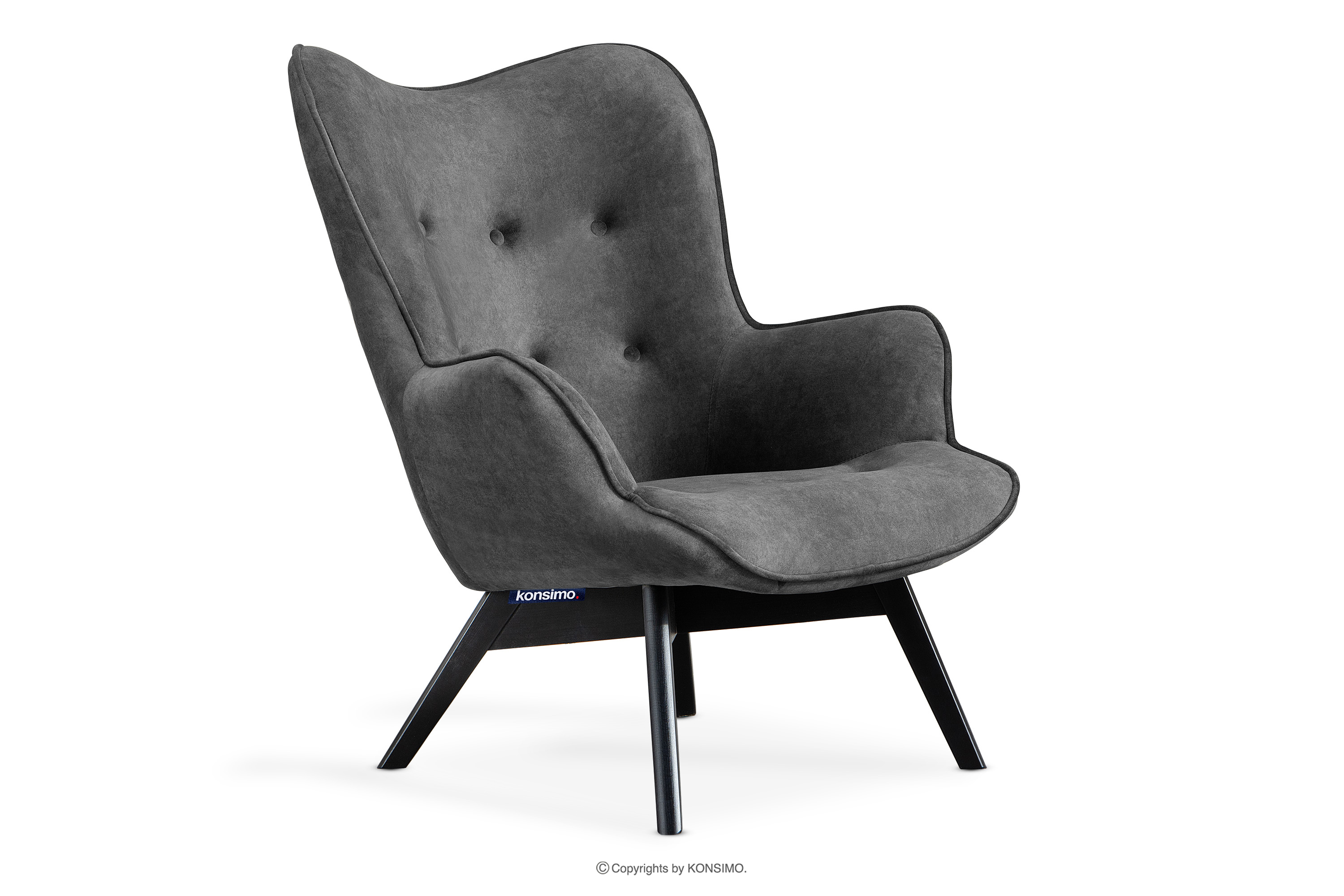 GLORI Lounge-Sessel mit gestepptem Velours dunkelgrau