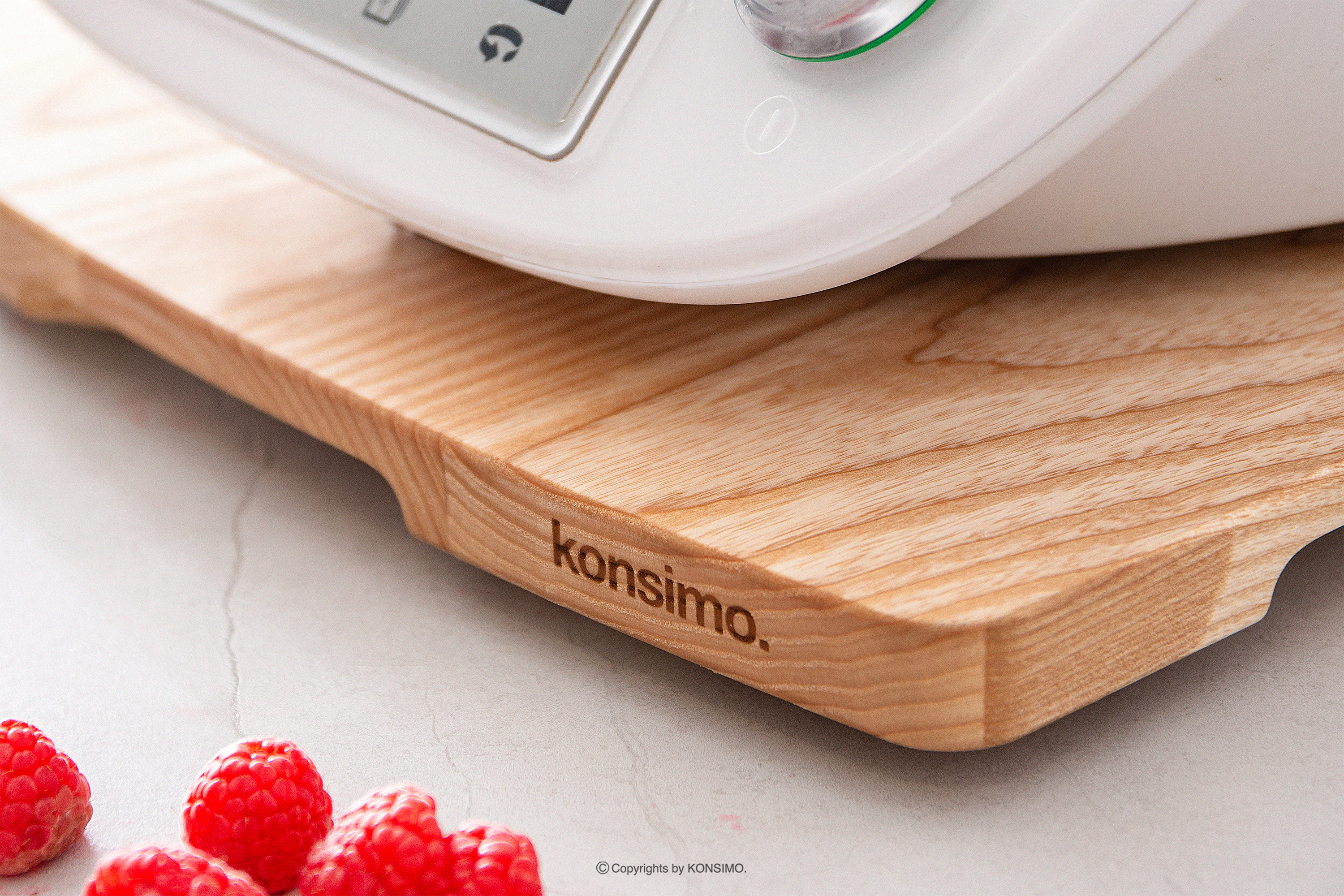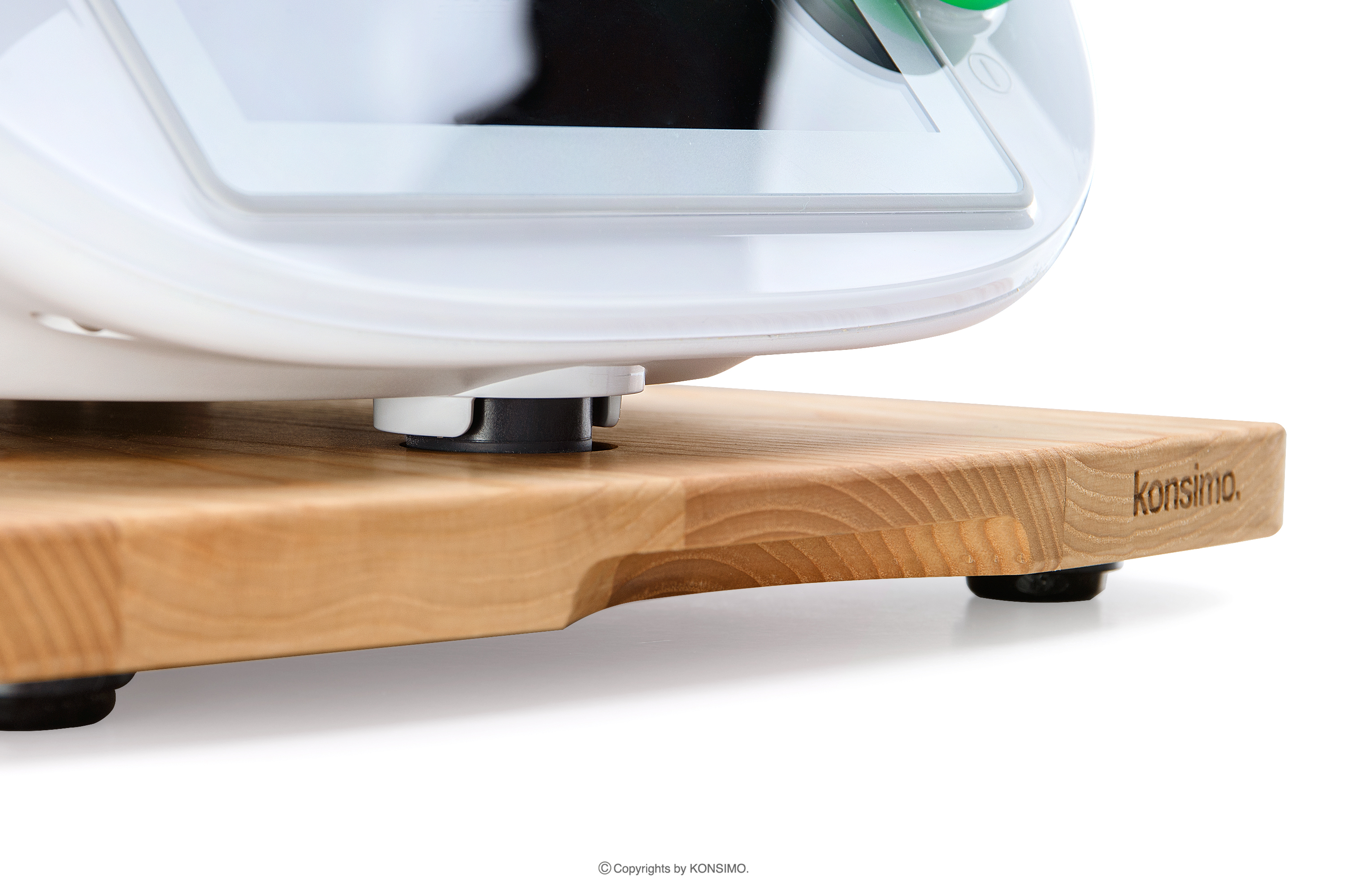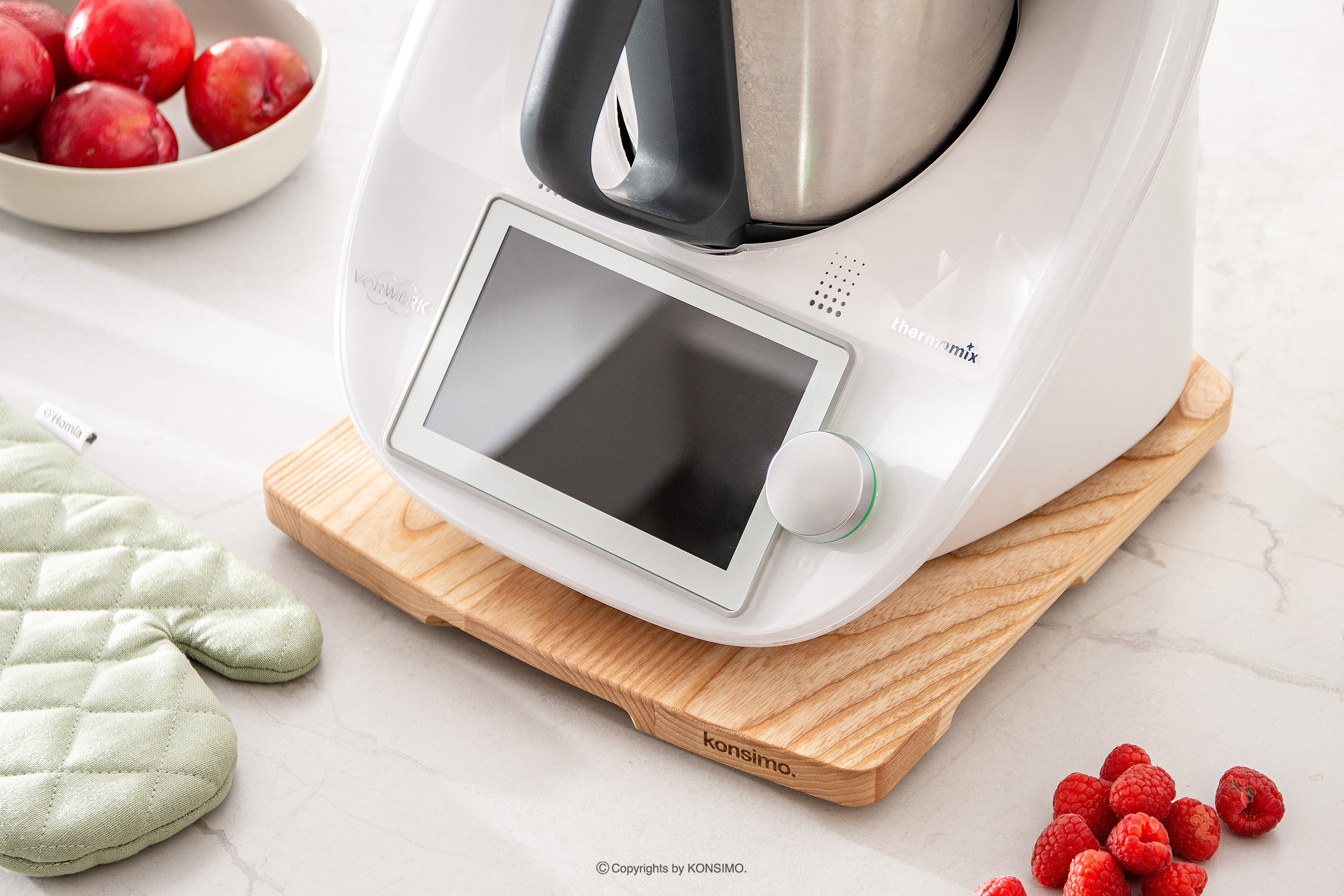 Das Thermomix-Brett aus geölter Esche wurde speziell für die stabile Platzierung des Geräts entwickelt. Durch speziell geformte Vertiefungen und Gummifüße schützt das Brett effektiv den Gewichtssensor, der sich in den Gerätefüßen befindet, vor Beschädigungen. Dies gewährleistet eine sichere und störungsfreie Verwendung des Thermomix. COQUERE hat eine ergonomische Form und eingefräste Griffe an den Seiten und vorne, um ein einfaches Tragen und Verschieben zu ermöglichen.