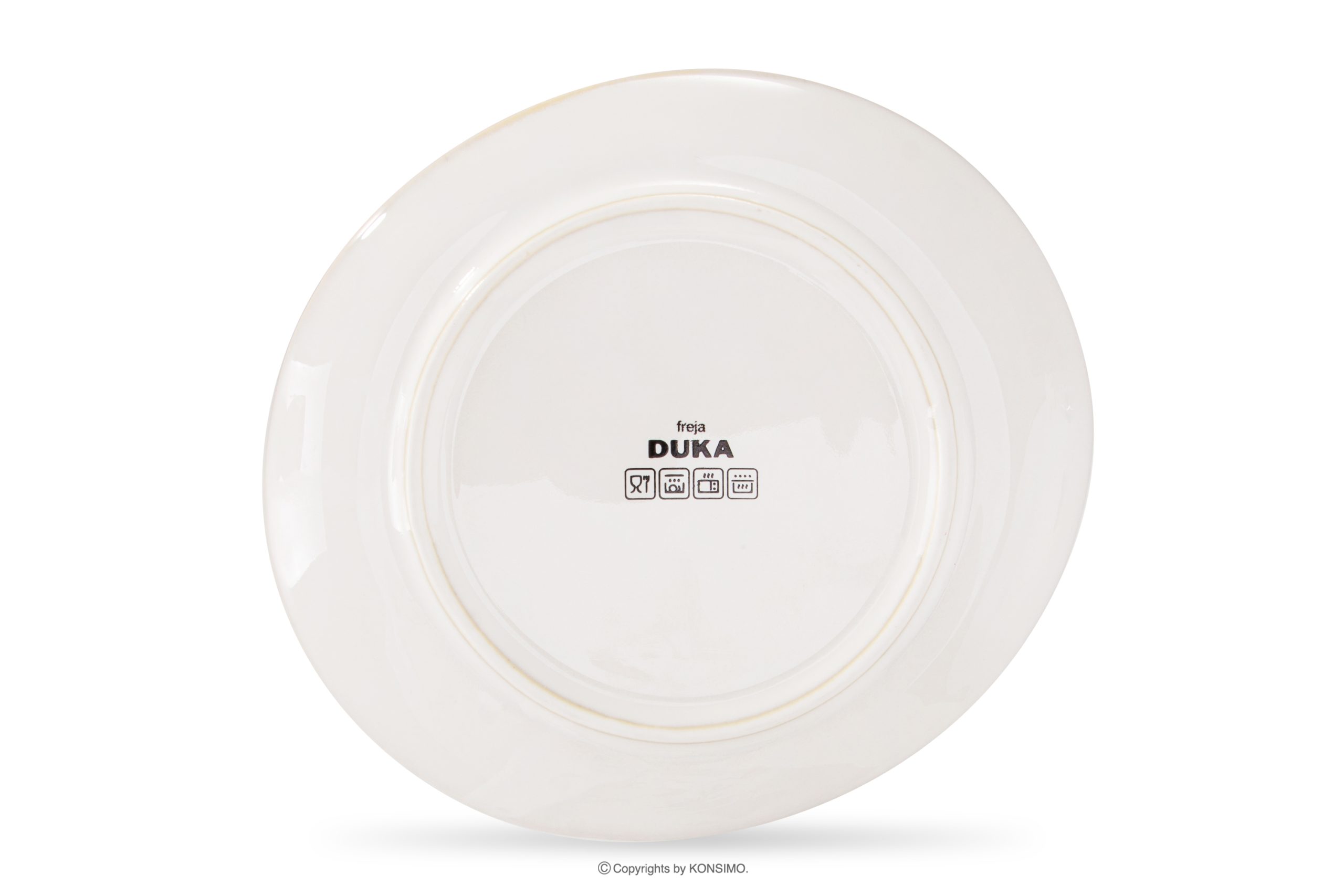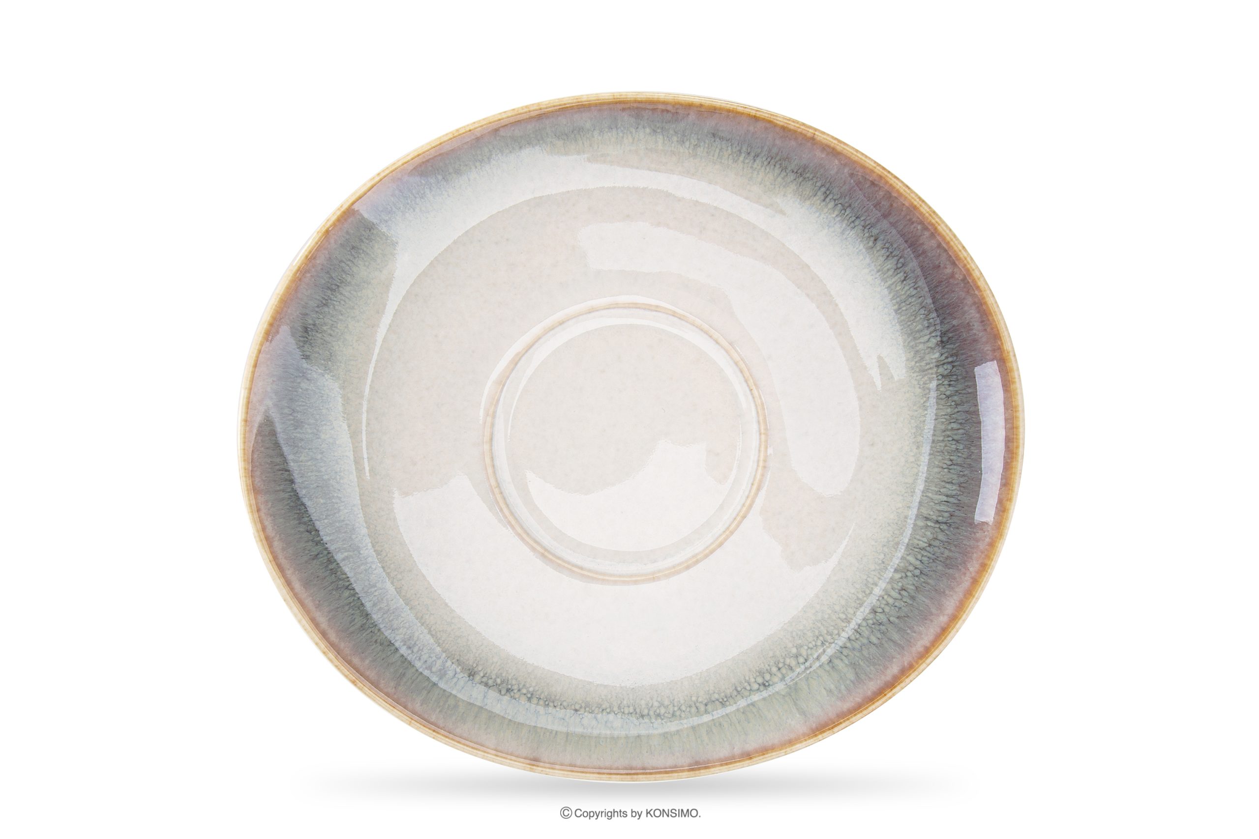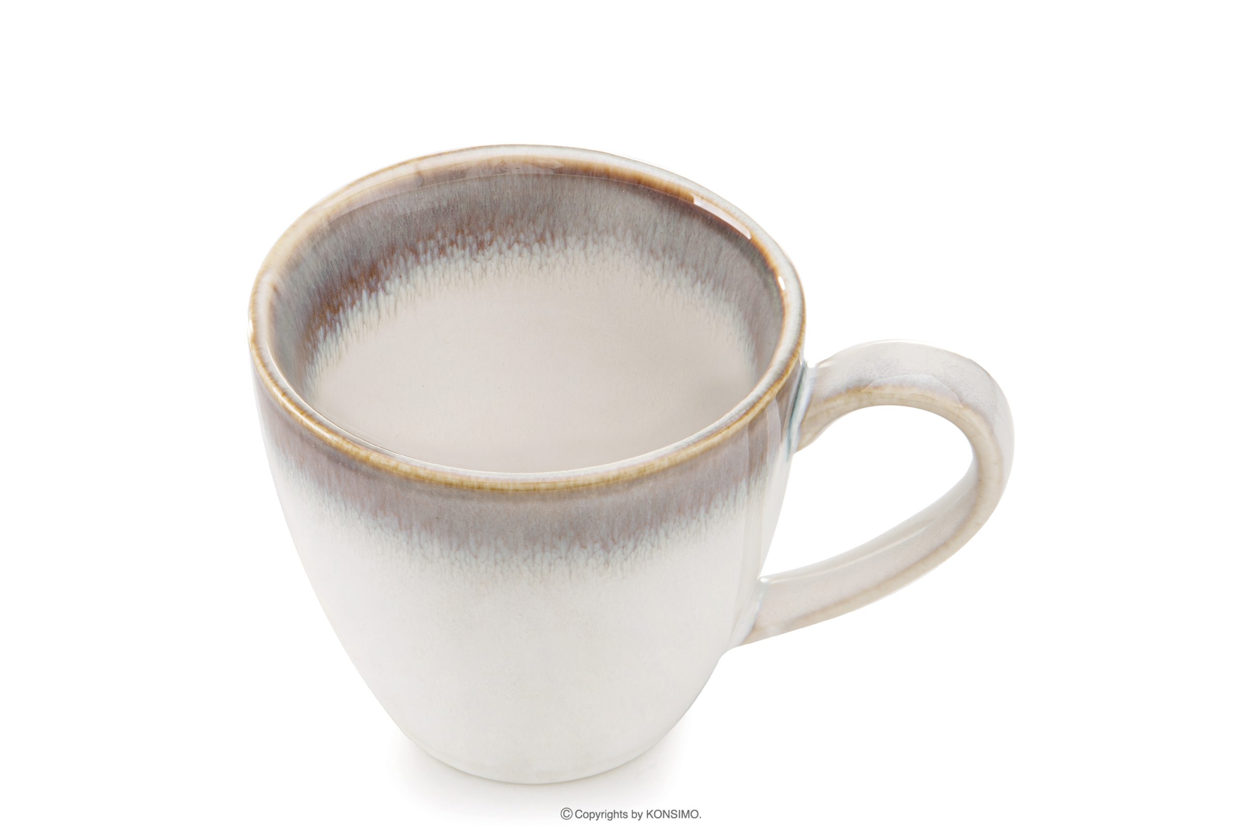 Die Tasse mit Untertasse aus der Kollektion FREJA ist ein echter Ausdruck des skandinavischen Stils. Das Geschirr ist aus feinem Porzellan gefertigt und besticht nicht nur durch sein ungewöhnliches Muster, sondern auch durch sein einzigartiges Design, das perfekt in ein modernes Interieur passt. Dank der reaktiven Glasurtechnik ist jedes Stück ein Unikat.