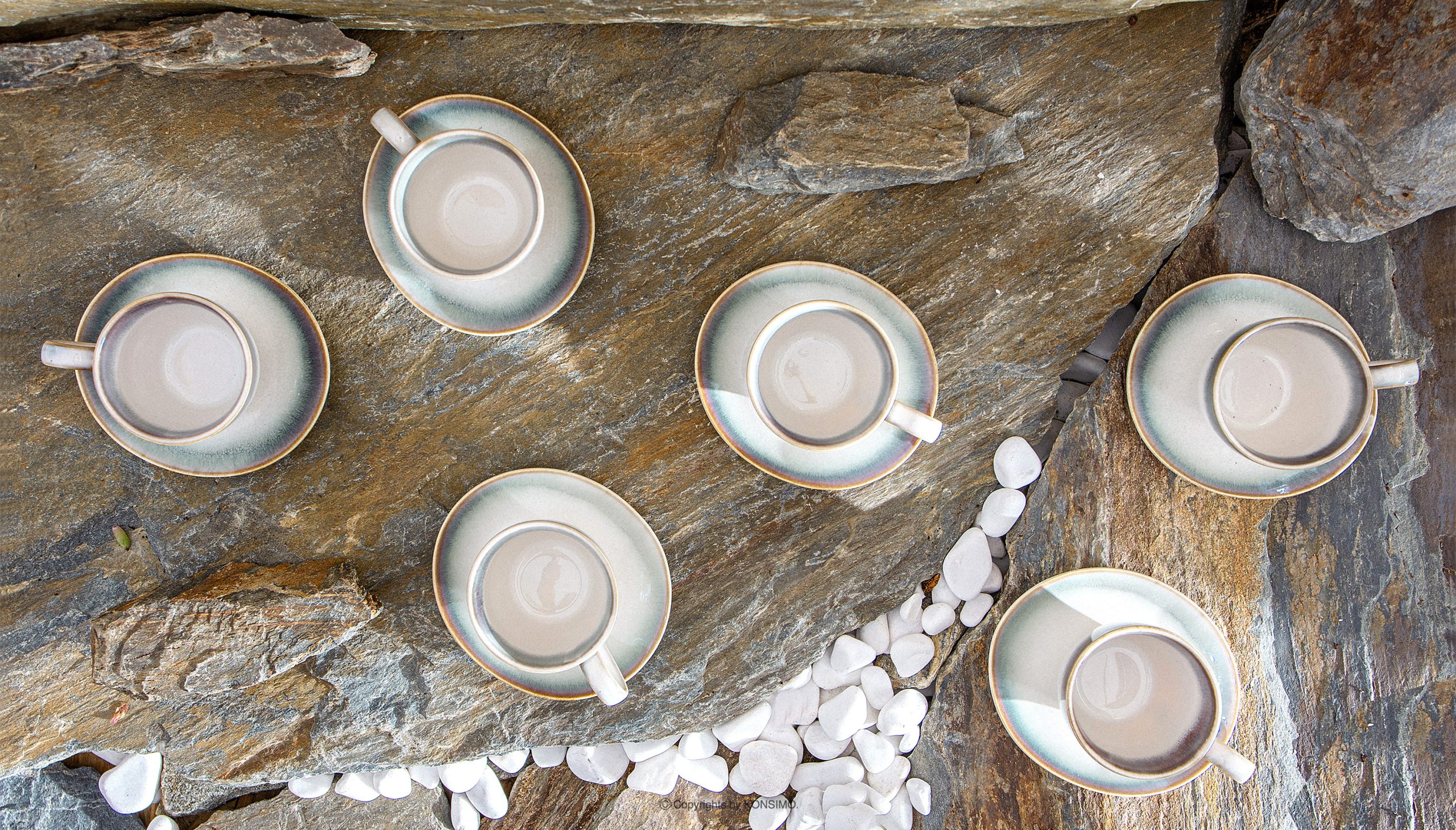 Dadurch unterscheiden sich die Stücke der Kollektion voneinander und schaffen eine faszinierende Vielfalt auf dem Tisch. Diese Einzigartigkeit ist ein fester Bestandteil der Kollektion.
