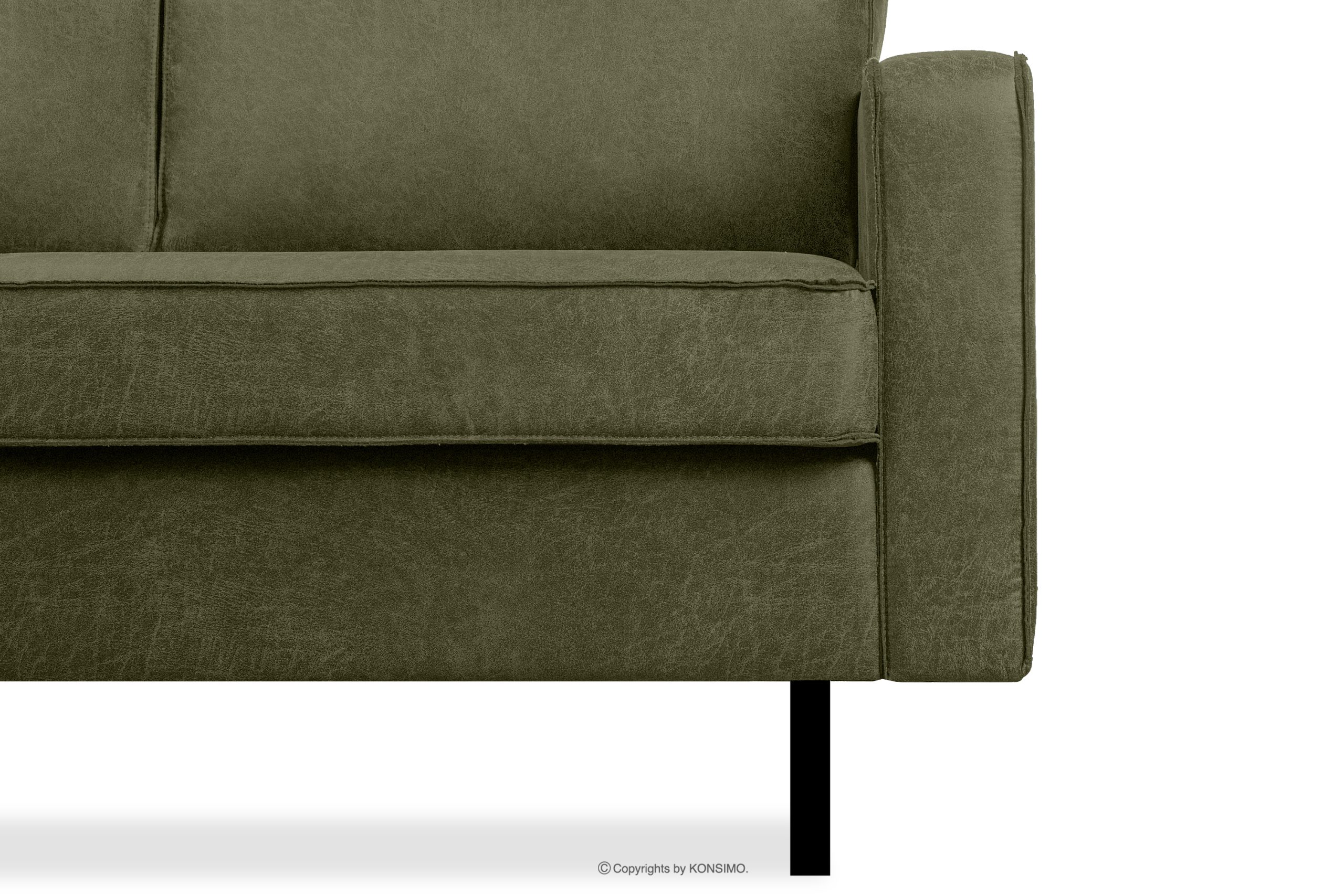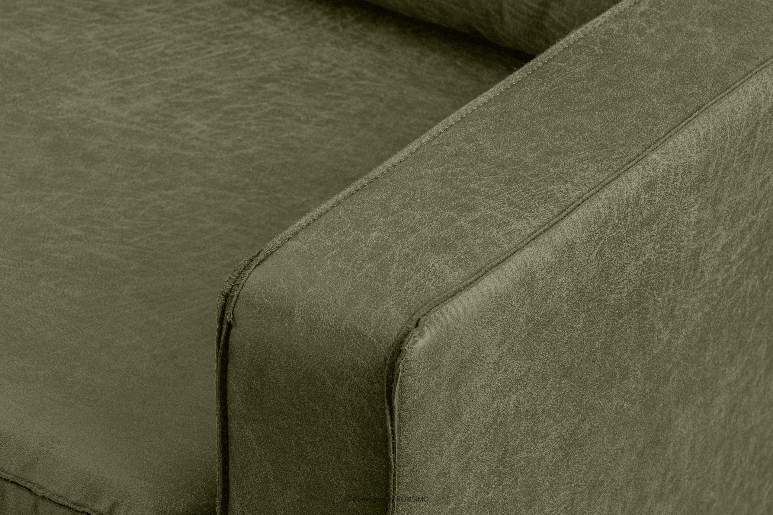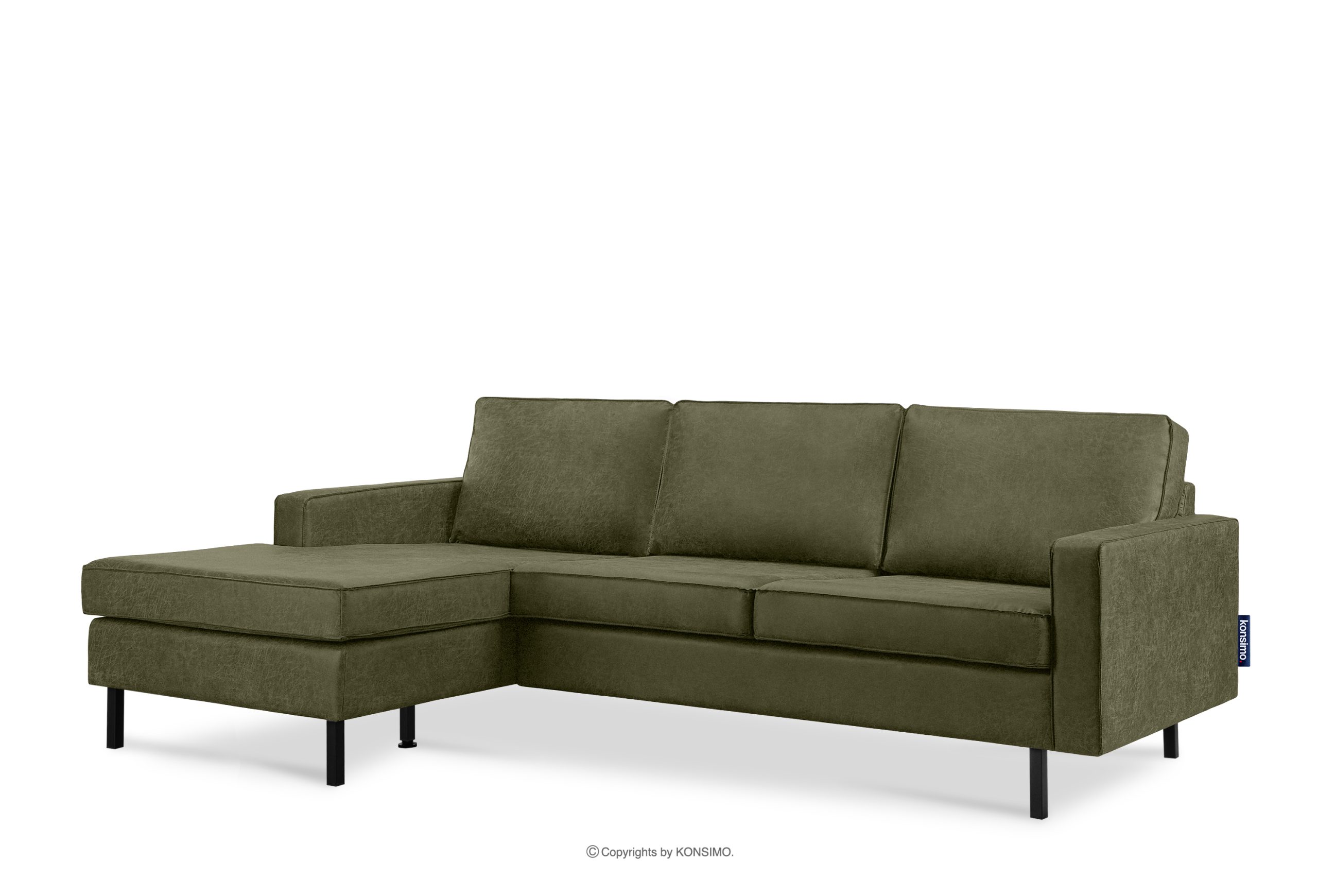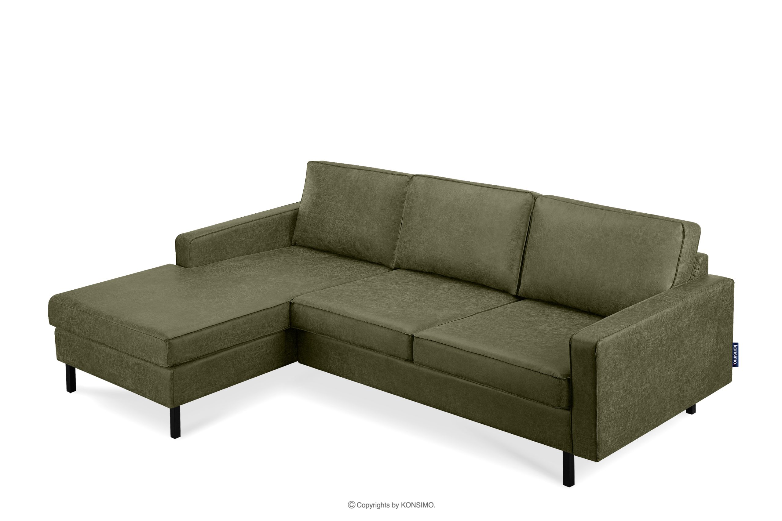 Das linke Ecksofa im Loft-Stil mit Ottomane grün ist eine ideale Lösung für große und kleine Räume. Das einzigartige Design und die hochwertige Verarbeitung machen es zu einem Möbelstück, das nicht nur ästhetisch erfreut, sondern auch Komfort und Bequemlichkeit bietet. Das Ecksofa verfügt außerdem über schwarze Metallfüße, die perfekt zum Loft- und Vintage-Stil passen.