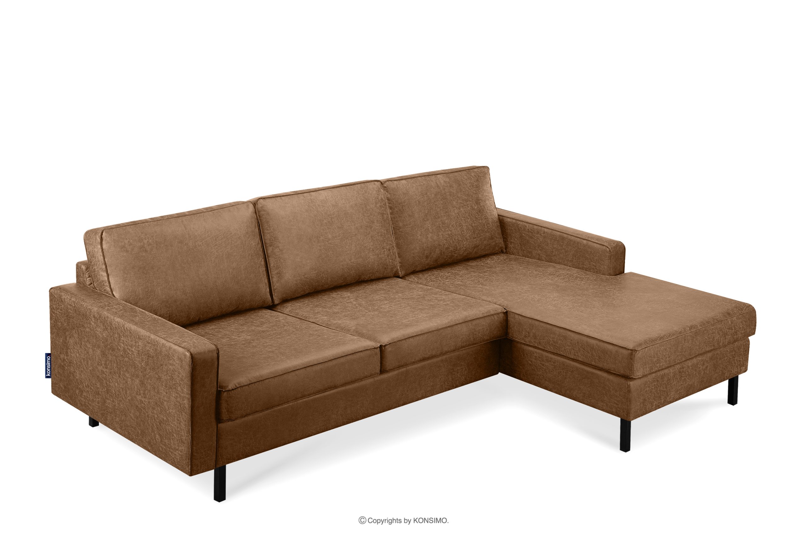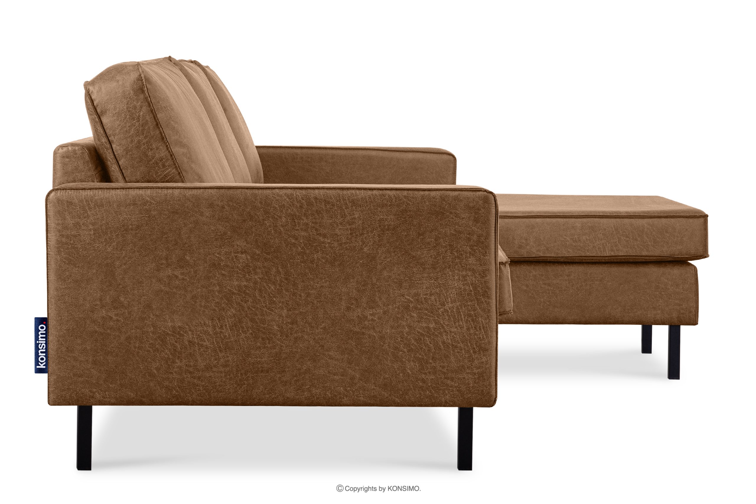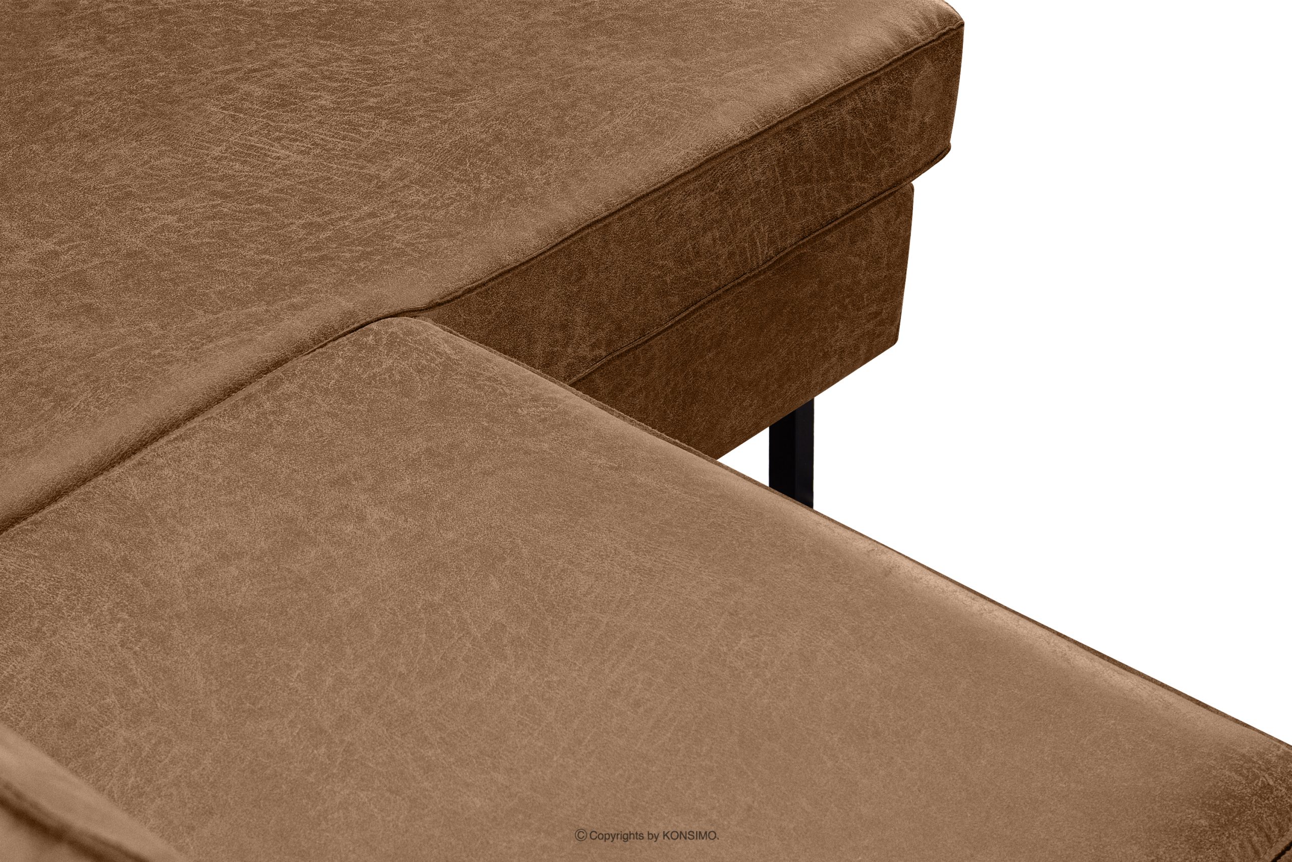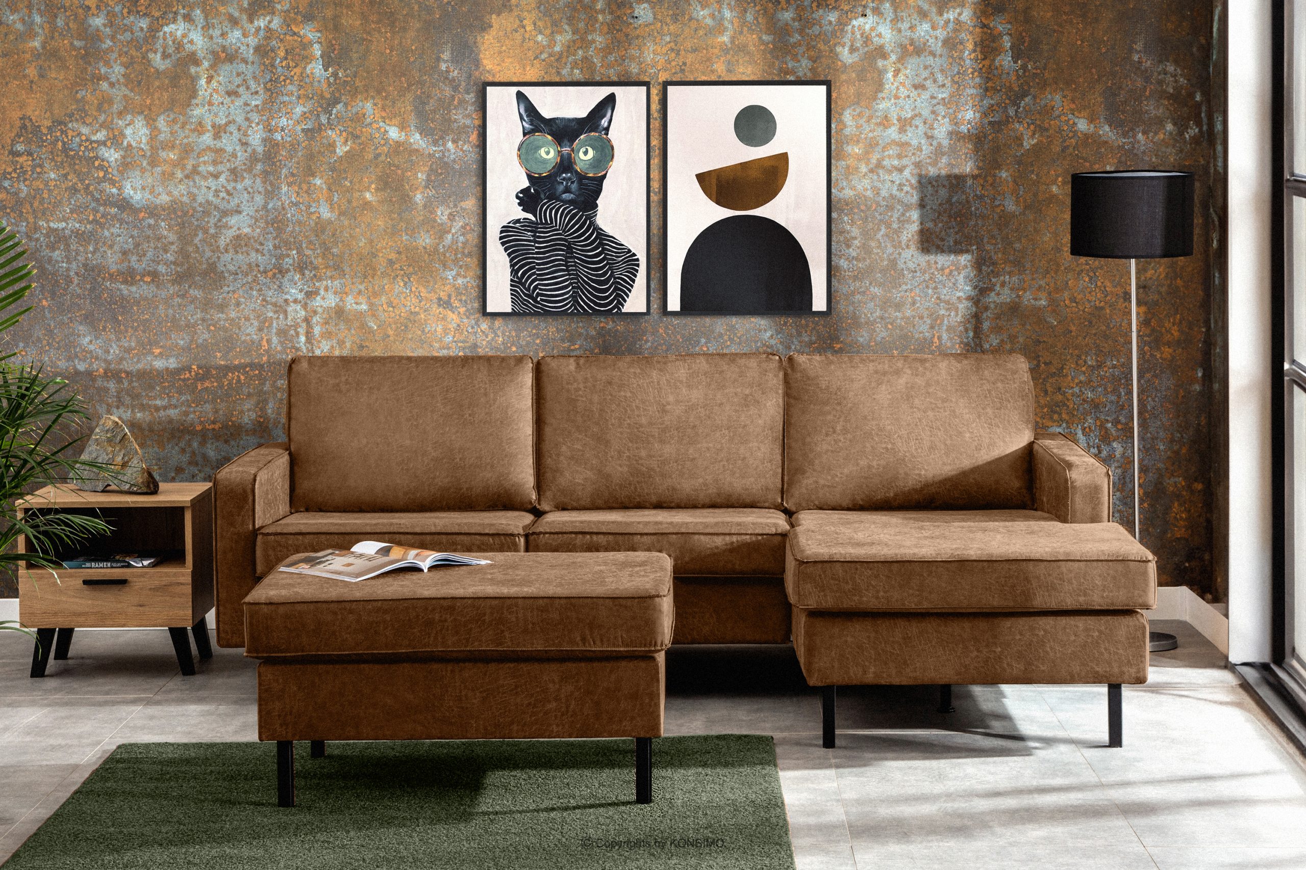 Das rechte Ecksofa im Loft-Stil mit Ottomane in Braun ist eine ideale Lösung für große und kleine Räume. Sein einzigartiges Design und die hochwertige Verarbeitung machen es zu einem Möbelstück, das nicht nur ästhetisch ansprechend ist, sondern auch Komfort und Bequemlichkeit bietet. Das Ecksofa verfügt außerdem über schwarze Metallfüße, die perfekt zum Loft- und Vintage-Stil passen.