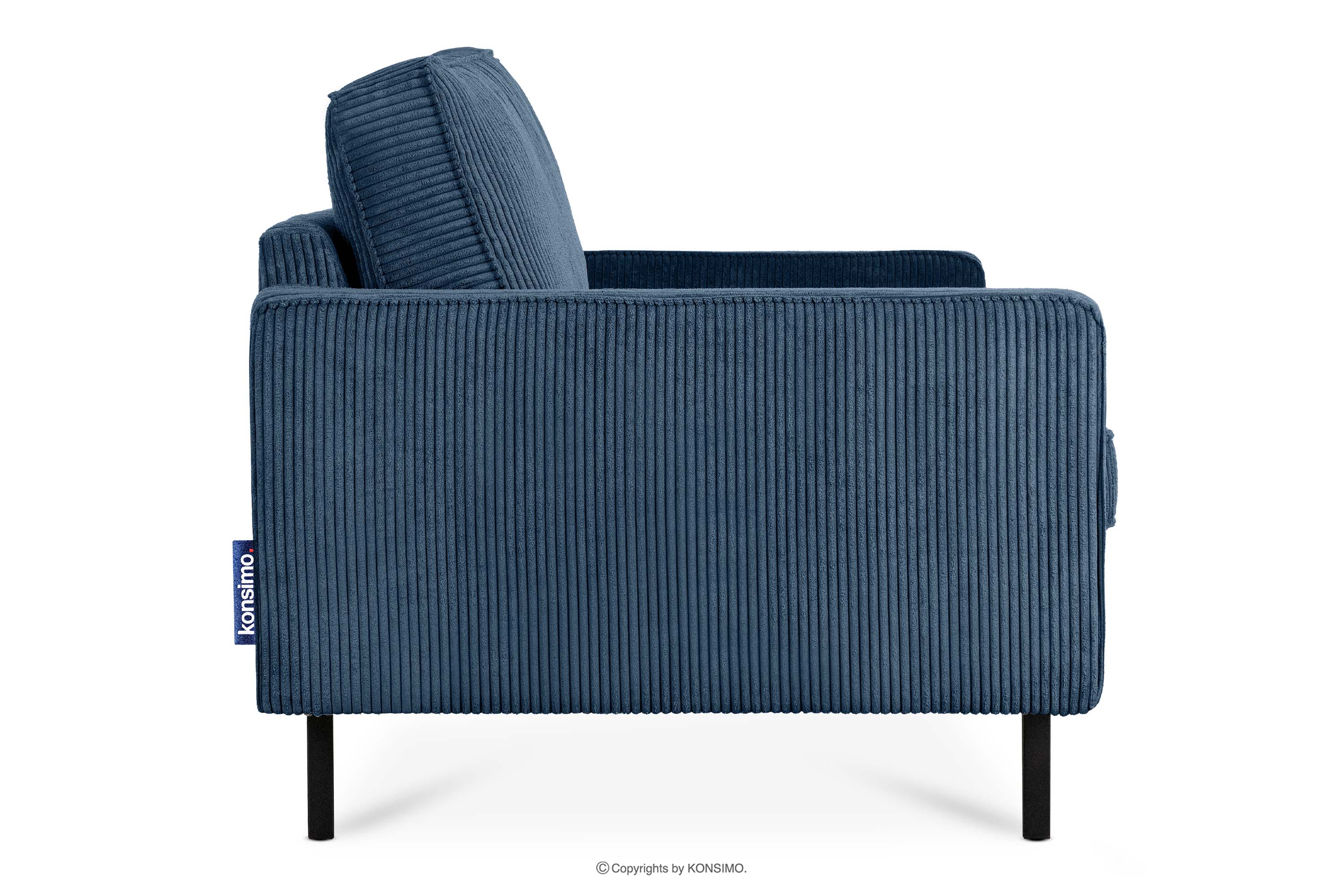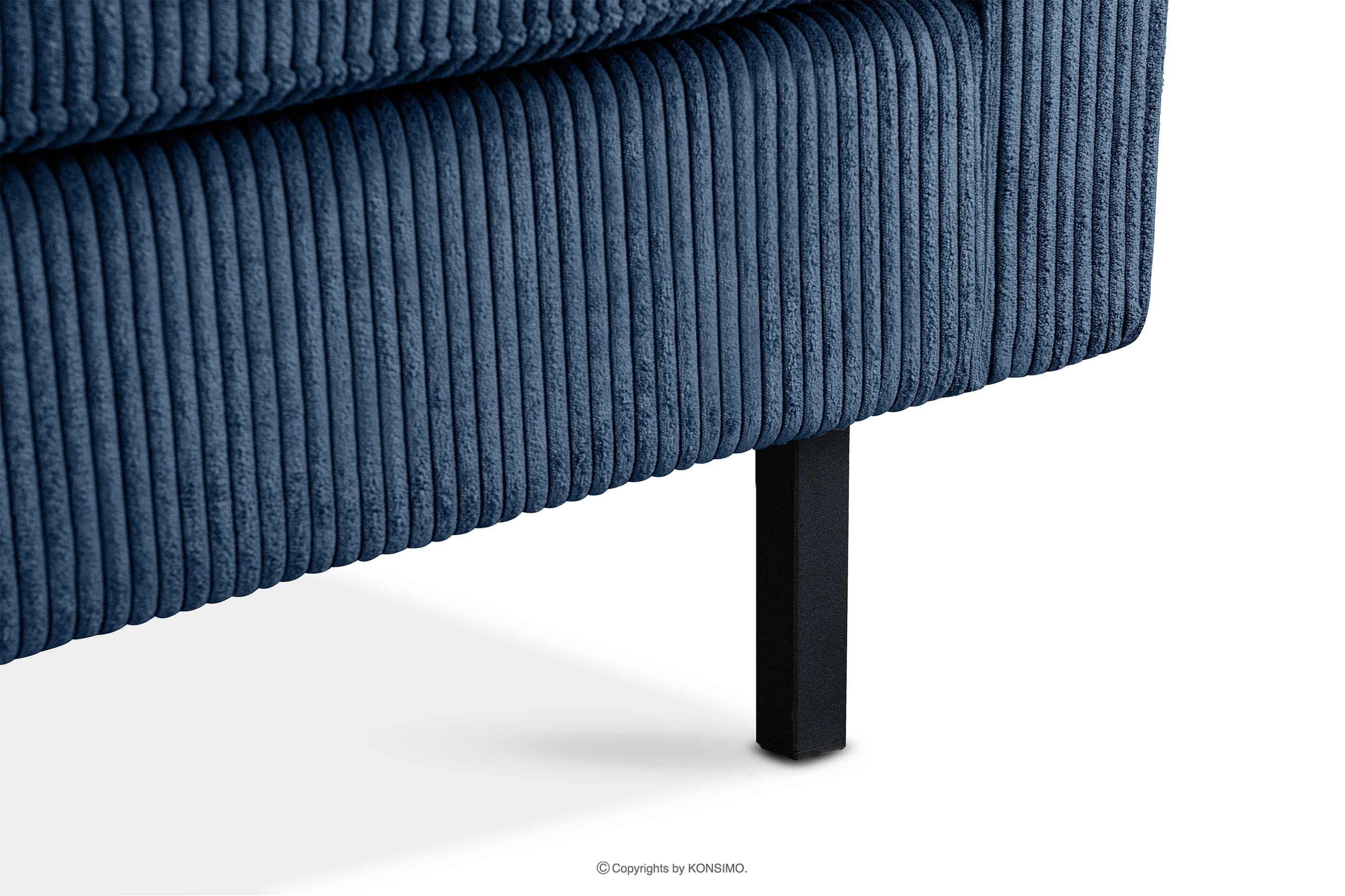 Das Loft-Sofa Cord 2-Sitzer navy blue ist ideal für große und kleine Räume. Sein einzigartiges Design und die hochwertige Verarbeitung machen es zu einem Möbelstück, das nicht nur ästhetisch ansprechend ist, sondern auch Komfort und Bequemlichkeit bietet. Das Sofa verfügt außerdem über schwarze Metallfüße, die perfekt zum Loft- und Vintage-Stil passen.