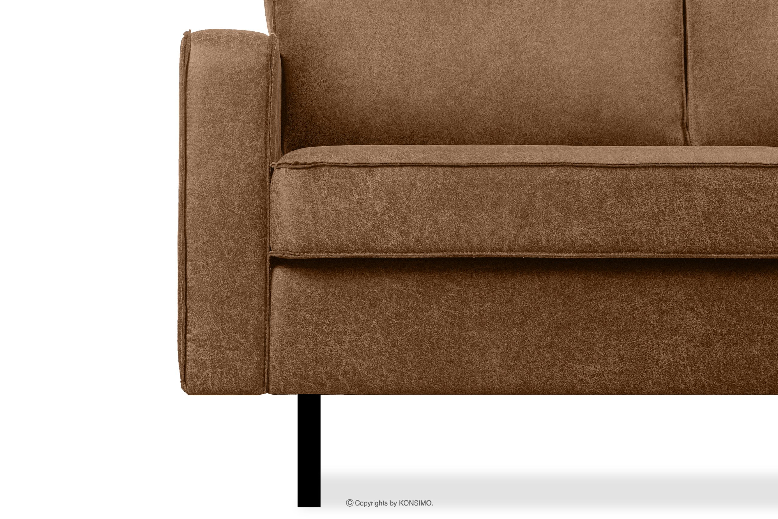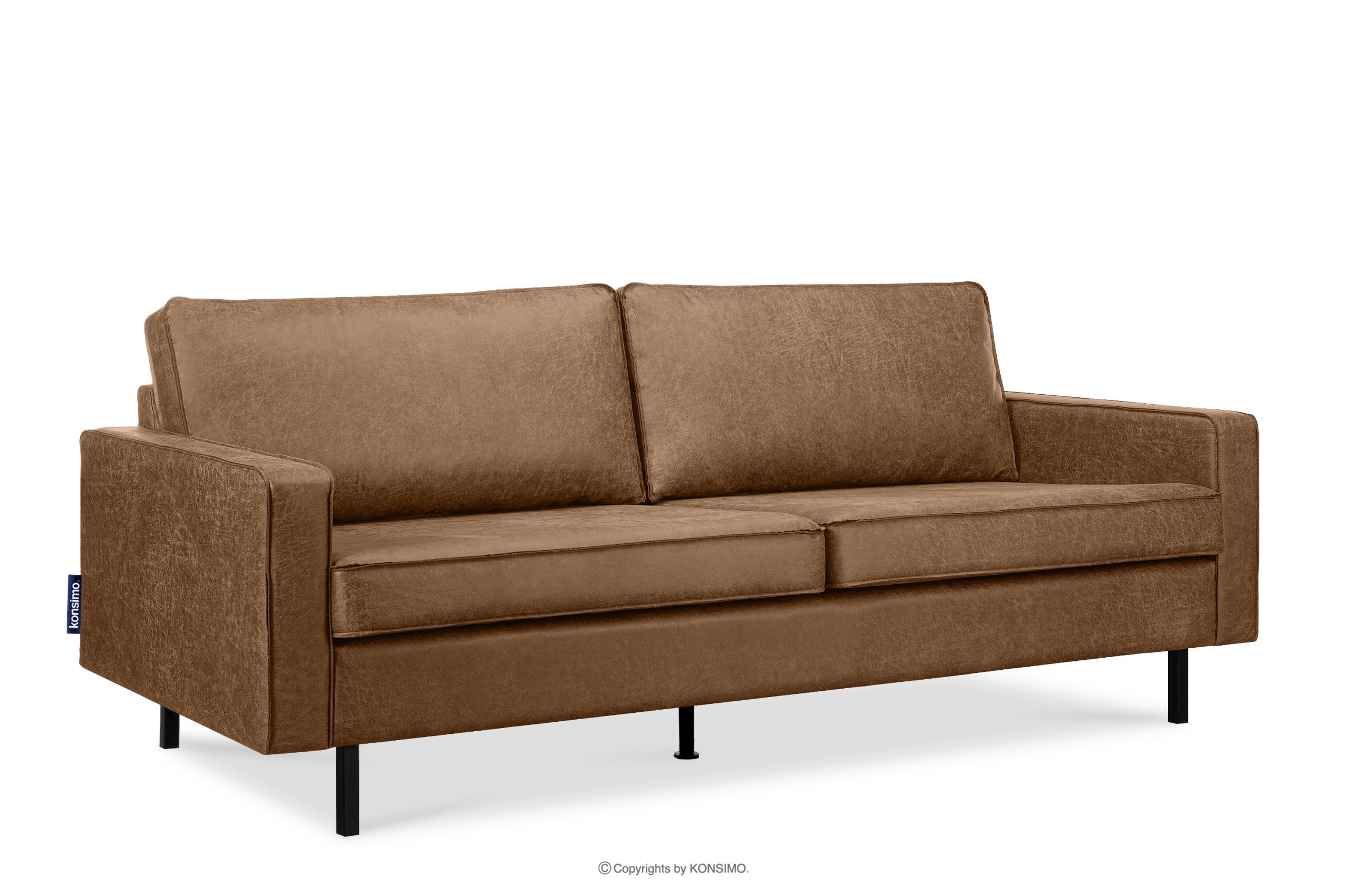 Das Loft-Sofa 3-Sitzer braun ist sowohl für große als auch für kleine Räume ideal. Sein einzigartiges Design und die hochwertige Verarbeitung machen es zu einem Möbelstück, das nicht nur ästhetisch beeindruckend ist, sondern auch Komfort und Bequemlichkeit bietet. Das Sofa verfügt außerdem über schwarze Metallfüße, die perfekt zum Loft- und Vintage-Stil passen.
