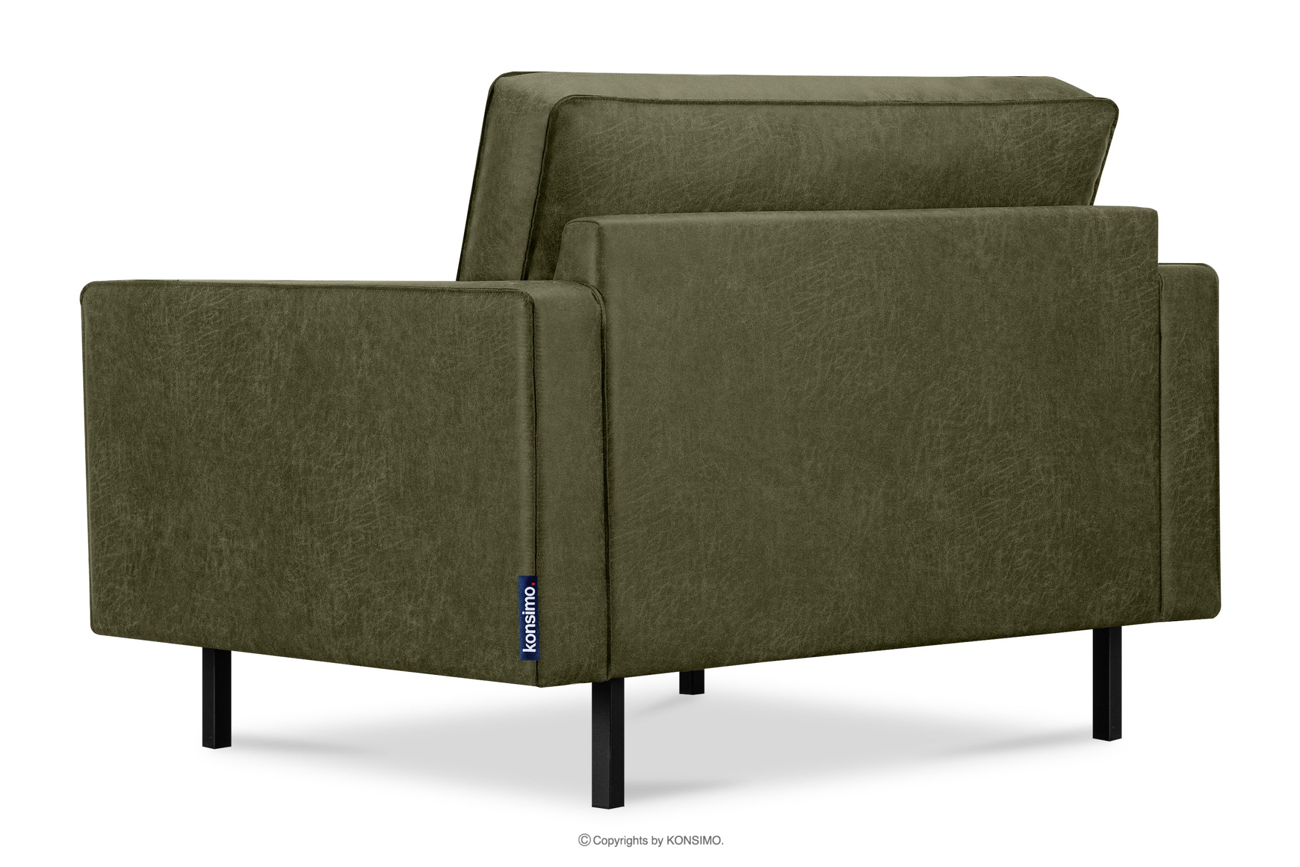 Die schwarzen Metallbeine passen perfekt zur Loft- und Vintage-Ästhetik und verleihen dem Sessel Charakter. Unabhängig von der Größe Ihrer Einrichtung wird dieser Sessel dank seiner Funktionalität, seines Komforts und seines originellen Designs zu einem äußerst wichtigen Element der Einrichtung.