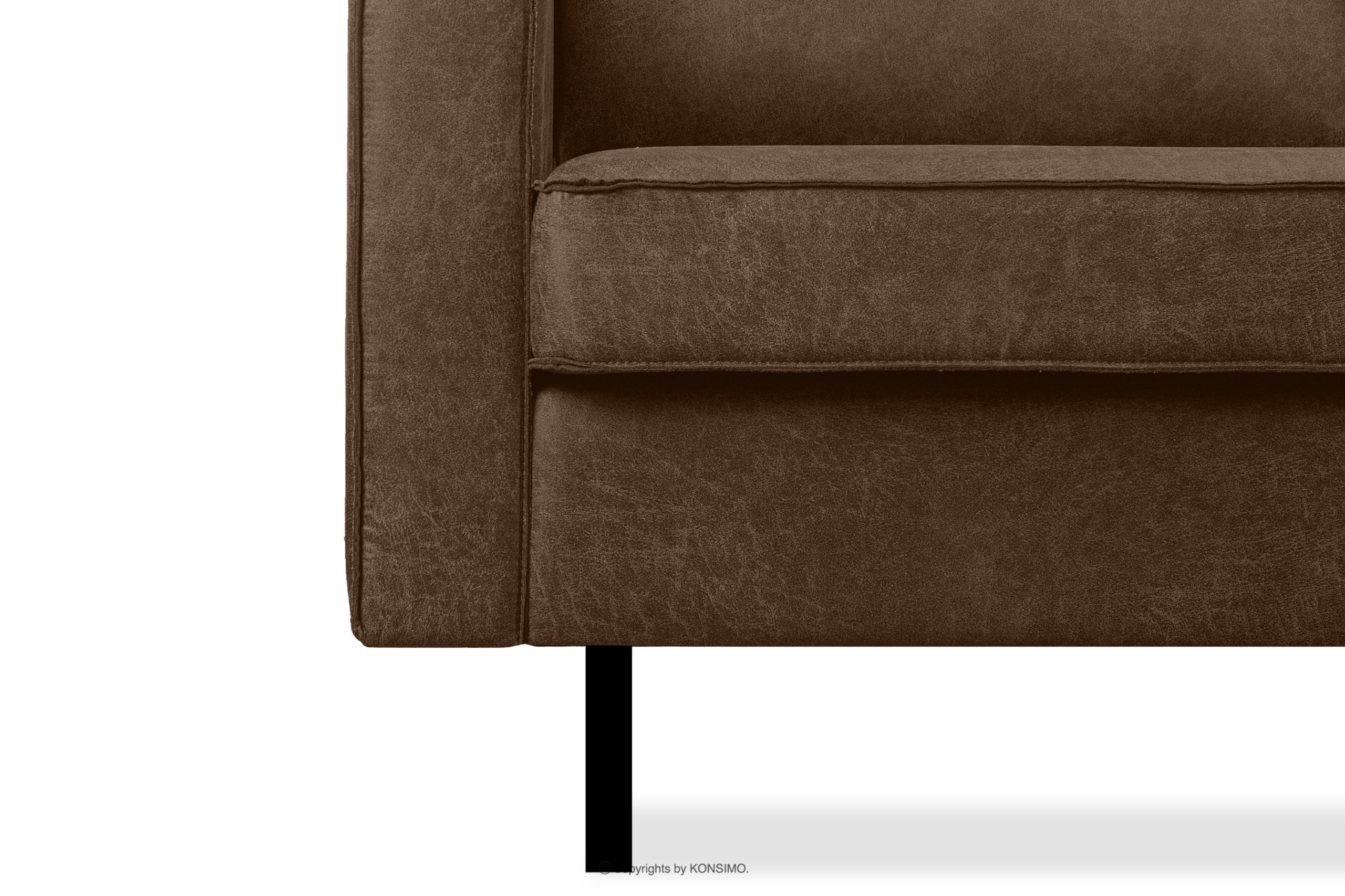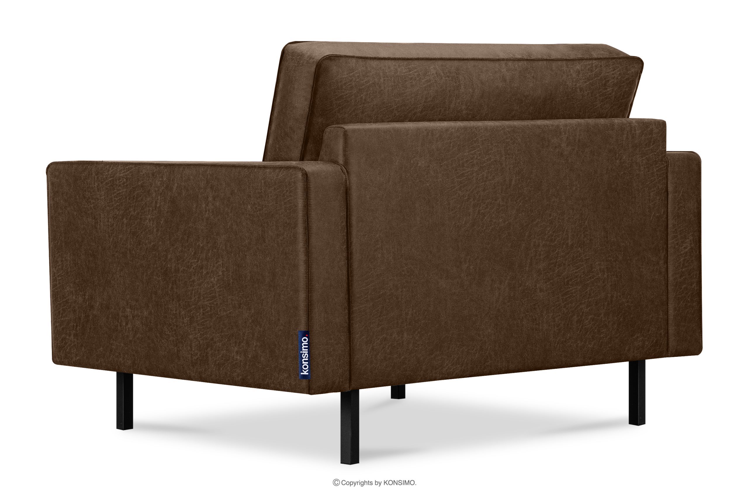 Der große dunkelbraune Loft-Sessel eignet sich sowohl für geräumige Wohnzimmer als auch für kleinere Räume. Er ist breiter als ein Standardsessel, so dass Sie bequem sitzen können. Sein einzigartiges Design und die sorgfältige Verarbeitung machen dieses Möbelstück nicht nur zu einem atemberaubenden Anblick, sondern garantieren auch Komfort und Bequemlichkeit. Die schwarzen Metallbeine passen perfekt zur Loft- und Vintage-Ästhetik und verleihen dem Sessel Charakter.