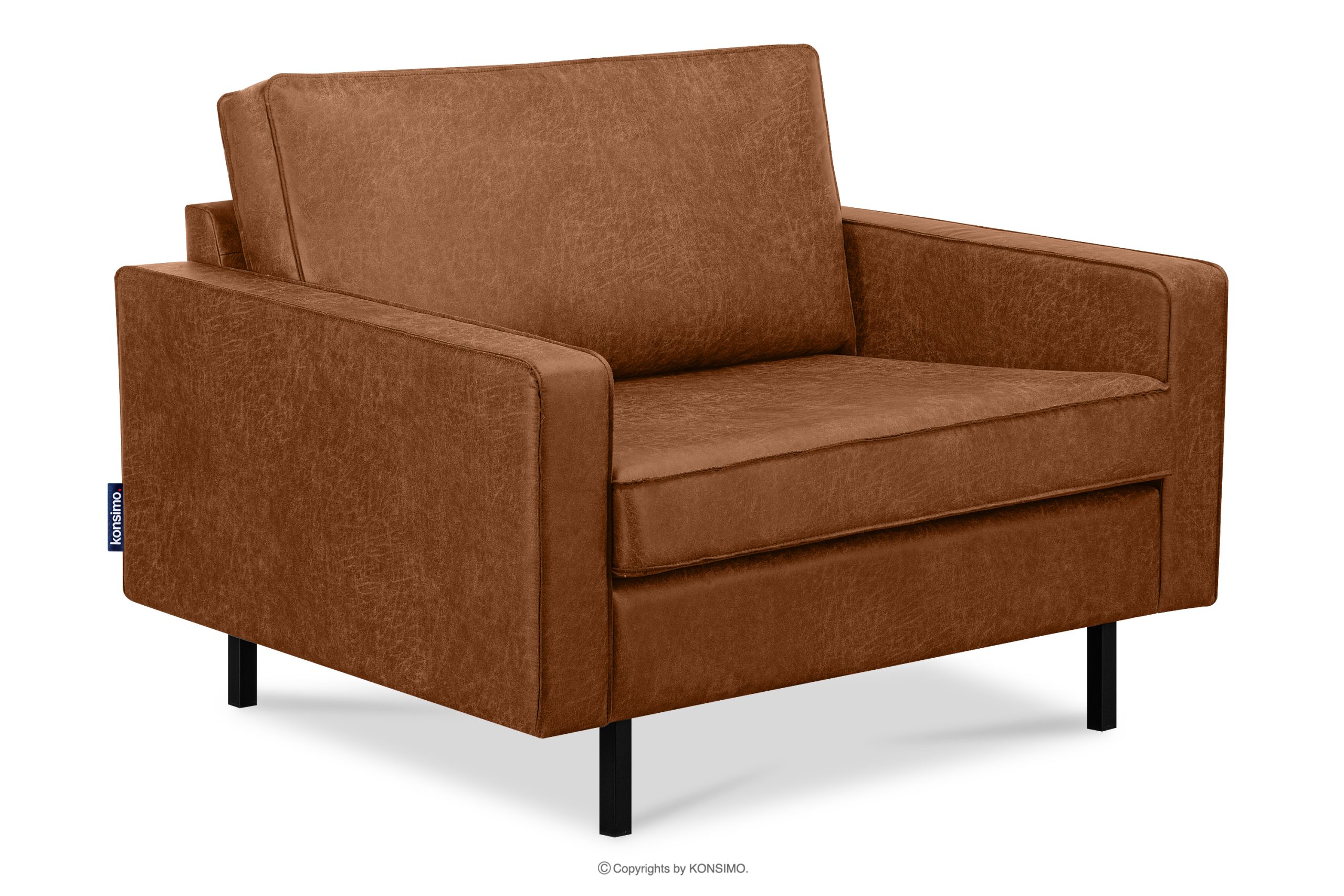 Der große Loft-Sessel ore eignet sich sowohl für geräumige Wohnzimmer als auch für kleinere Räume. Er ist breiter als ein Standard-Sessel, so dass Sie bequem sitzen können. Sein einzigartiges Design und die sorgfältige Verarbeitung machen dieses Möbelstück nicht nur atemberaubend in seinem Aussehen, sondern garantieren auch Komfort und Bequemlichkeit. Die schwarzen Metallbeine passen perfekt zur Loft- und Vintage-Ästhetik und verleihen dem Sessel Charakter.