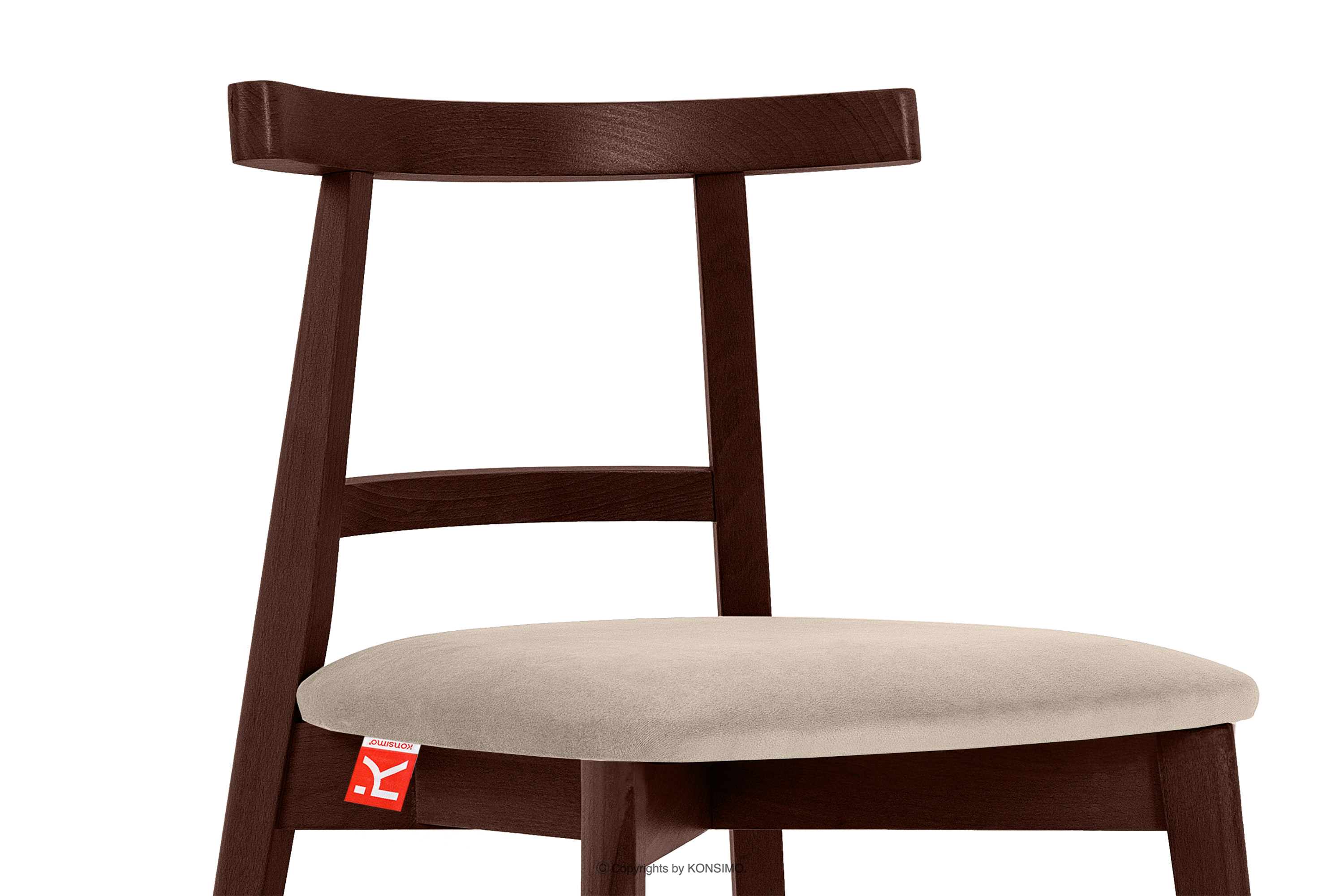 Die Sitzfläche des Stuhls ist mit weichem Velours bezogen, was ihm nicht nur Weichheit, sondern auch ein luxuriöses Aussehen verleiht. Außerdem ist er sehr pflegeleicht und sehr widerstandsfähig gegen Pilling.