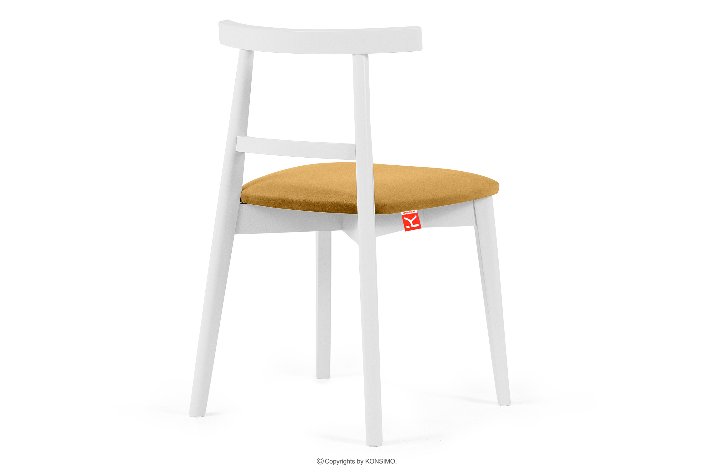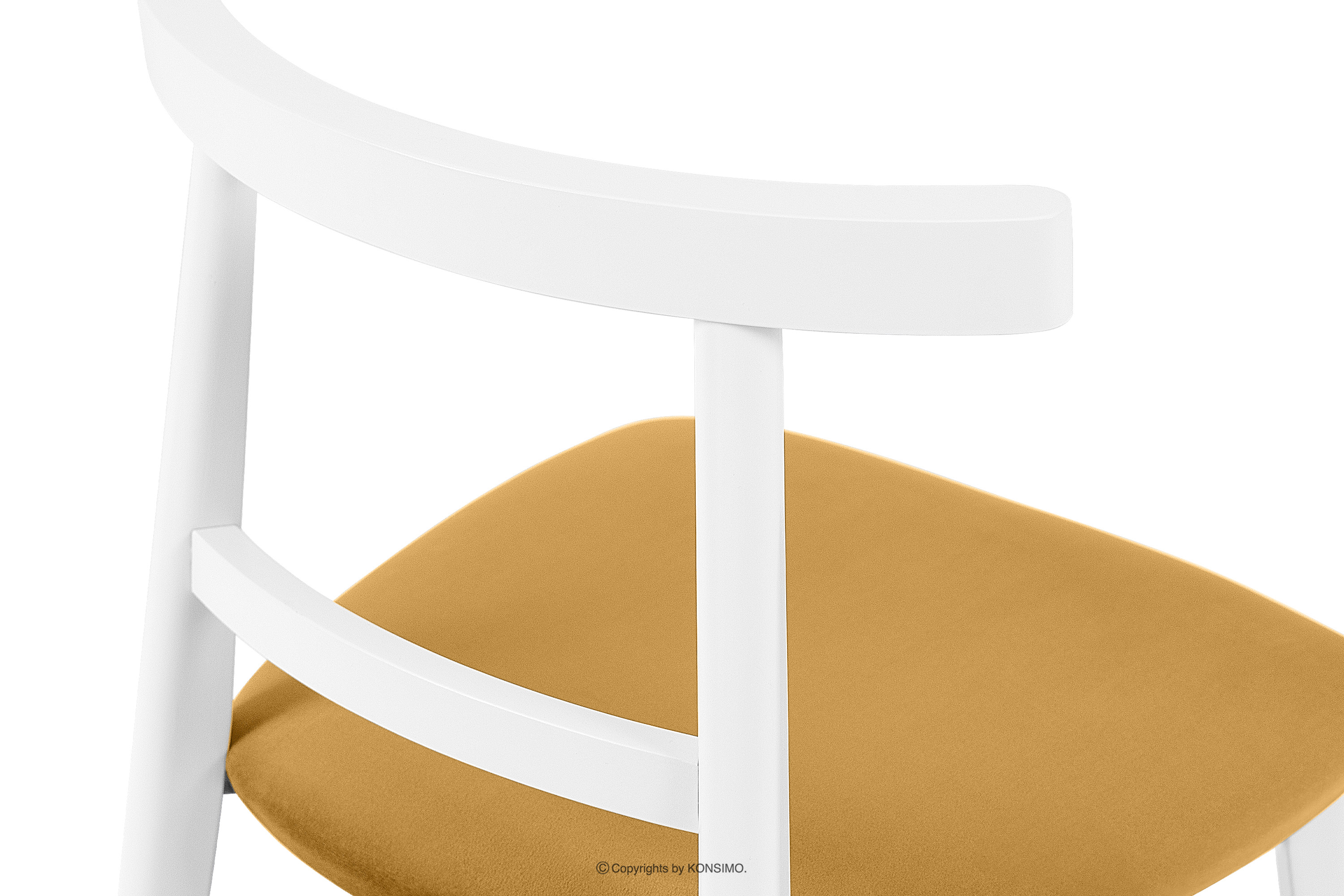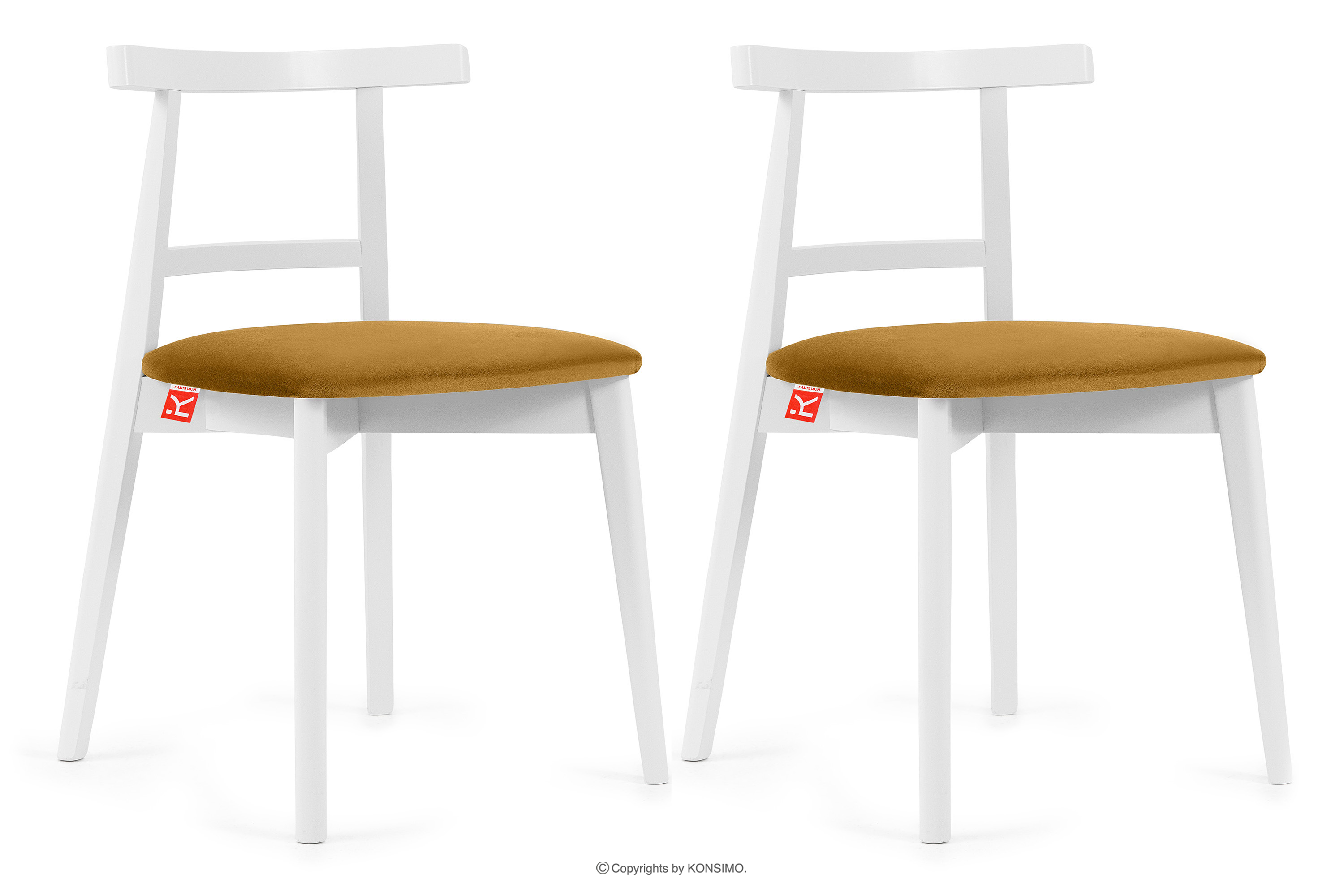 Der weiße Vintage Yellow Velours 2pc Stuhl strahlt nicht nur einen einzigartigen Stil aus, sondern erfüllt auch die höchsten Ansprüche an Komfort und Funktionalität. Die Stuhlbeine sind aus massivem Buchenholz gefertigt, was zu seiner Stärke und seinem subtilen Charme beiträgt. Das Holz fügt sich perfekt in den klassischen Vintage-Stil ein und macht das Produkt zu einem praktischen Möbelstück.