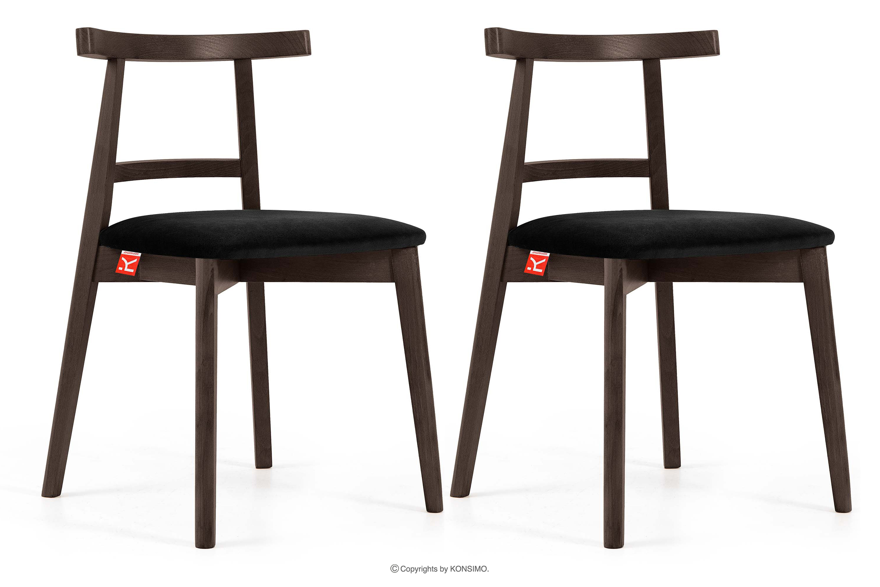LILIO Vintage-Stuhl aus Velours-Stoff/dunkelem Nussbaumholz (2 Stk.) schwarz