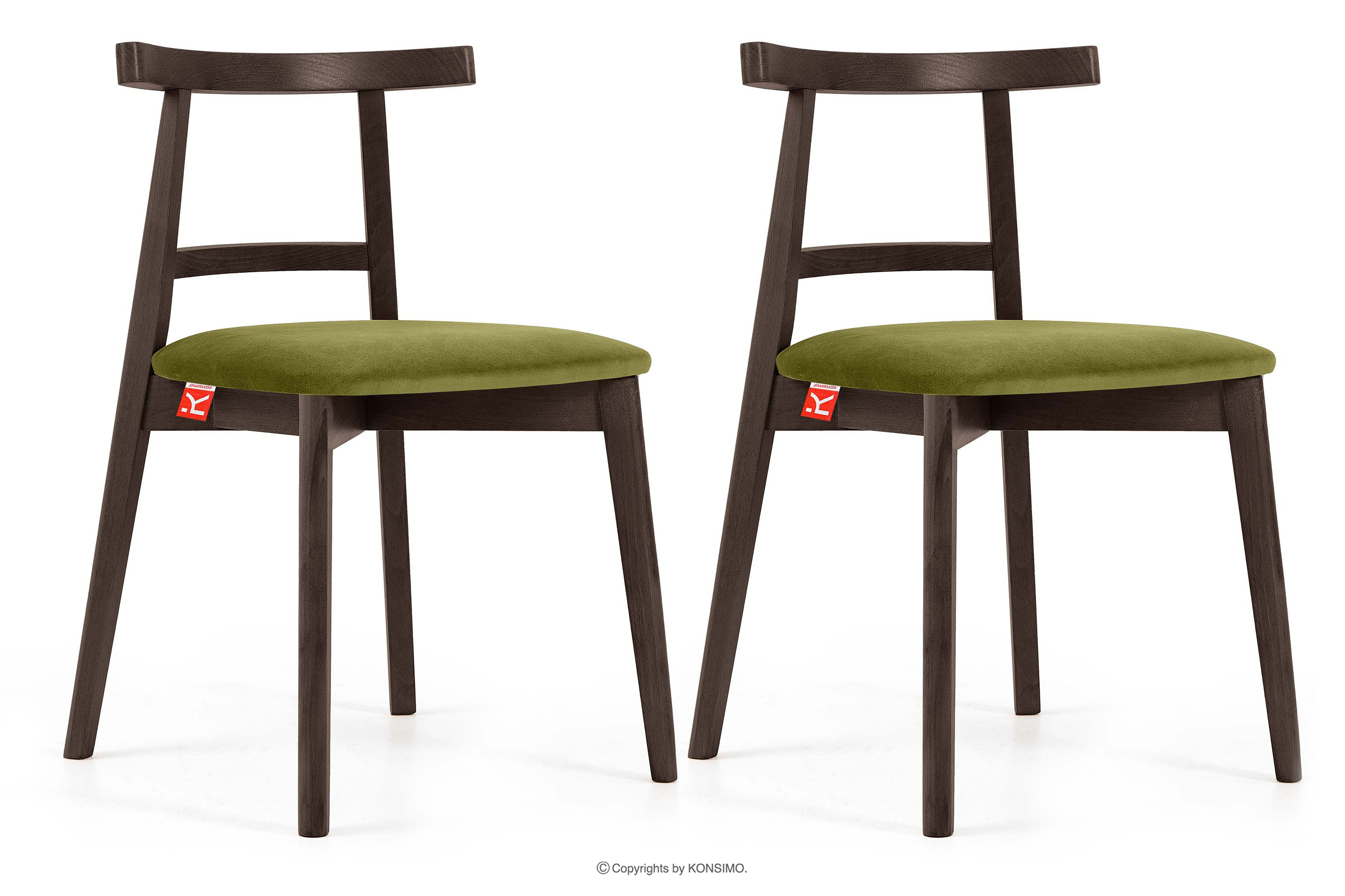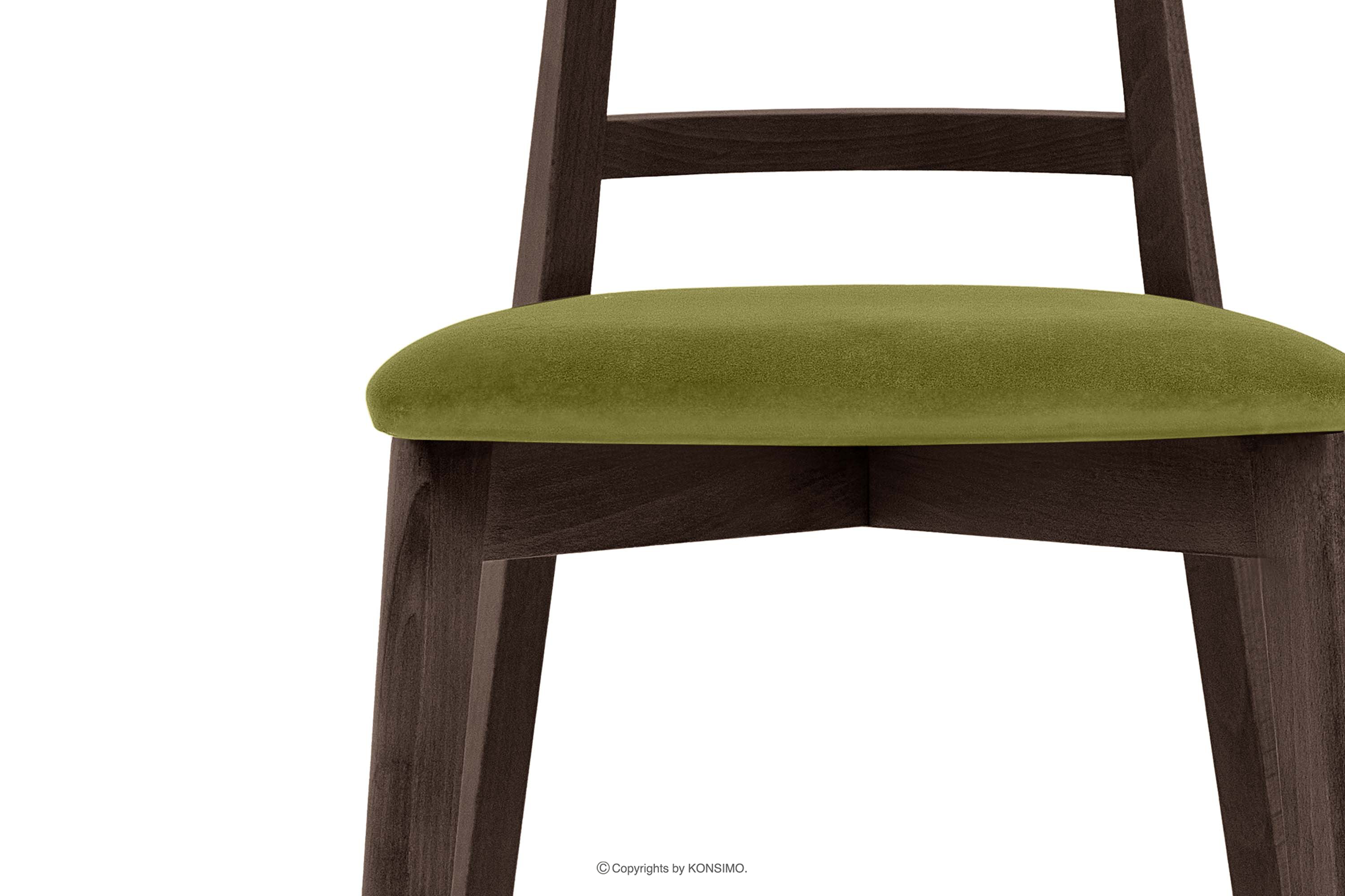 LILIO Vintage-Stuhl aus Velours-Stoff/dunkelem Nussbaumholz (2 Stk.) olivgrün