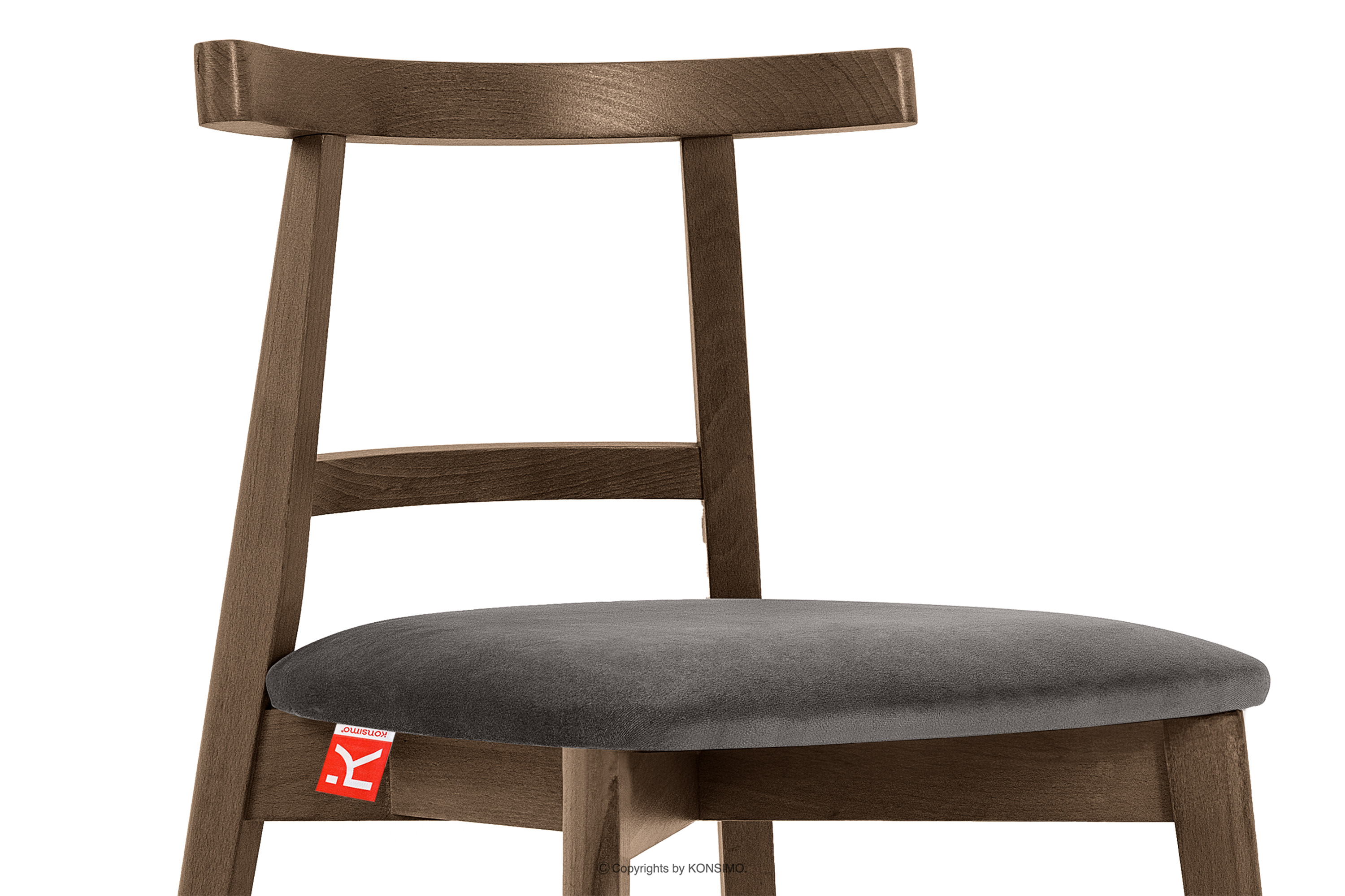 Die Sitzfläche des Stuhls ist mit weichem Velours bezogen, was ihm nicht nur Weichheit, sondern auch ein luxuriöses Aussehen verleiht. Außerdem ist er sehr pflegeleicht und sehr resistent gegen Pilling.