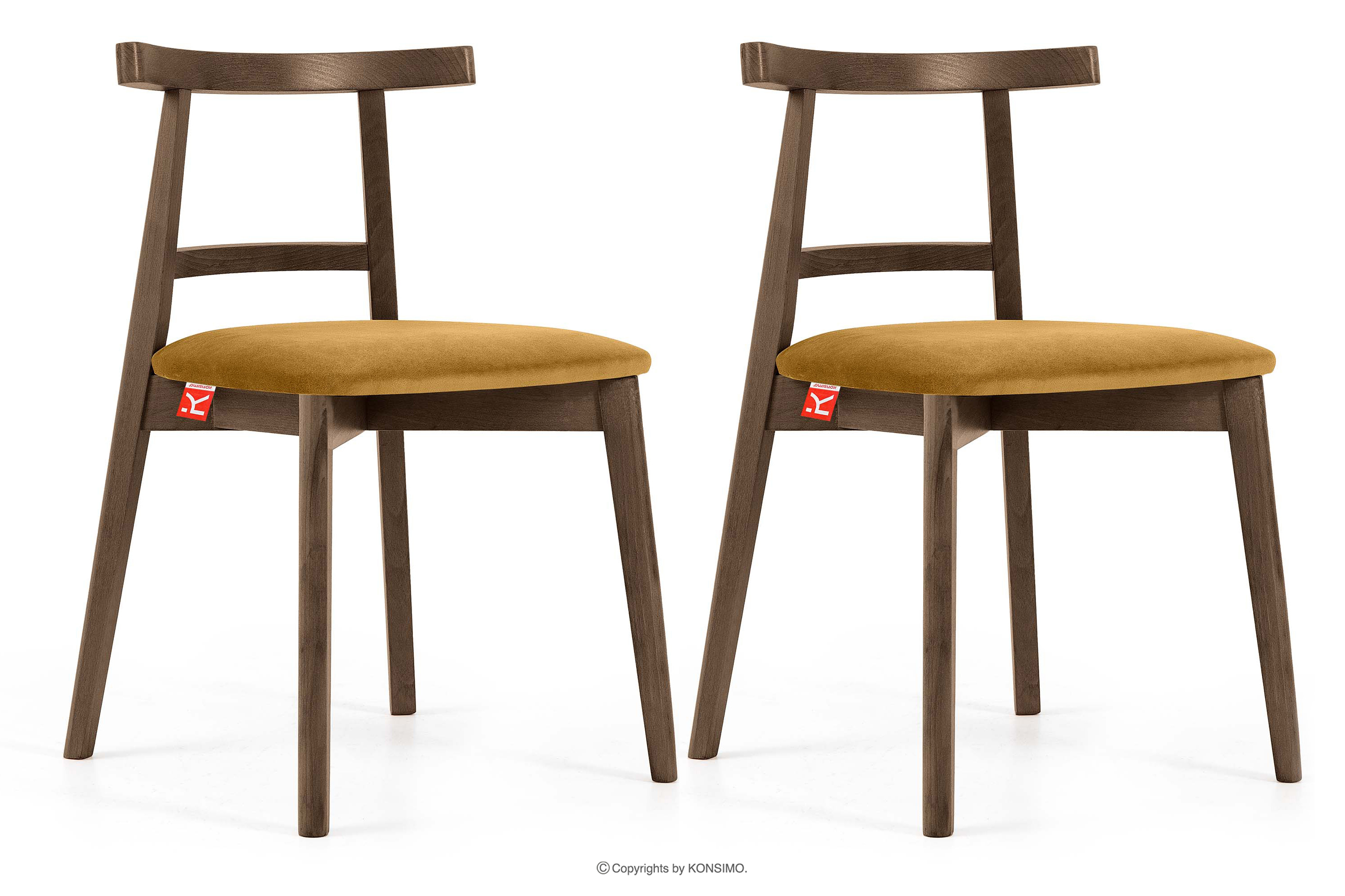 LILIO Vintage-Stuhl aus Velours-Stoff/Lefkas-Eichenholz (2 Stk.) gelb