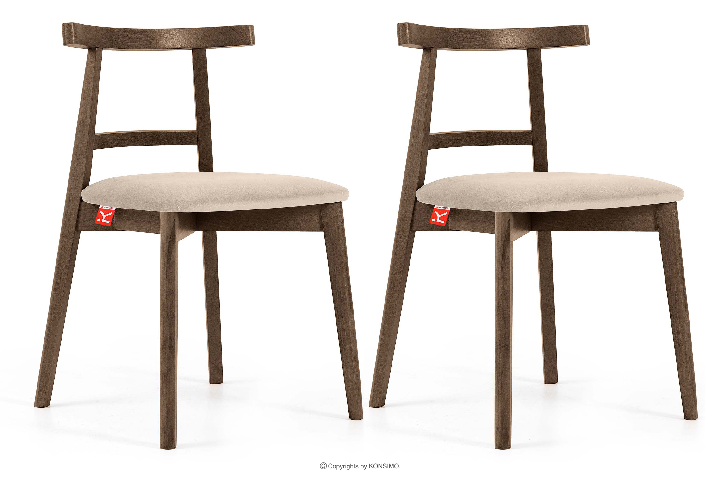 LILIO Vintage-Stuhl aus Velours-Stoff/Lefkas-Eichenholz (2 Stk.) cremefarben