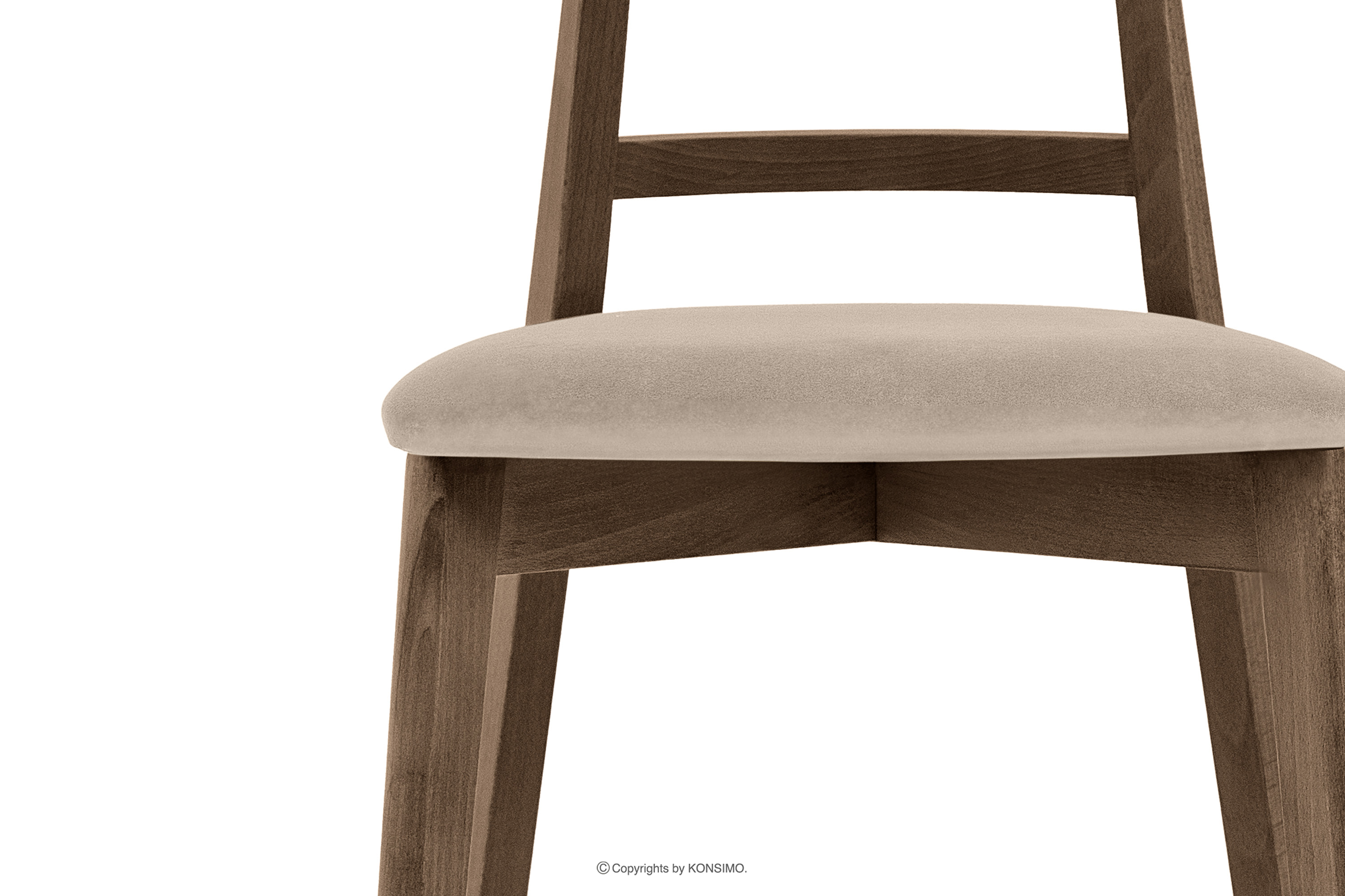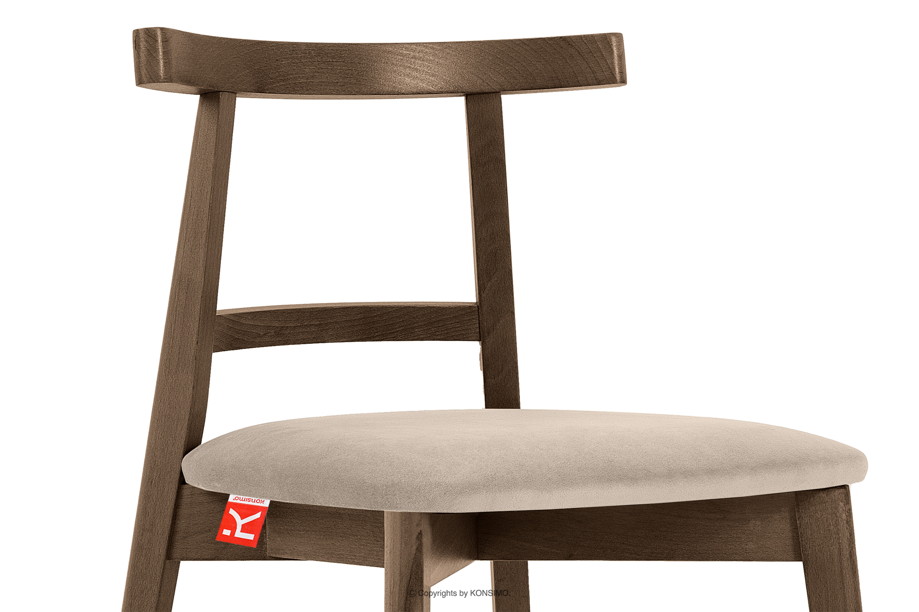 Die Sitzfläche des Stuhls ist mit weichem Velours bezogen, was ihm nicht nur Weichheit, sondern auch ein luxuriöses Aussehen verleiht. Außerdem ist er sehr pflegeleicht und sehr resistent gegen Pilling.
