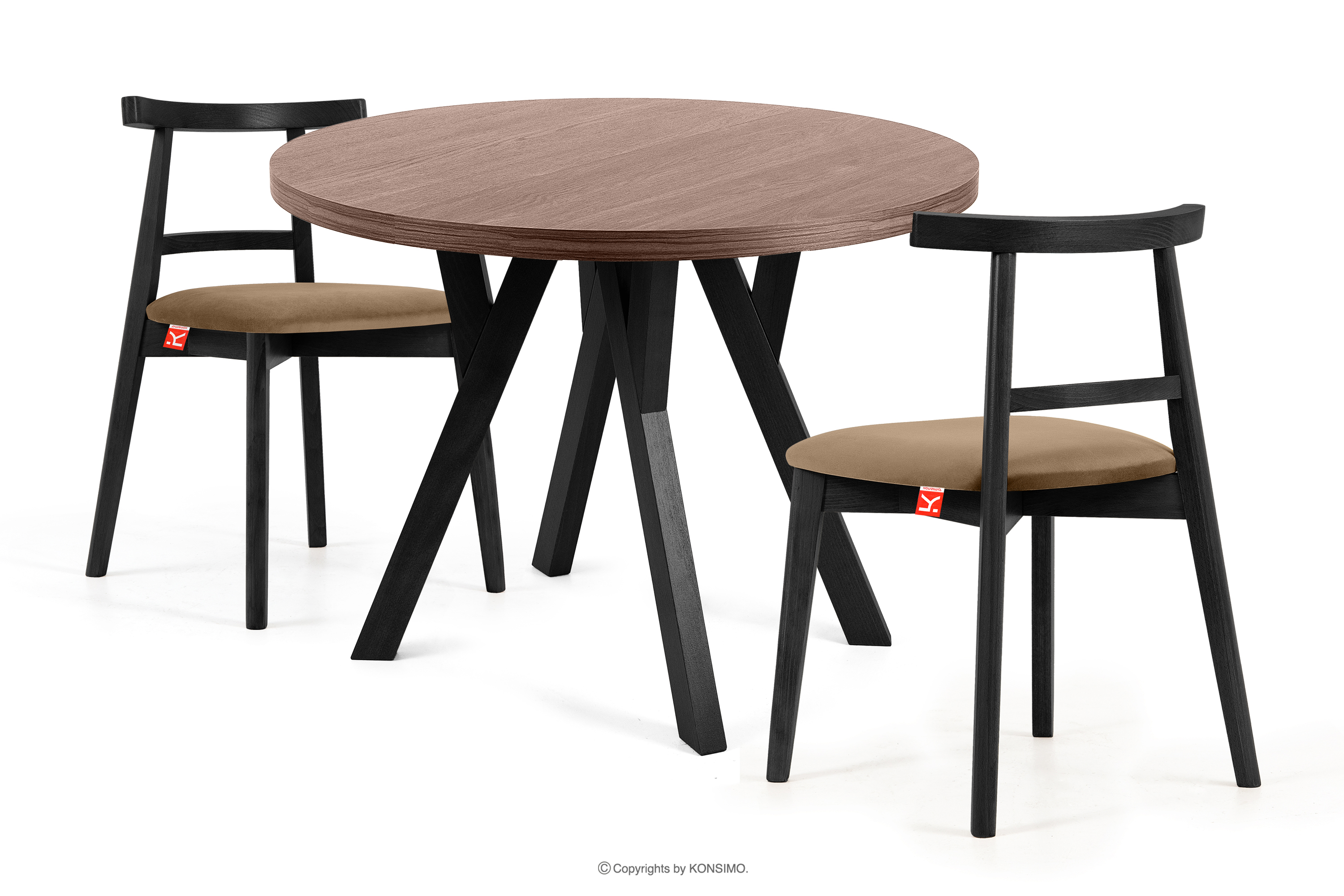 INDAGA Runder Esstisch aus Nussbaum/Buchenholz, mittig ausziehbar (Ø 100-180 cm)