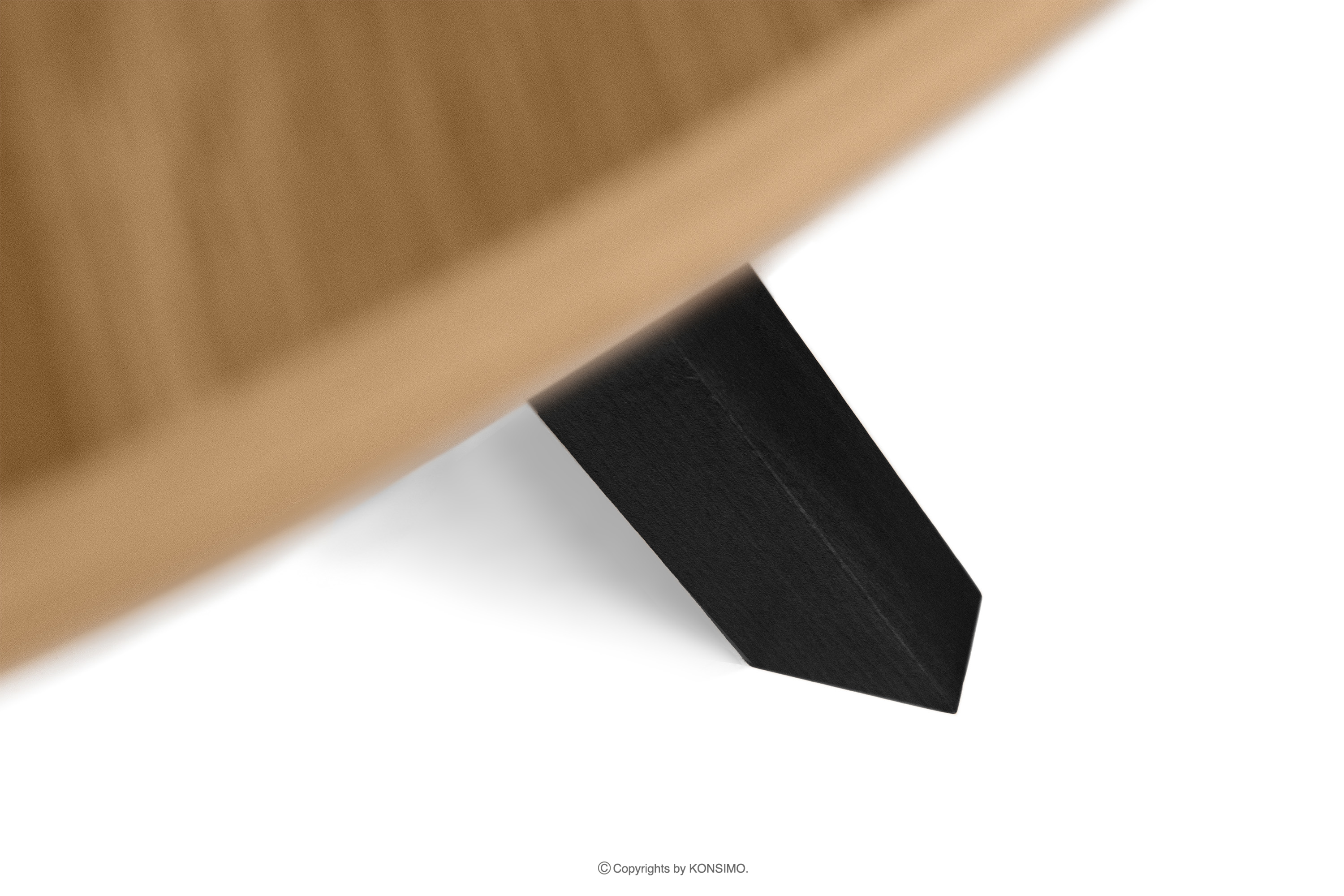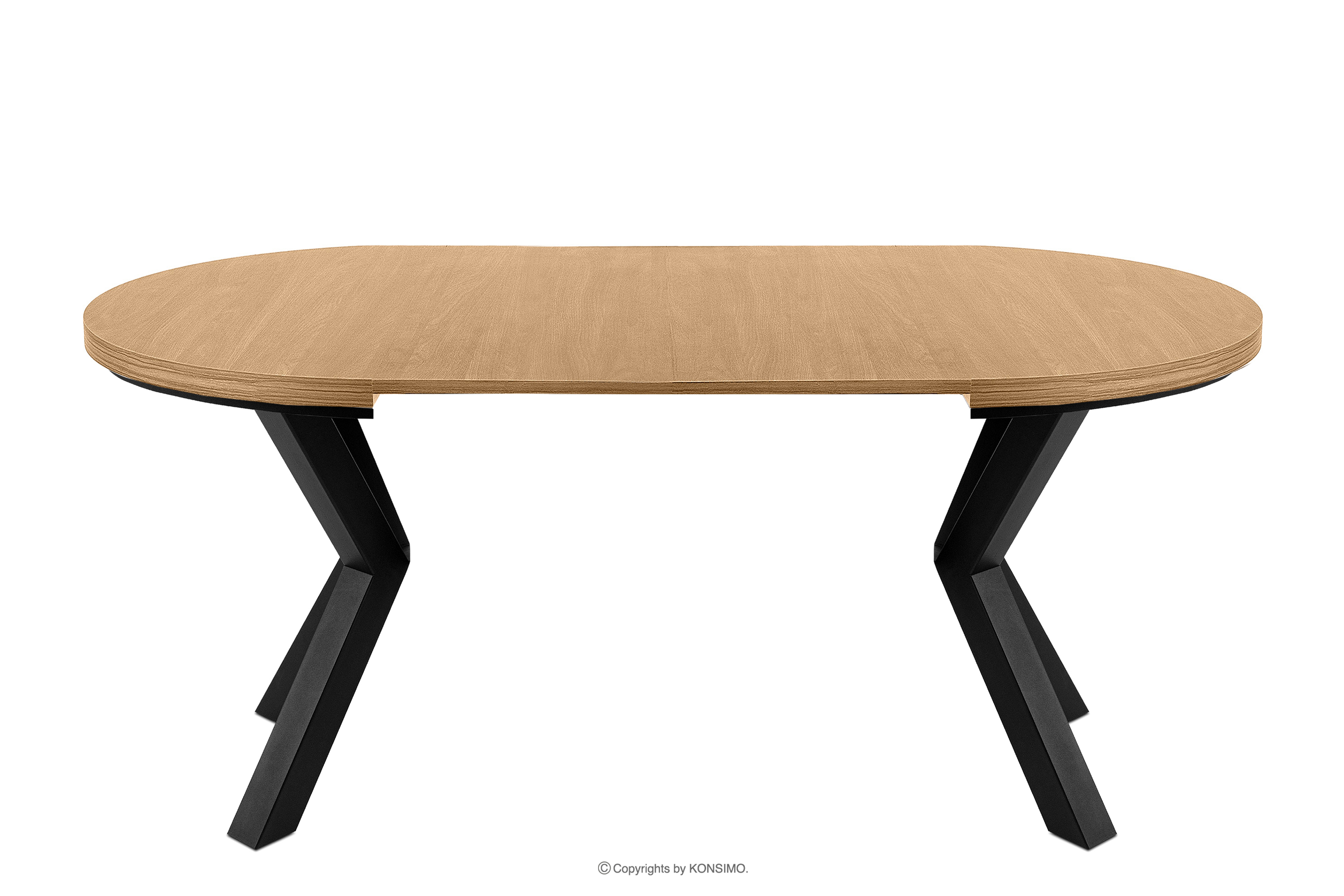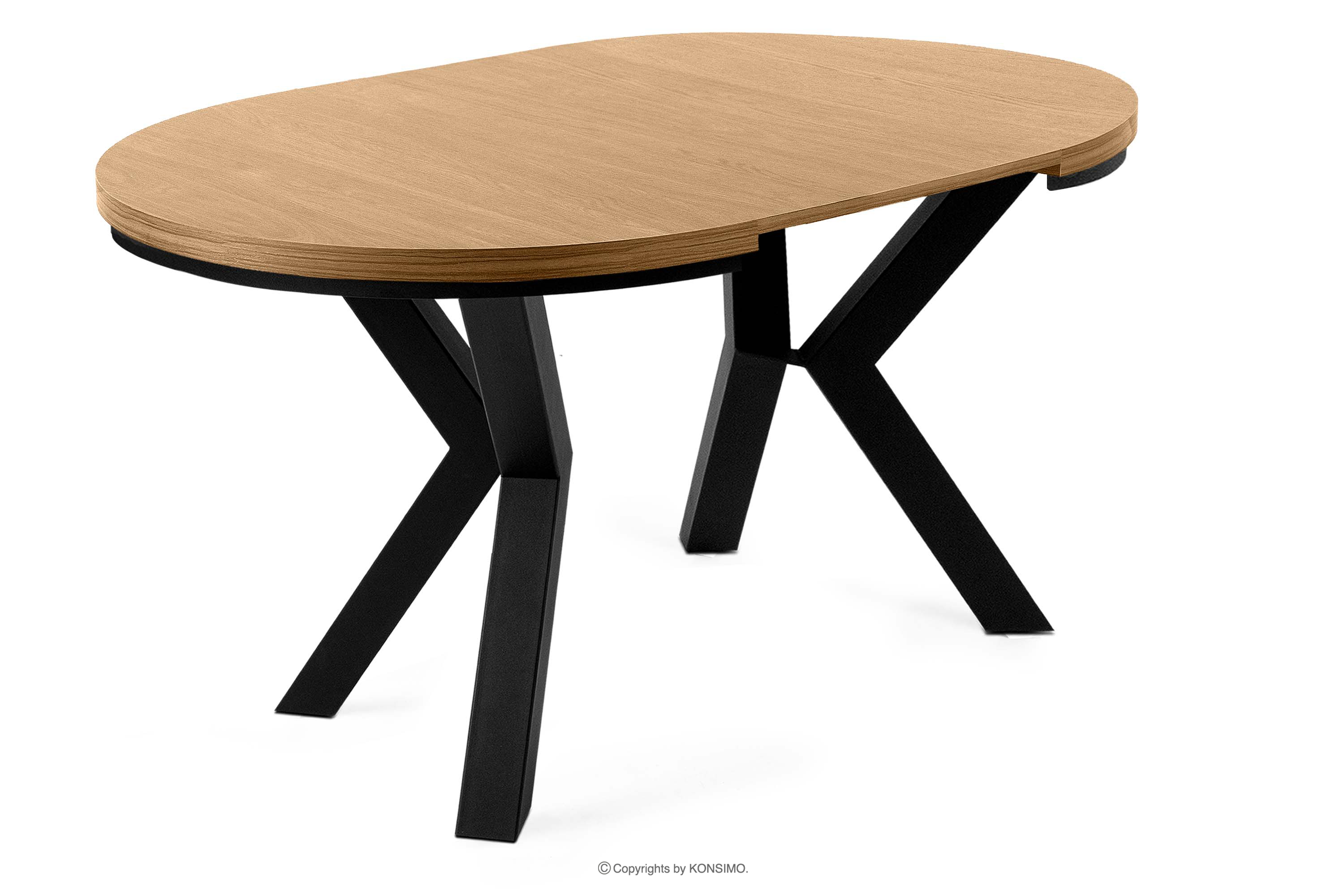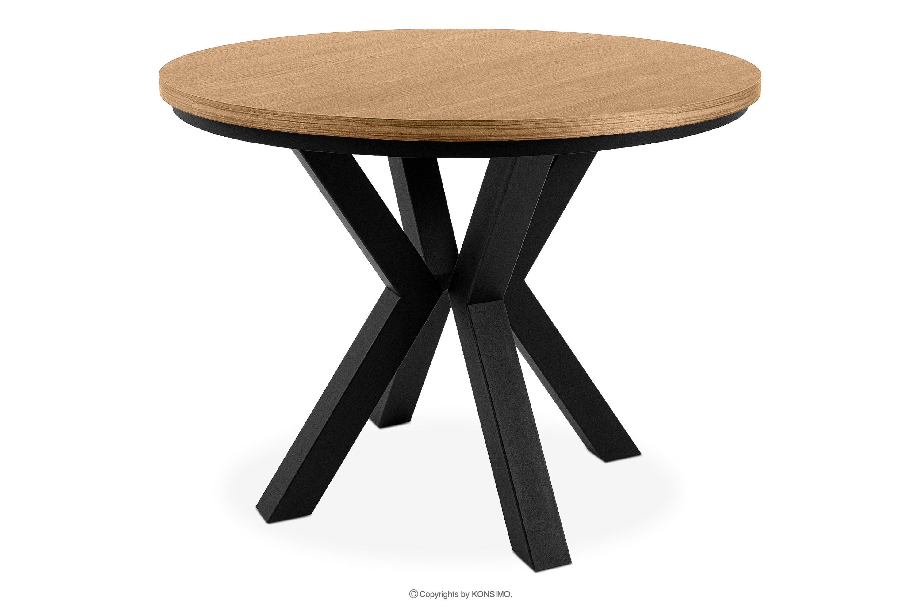 Der runde Ausziehtisch 100-180 aus goldener Eiche besticht durch sein minimalistisches Design, gewährleistet aber auch Funktionalität auf höchstem Niveau. Die Tischbeine aus massivem, schwarz pulverbeschichtetem Metall verleihen dem Tisch nicht nur ein industrielles Flair, sondern sorgen auch für Haltbarkeit und Stabilität. Die Tischplatte aus einer hochwertigen Schichtstoffplatte unterstreicht die Ästhetik und garantiert zudem eine einfache Reinigung.