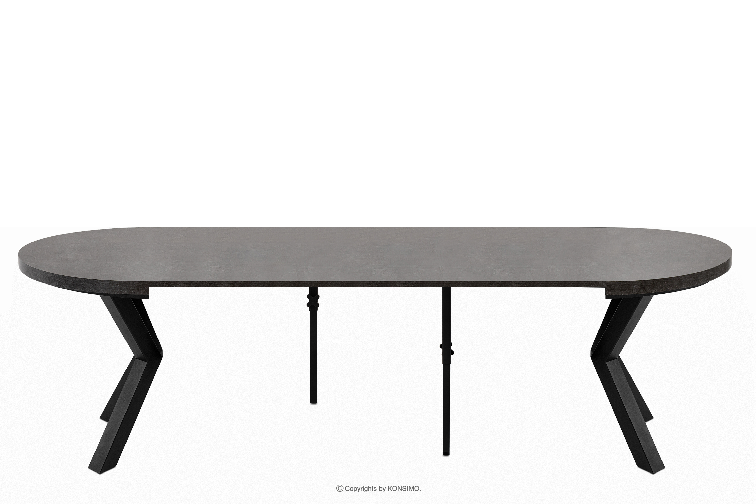 Der runde Ausziehtisch 100-260 aus Beton besticht durch sein minimalistisches Design, gewährleistet aber auch Funktionalität auf höchstem Niveau. Die Tischbeine aus massivem, schwarz pulverbeschichtetem Metall verleihen dem Tisch nicht nur eine industrielle Anmutung, sondern sorgen auch für Langlebigkeit und Stabilität. Die Tischplatte aus einer hochwertigen Schichtstoffplatte unterstreicht die Ästhetik und garantiert zudem eine einfache Reinigung.