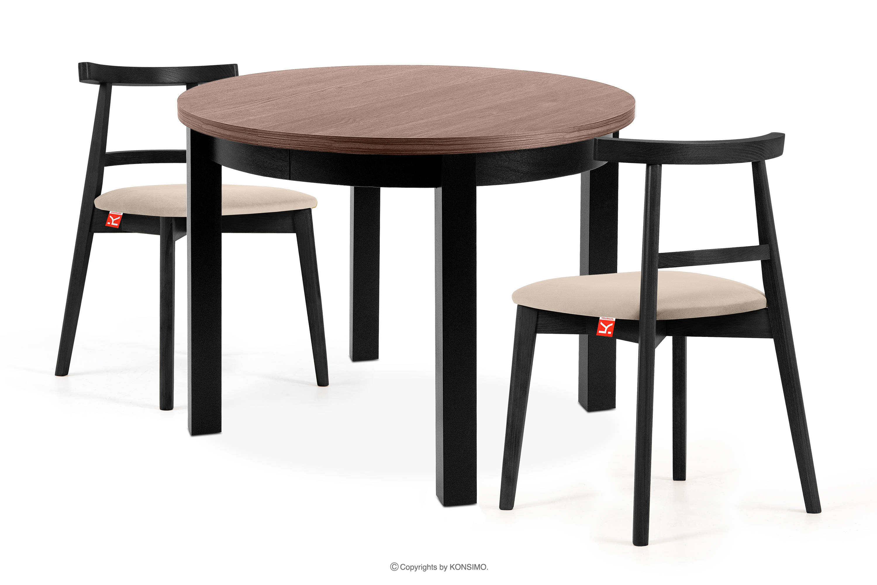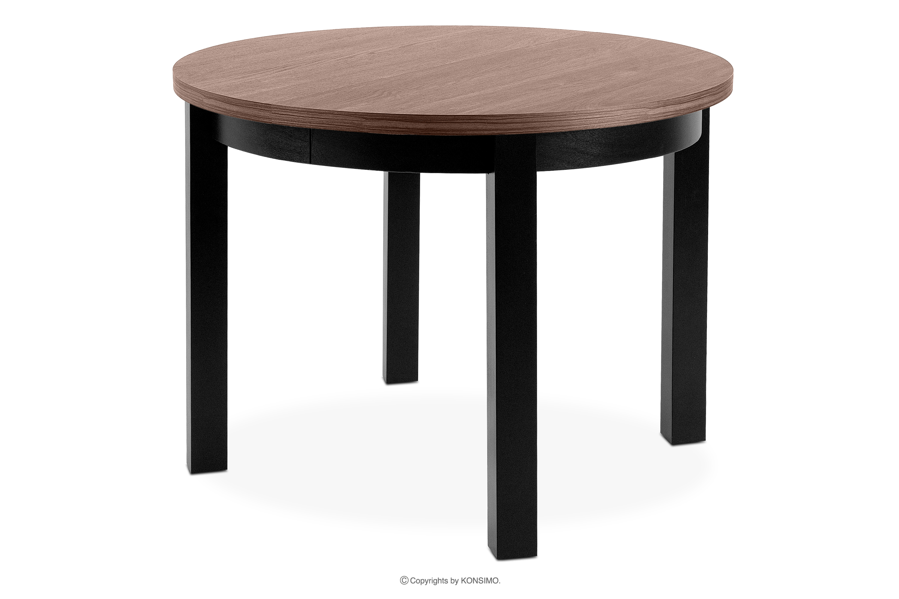 BALTE Runder Esstisch aus Nussbaum/Buchenholz, mittig ausziehbar (Ø 100-140 cm)