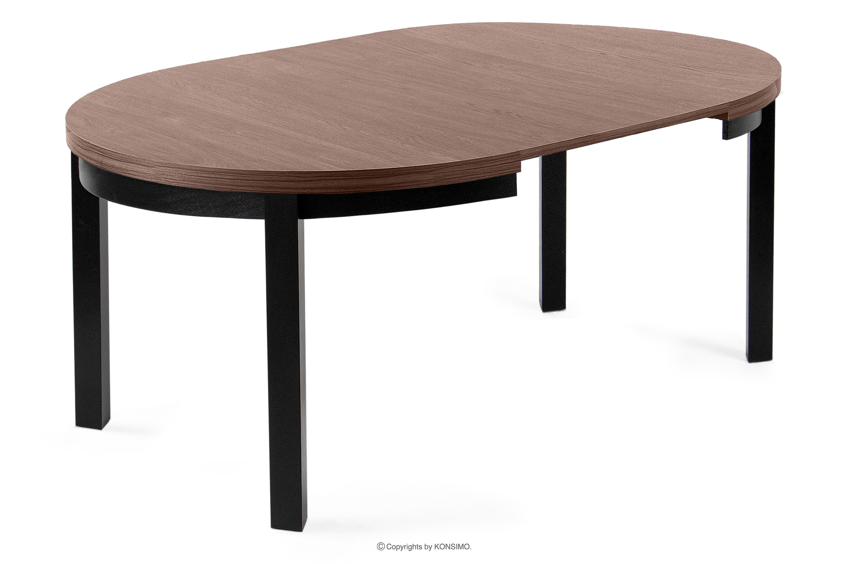 für das Produkt Runder Esstisch aus Nussbaum/Buchenholz, mittig ausziehbar (Ø 100-140 cm)