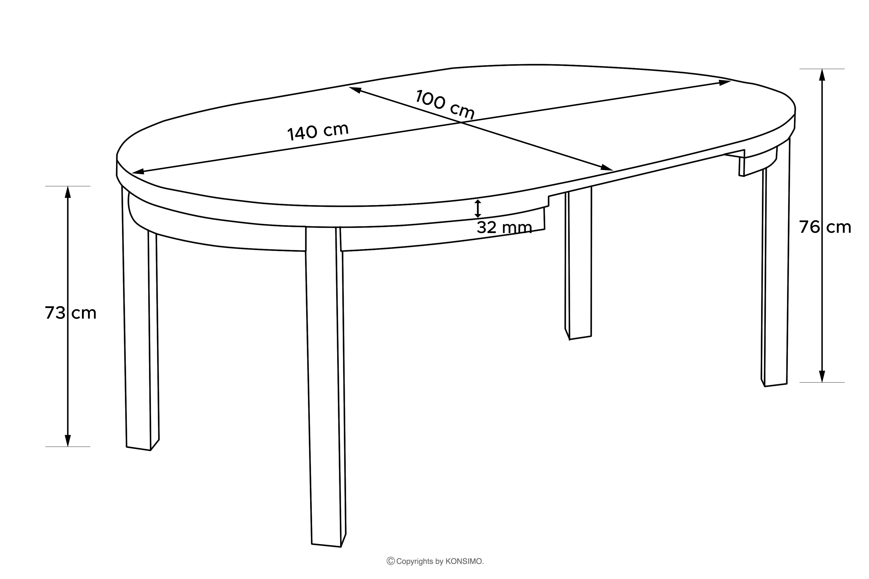 - Dicke der Tischplatte (mm): 32