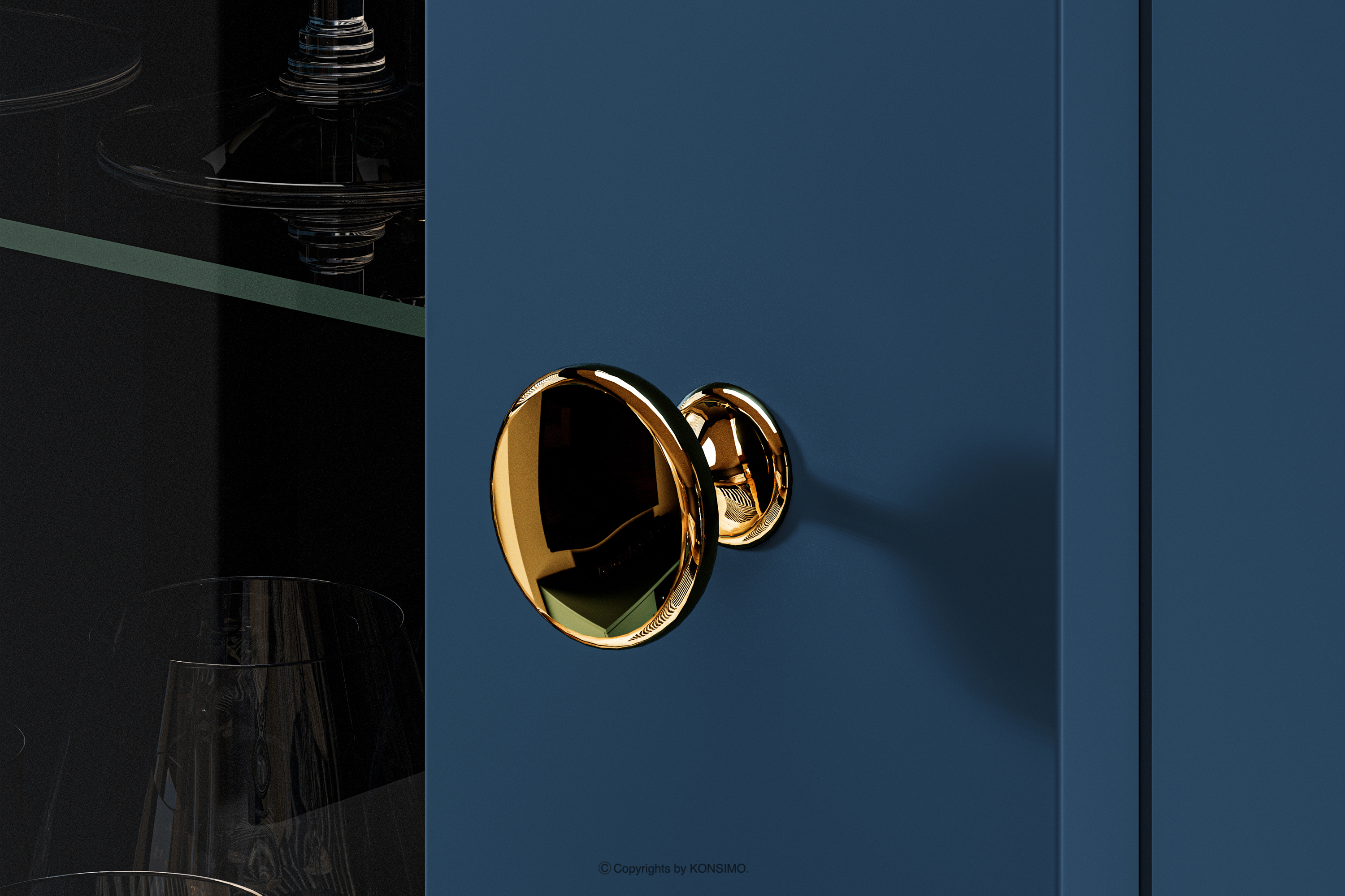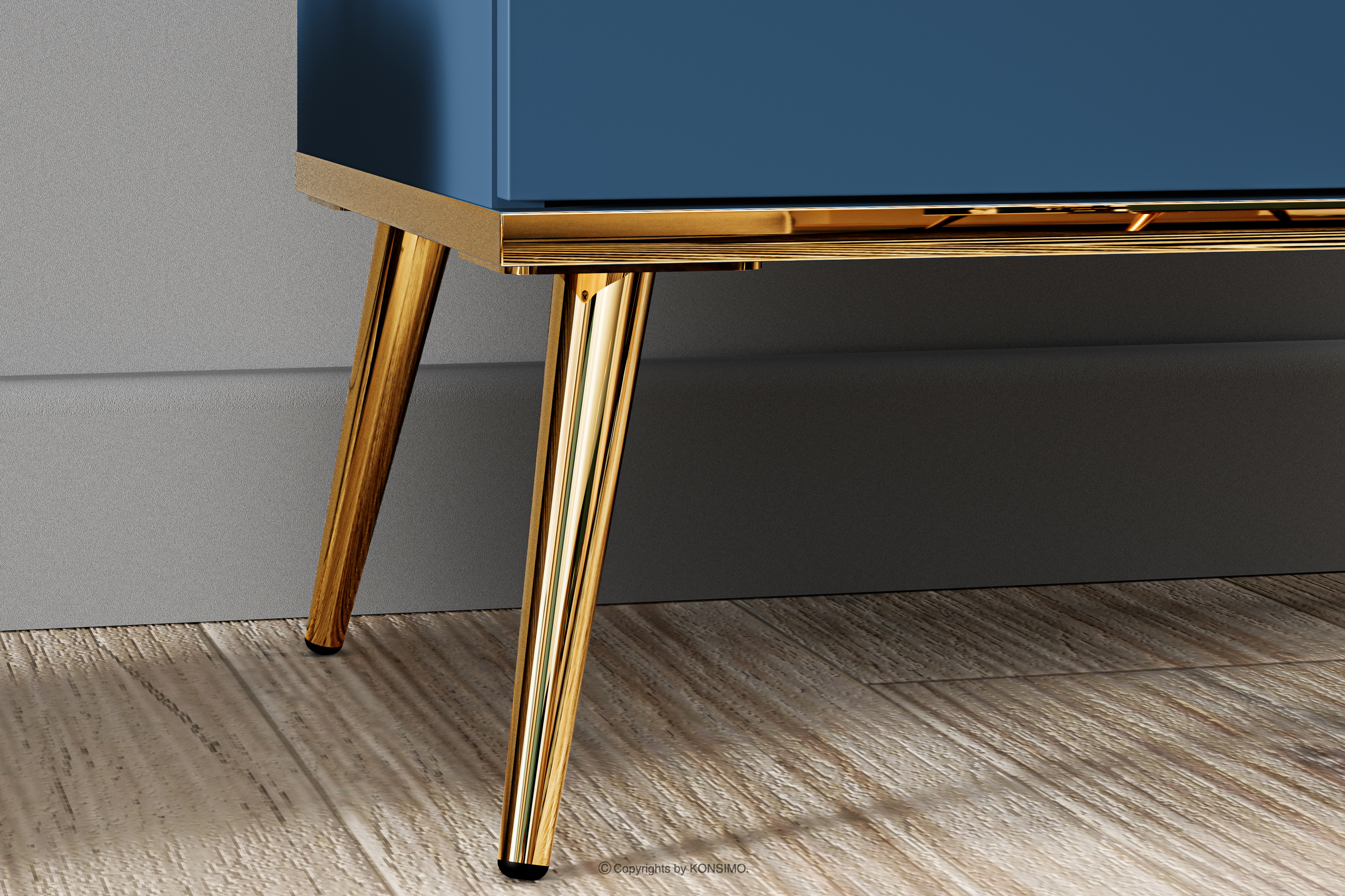 Marineblauer Schrank auf goldenen Beinen