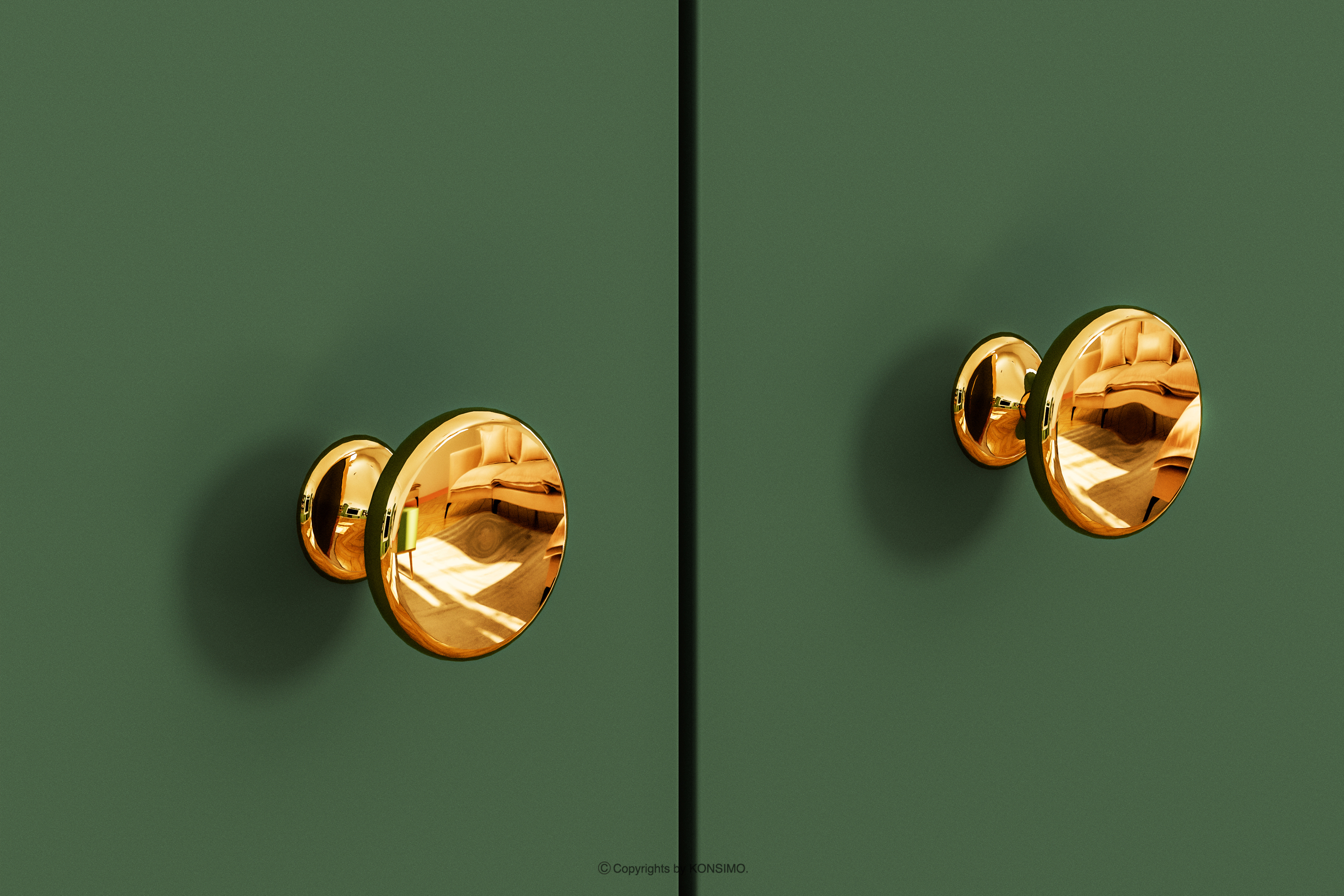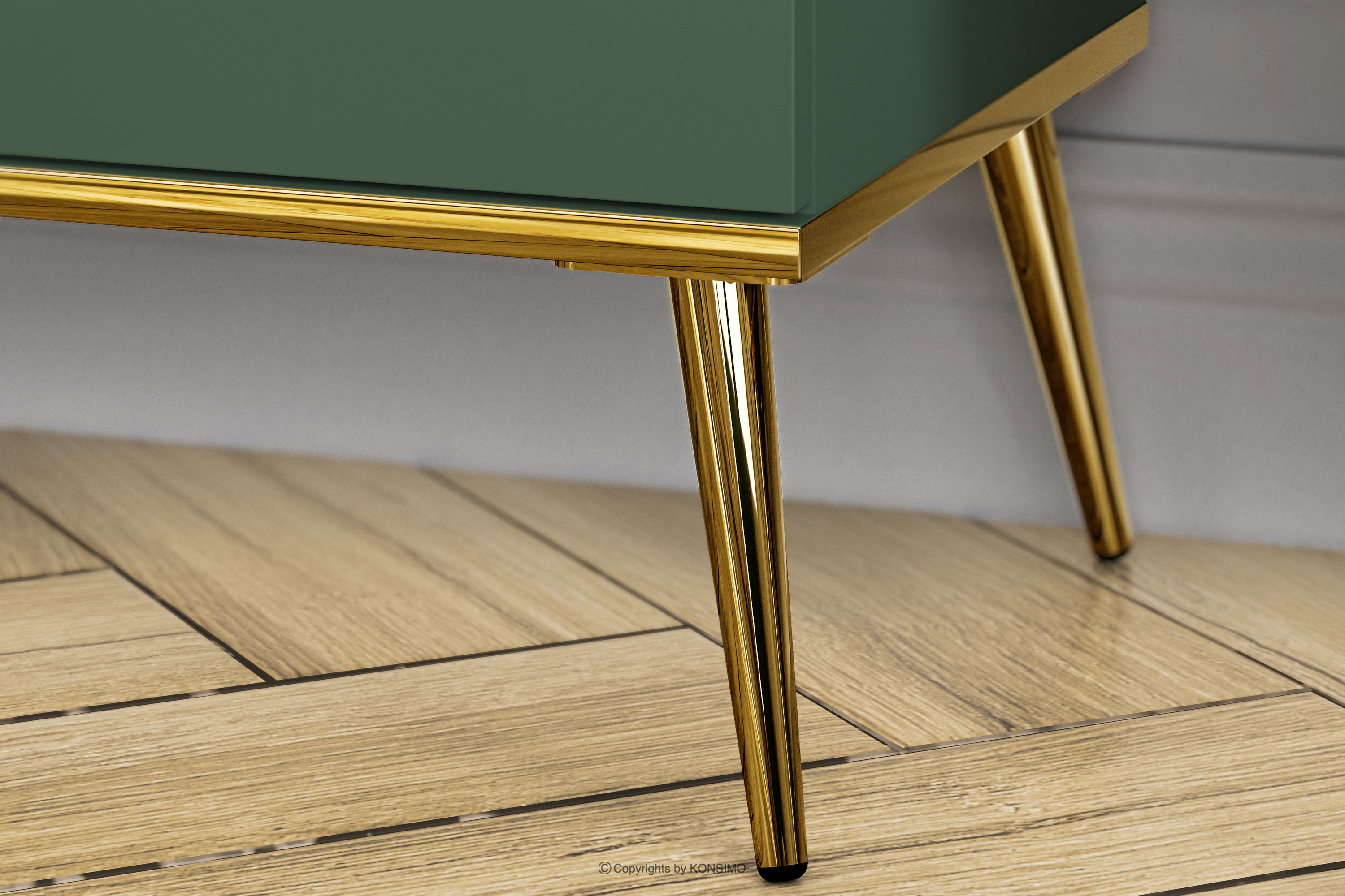 Grüner Schrank auf goldenen Beinen